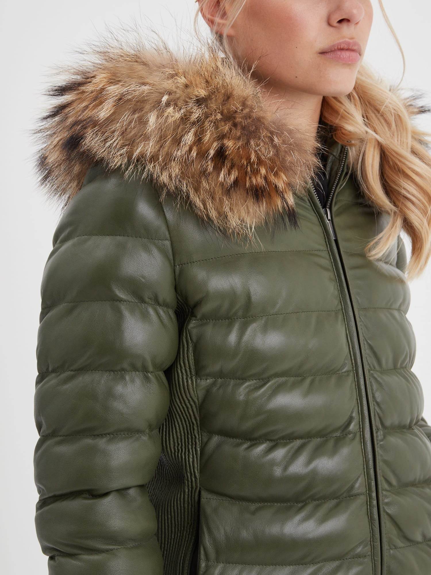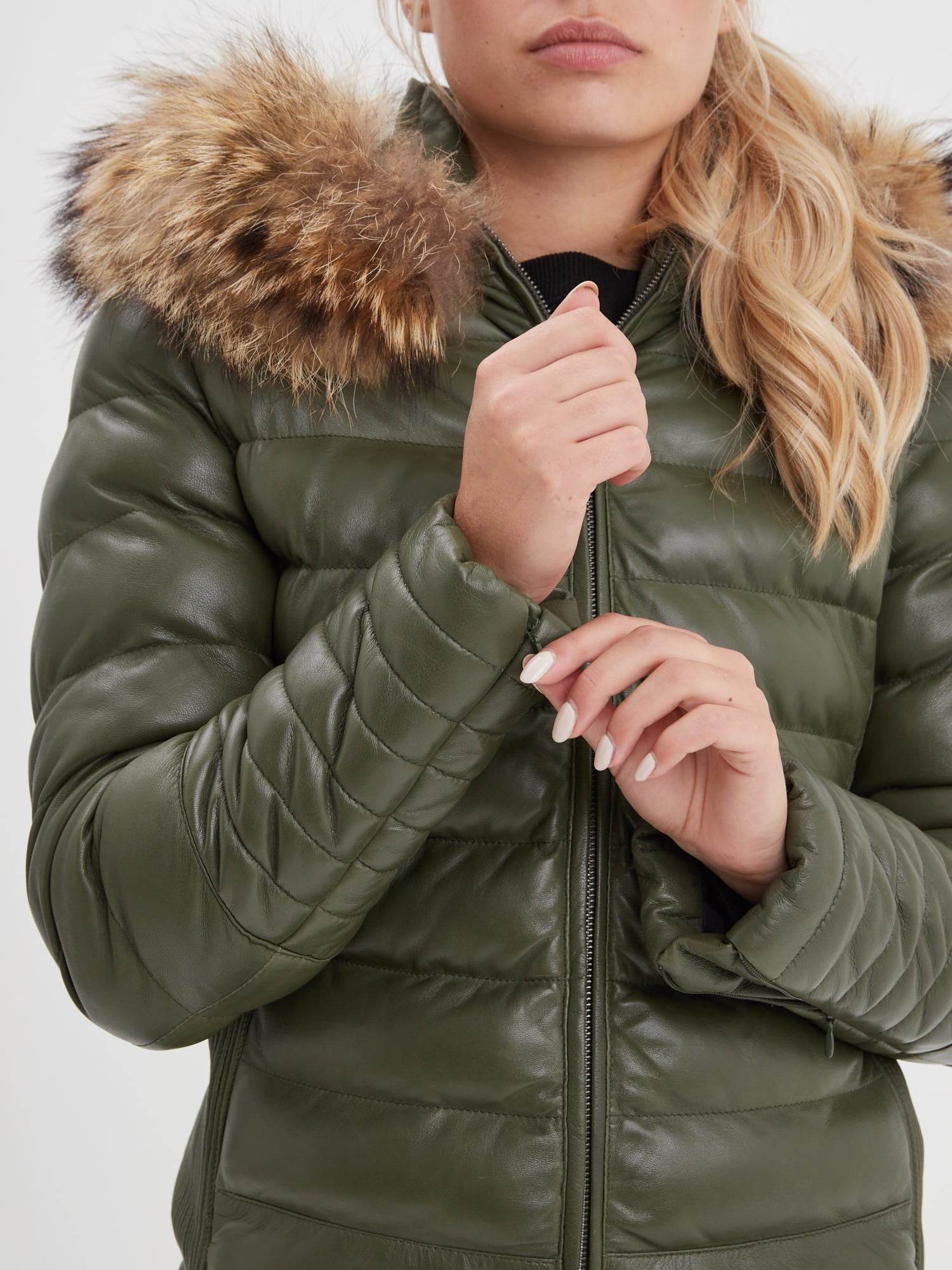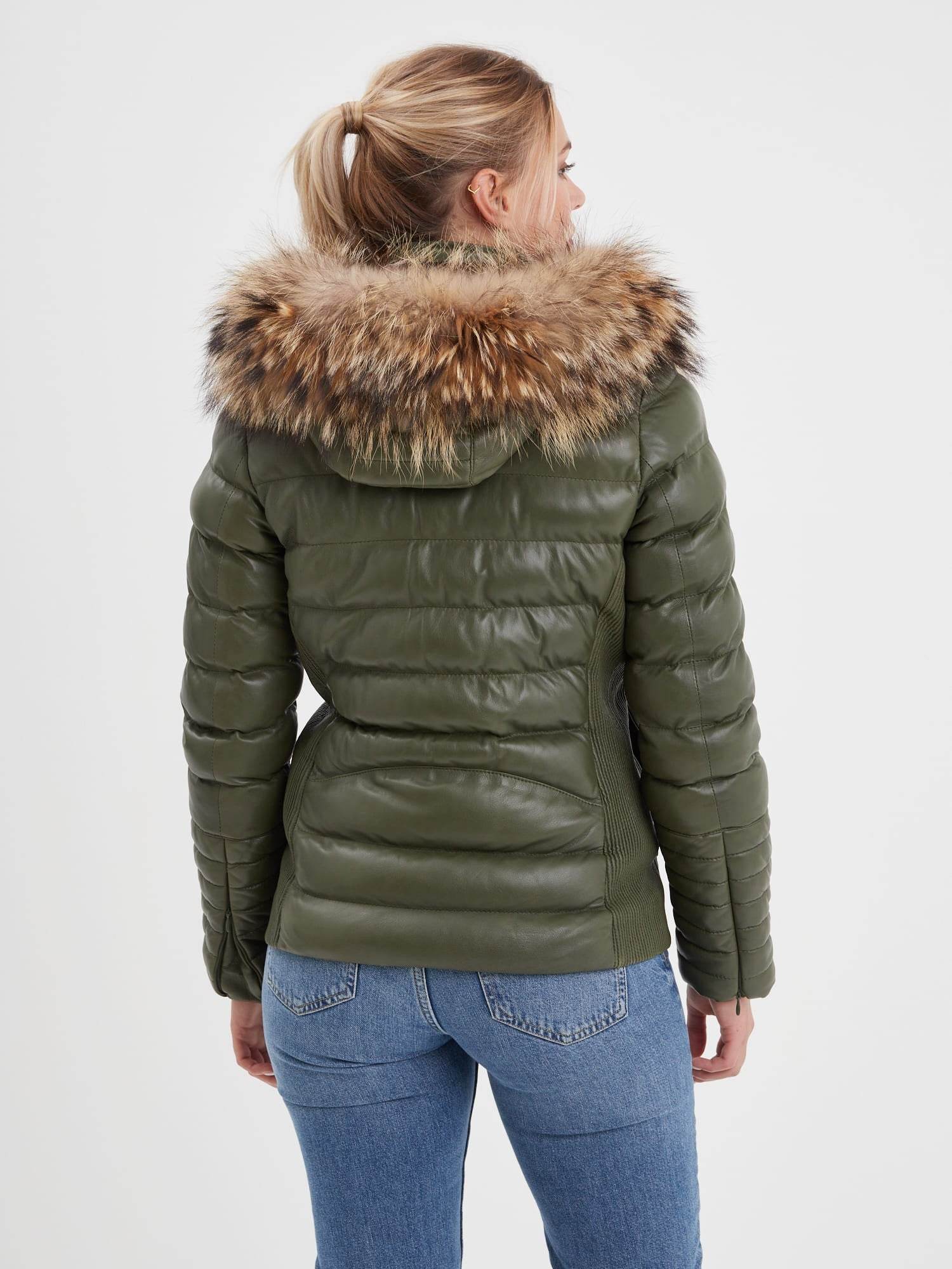 Classique de la saison d’hiver, la doudoune en cuir avec sa capuche amovible en fourrure est idéale pour vous protéger du froid.