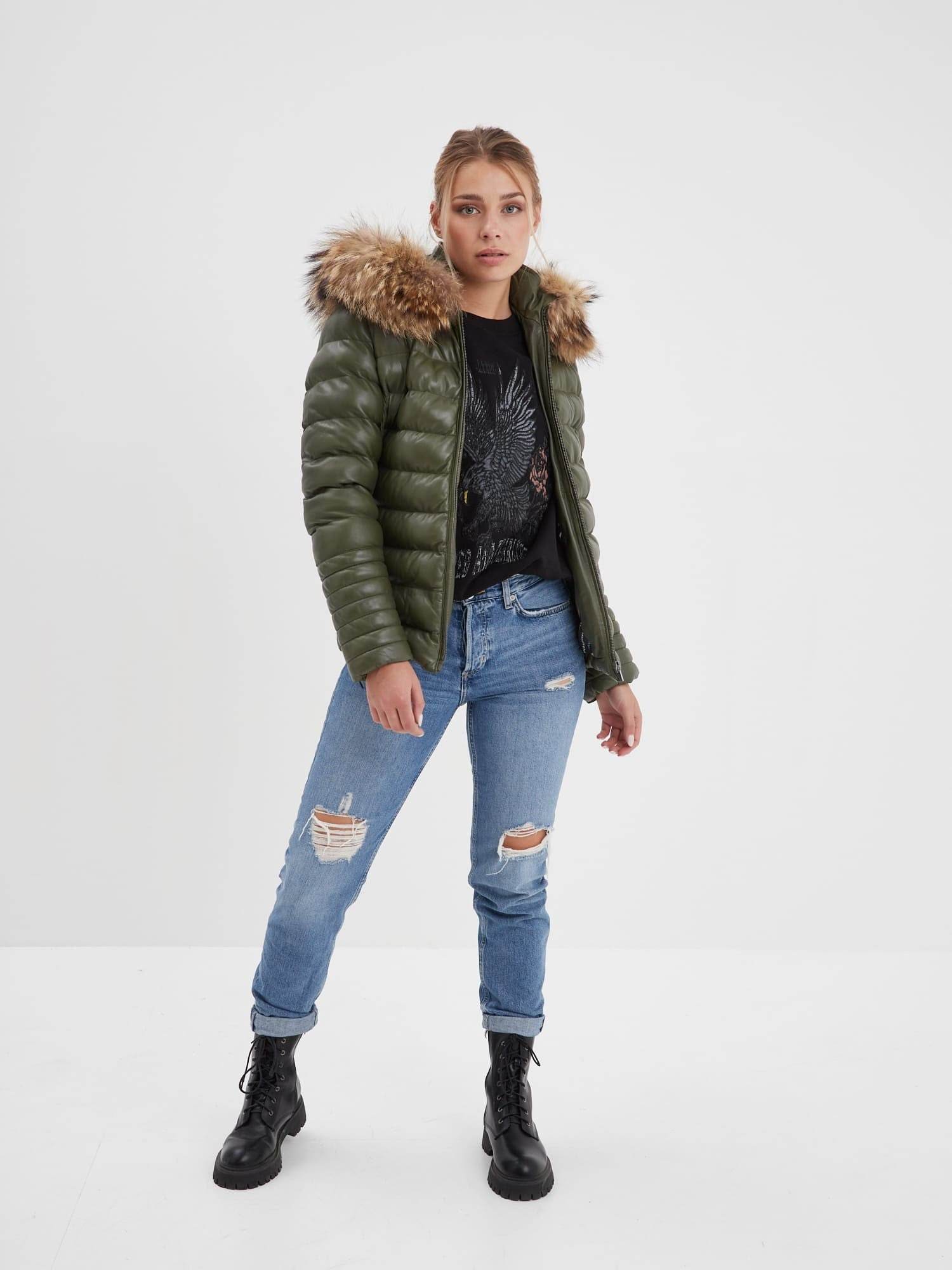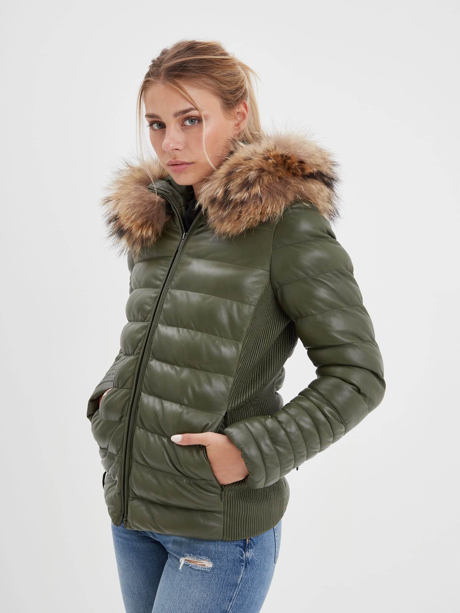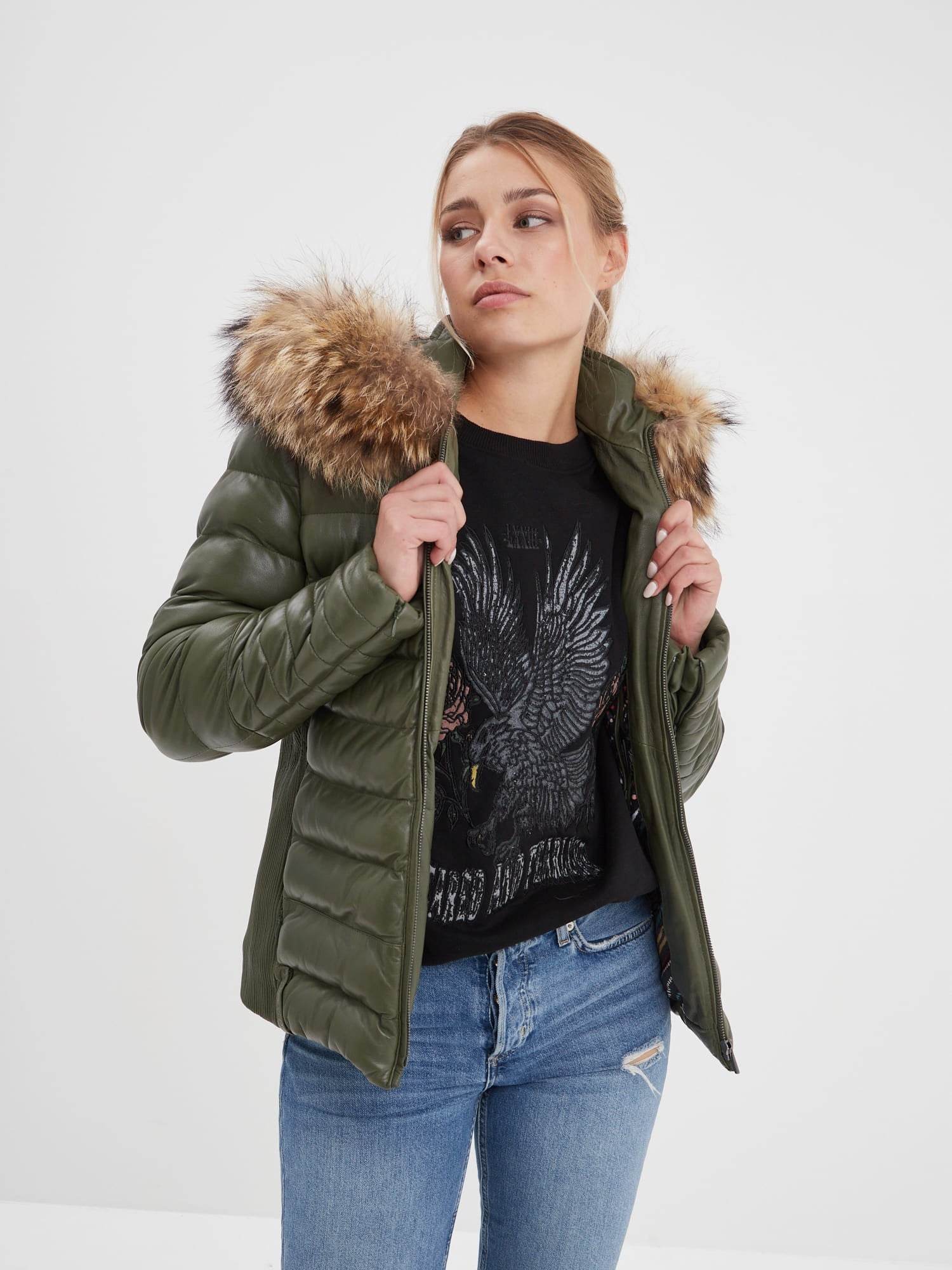 Classique de la saison d’hiver, la doudoune en cuir avec sa capuche amovible en fourrure est idéale pour vous protéger du froid.