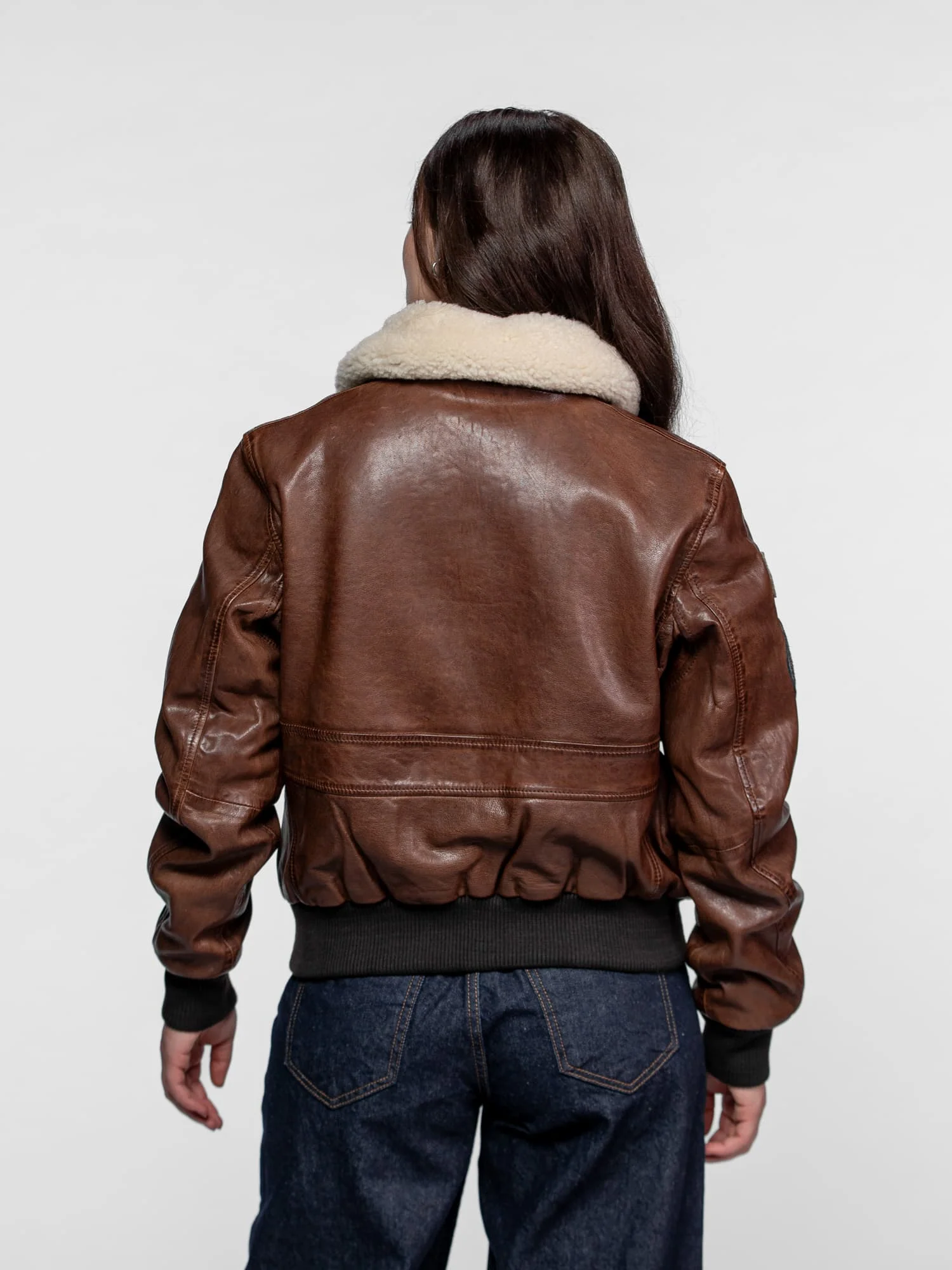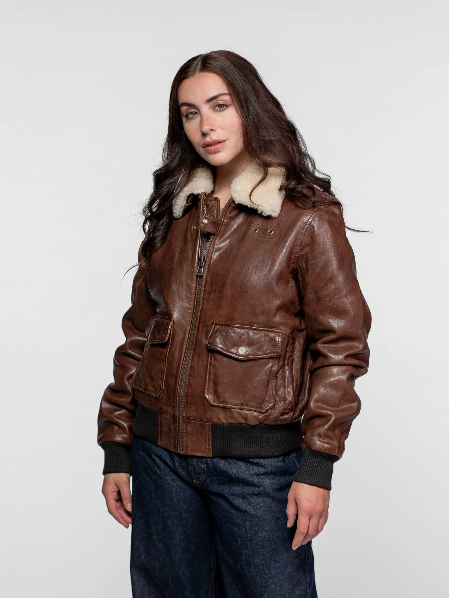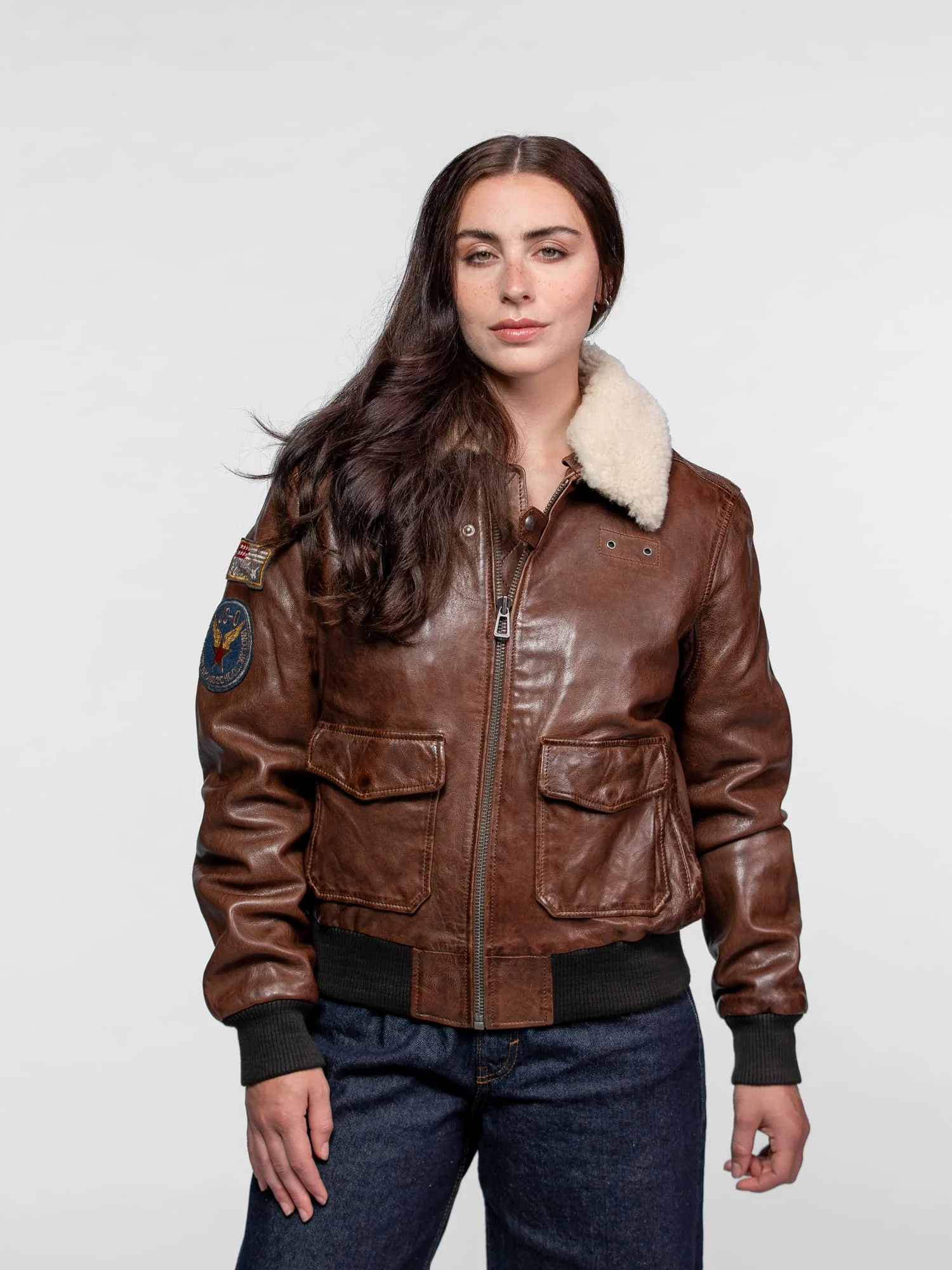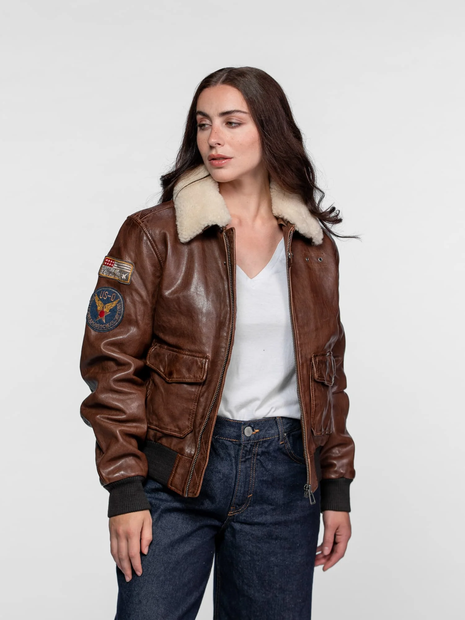 Optez pour un look aviateur avec cette flight jacket en cuir d’agneau. Ce blouson au style original et authentique possède de nombreux patchs brodés avec un col en mouton réel amovible. Muni d’une doublure chaude, il est parfait pour un hiver tendance.