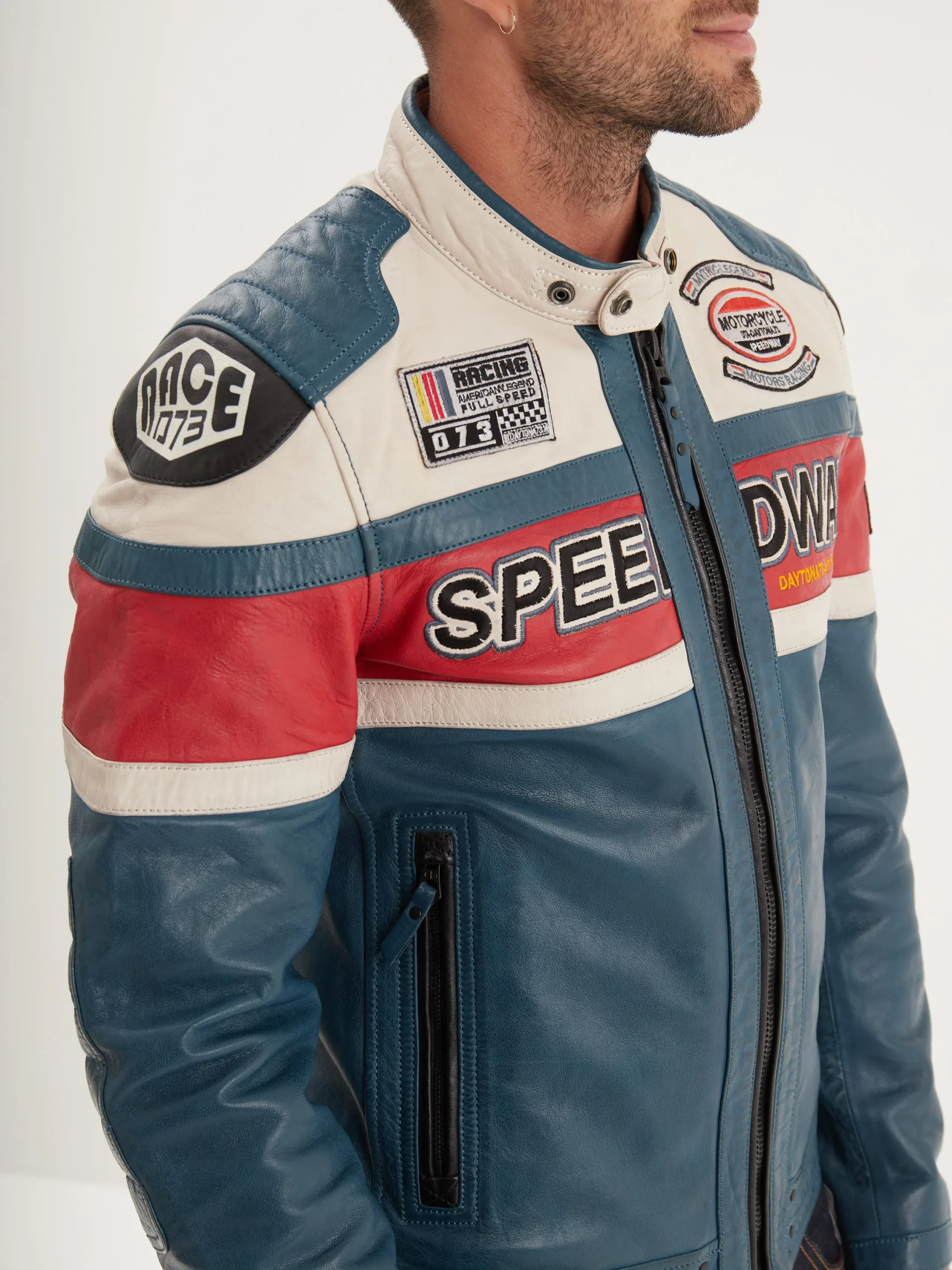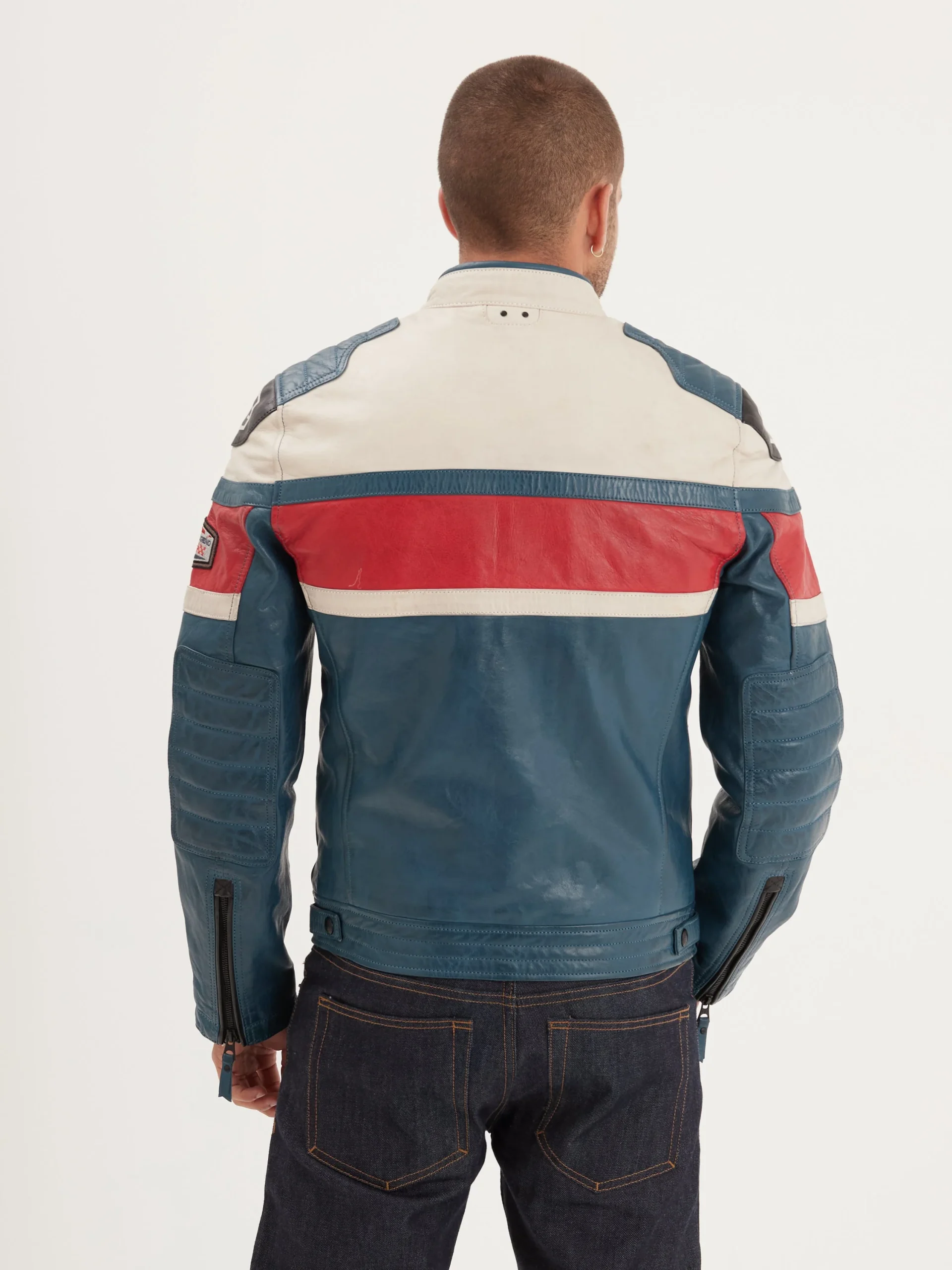 Le blouson Albon est un modèle avec col motard, inspiré de la moto vintage. Il est fabriqué en cuir de mouton tanné de manière végétale, avec des patchs brodés. C’est un modèle plein de caractère qui reflète l’ADN gentleman rider de notre marque.