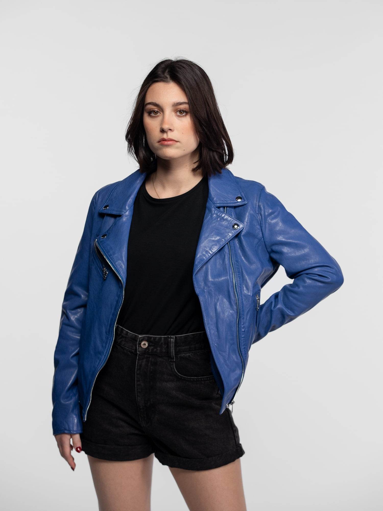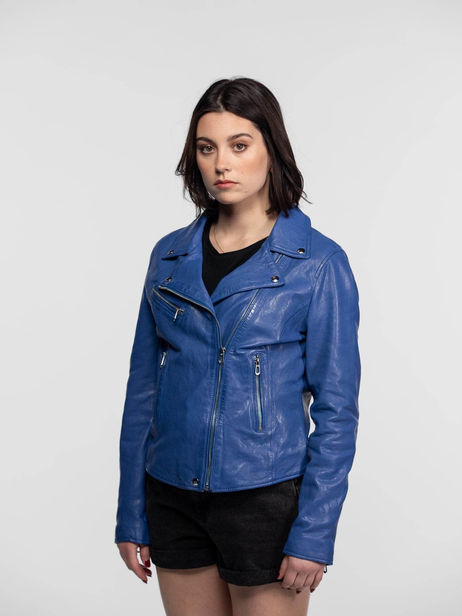 Anthea – Blouson biker cuir femme