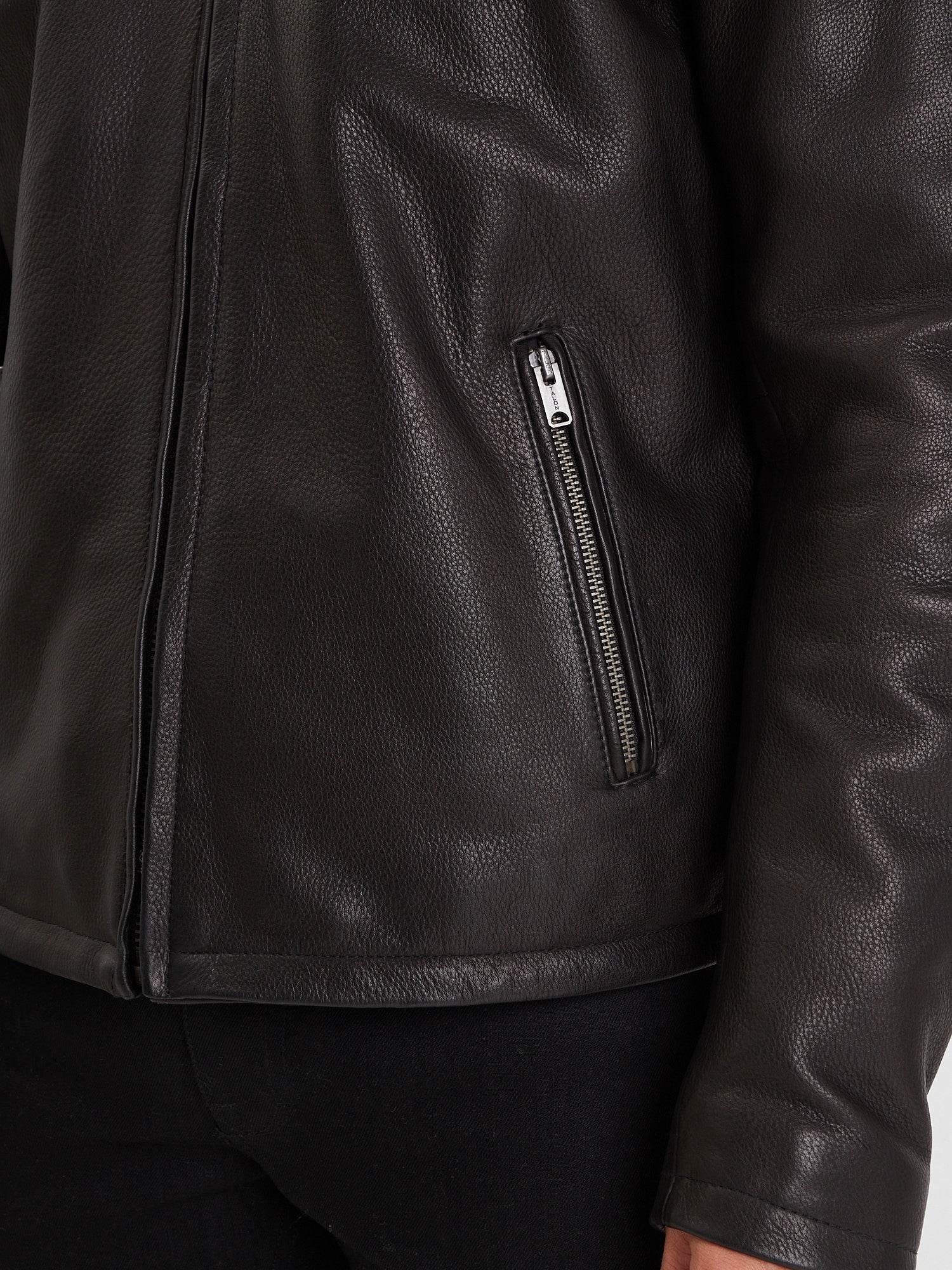 Le blouson en cuir Asphalt en cuir de vachette épais est un classique de la marque Daytona 73. Son grand col amovible en mouton réel noir vous tiendra au chaud tout l’hiver avec classe.