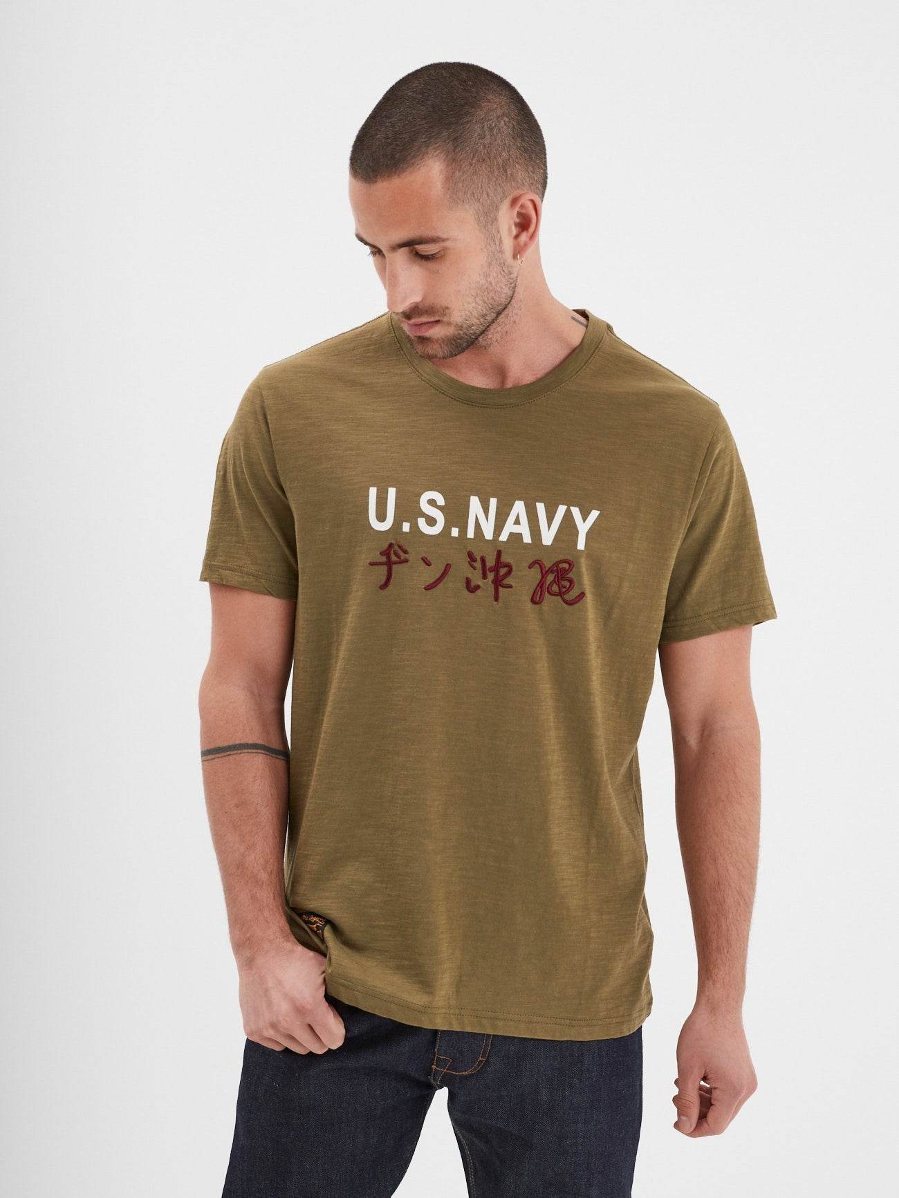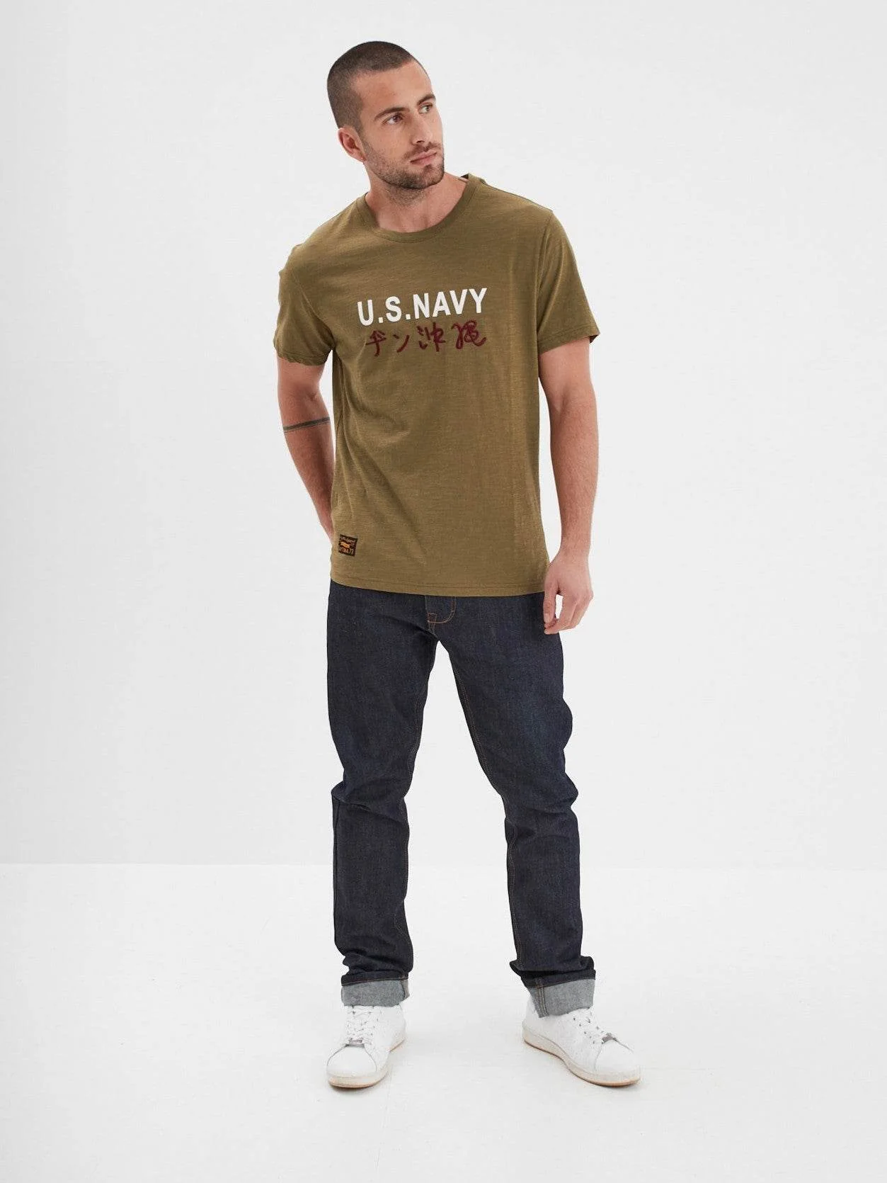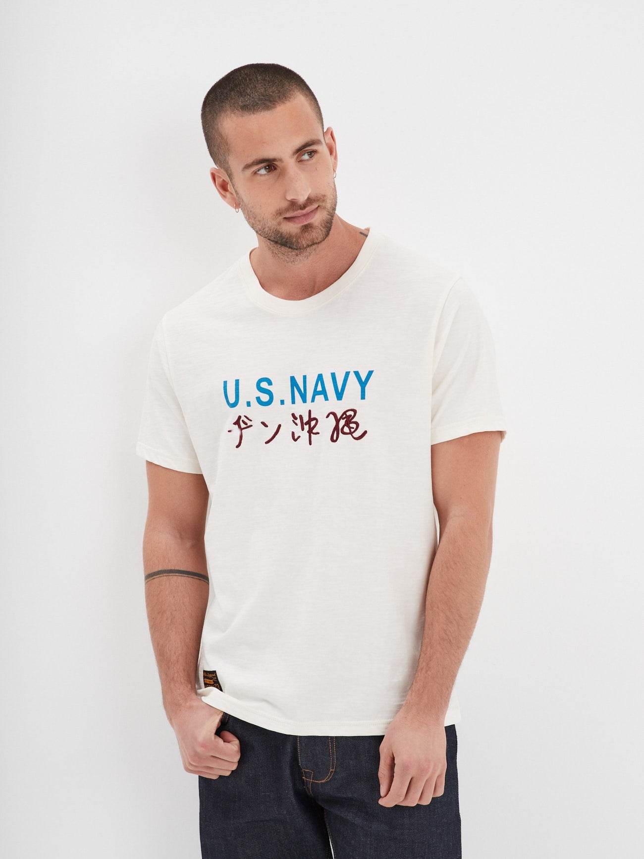 Ce t-shirt s’inspire de la célèbre attaque de Pearl Harbor durant la seconde guerre mondiale. Il est fabriqué dans un coton flammé en Jersey et reprend le visuel en print et broderie.
