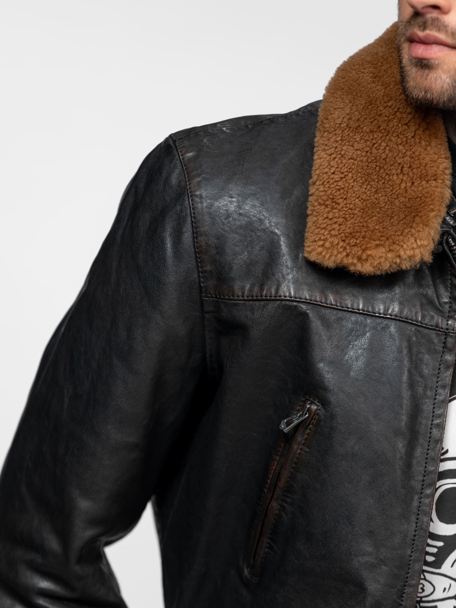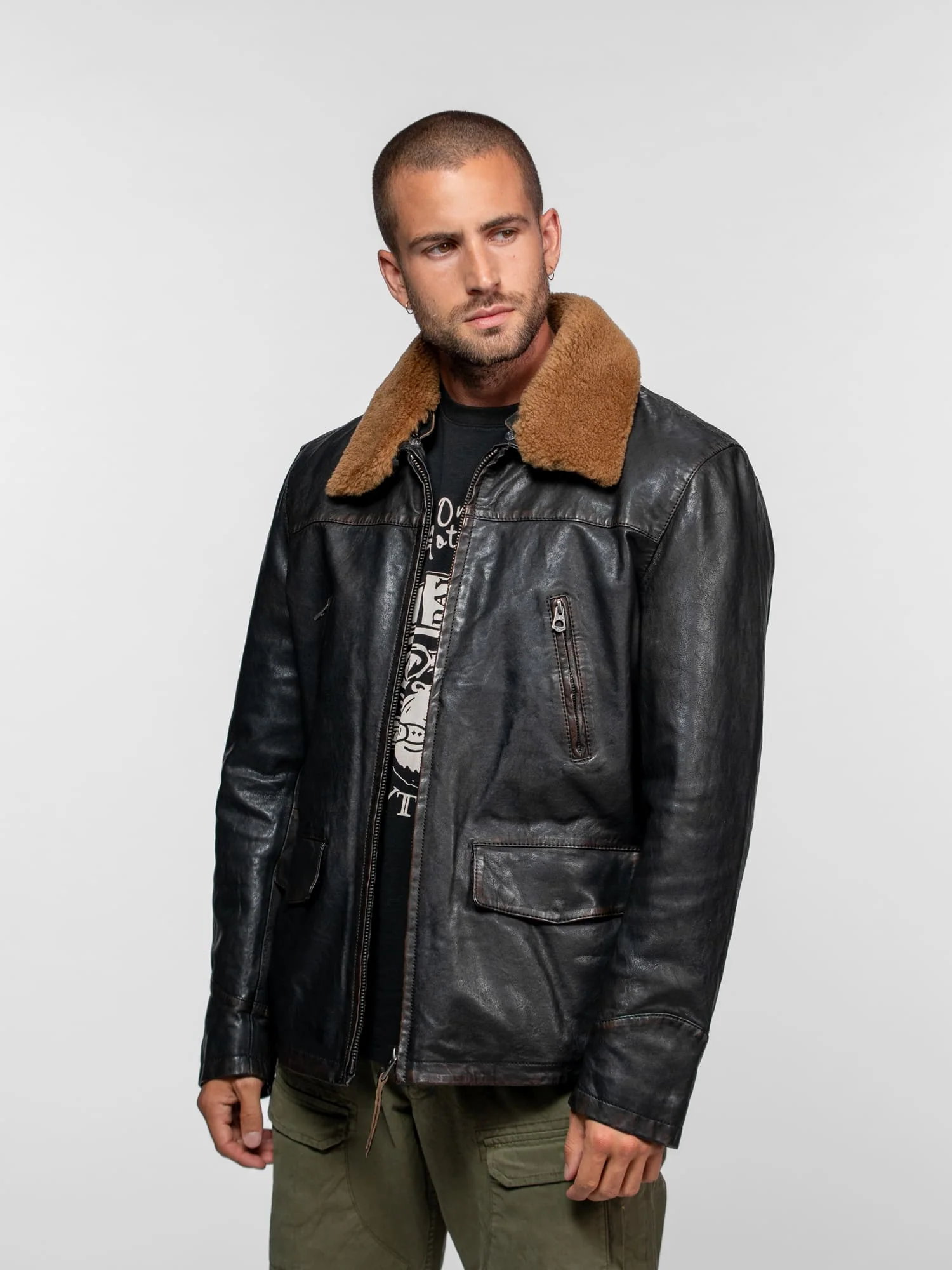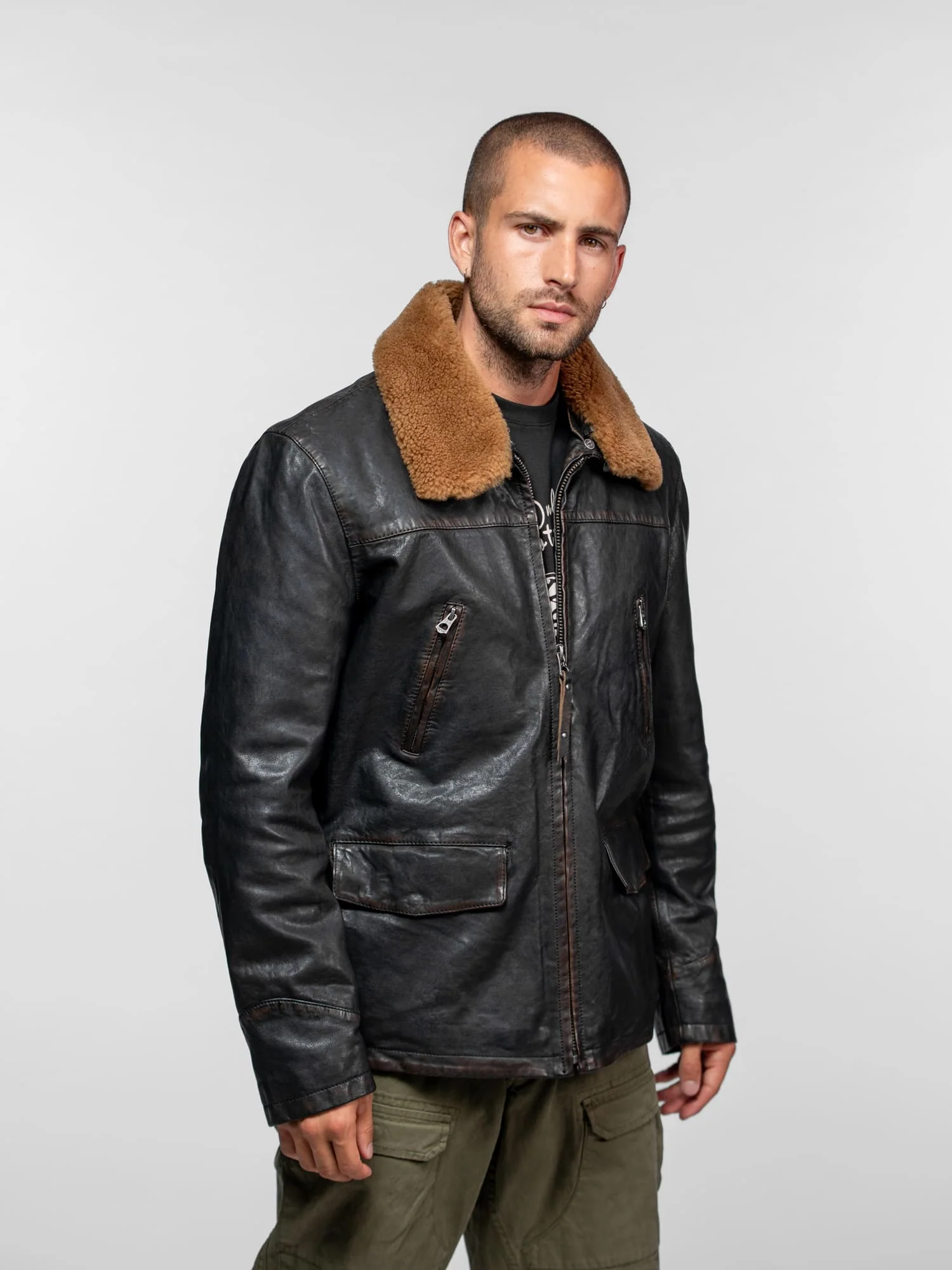 Optez pour un style vintage avec ce blouson esprit aviateur en cuir d’agneau épais effet vieilli. Proposé dans une coupe mi-longue confortable, il offre une protection idéale contre le froid.