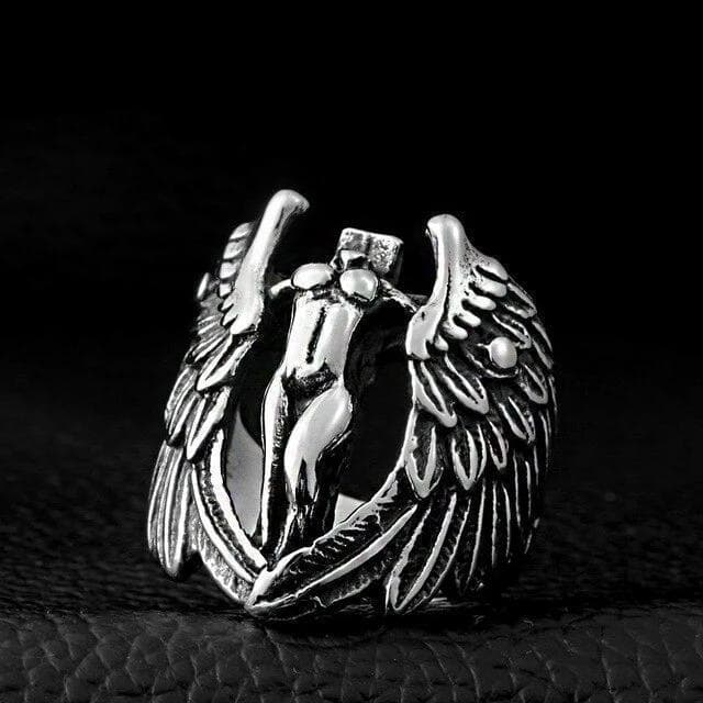 La bague Steampunk Ange gardien : la pièce parfaite pour tout mâle alpha. Fabriquée en acier inoxydable robuste, cette bague de motard présente un symbole angélique iconique qui ajoute un plus à votre allure robuste.