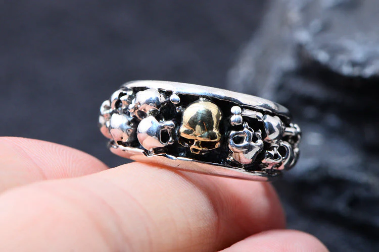 Dans notre boutique, la qualité prime, et chaque bijou raconte une histoire. Faites partie du mouvement avec un choix diversifié de bagues, alliant le vintage au punk, le biker au fantasy. Et pour ceux qui aiment les détails, des motifs tels que chauve-souris, loup et araignée ajoutent un relief unique à la collection. La livraison? Elle est tout aussi impeccable que le bijou.