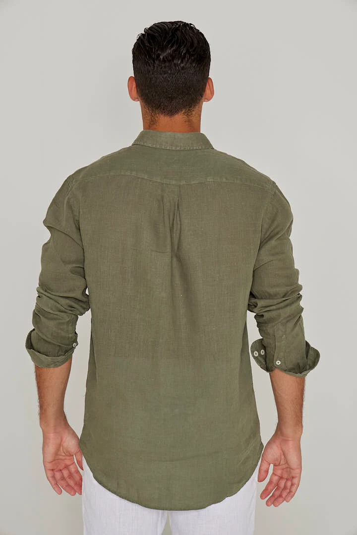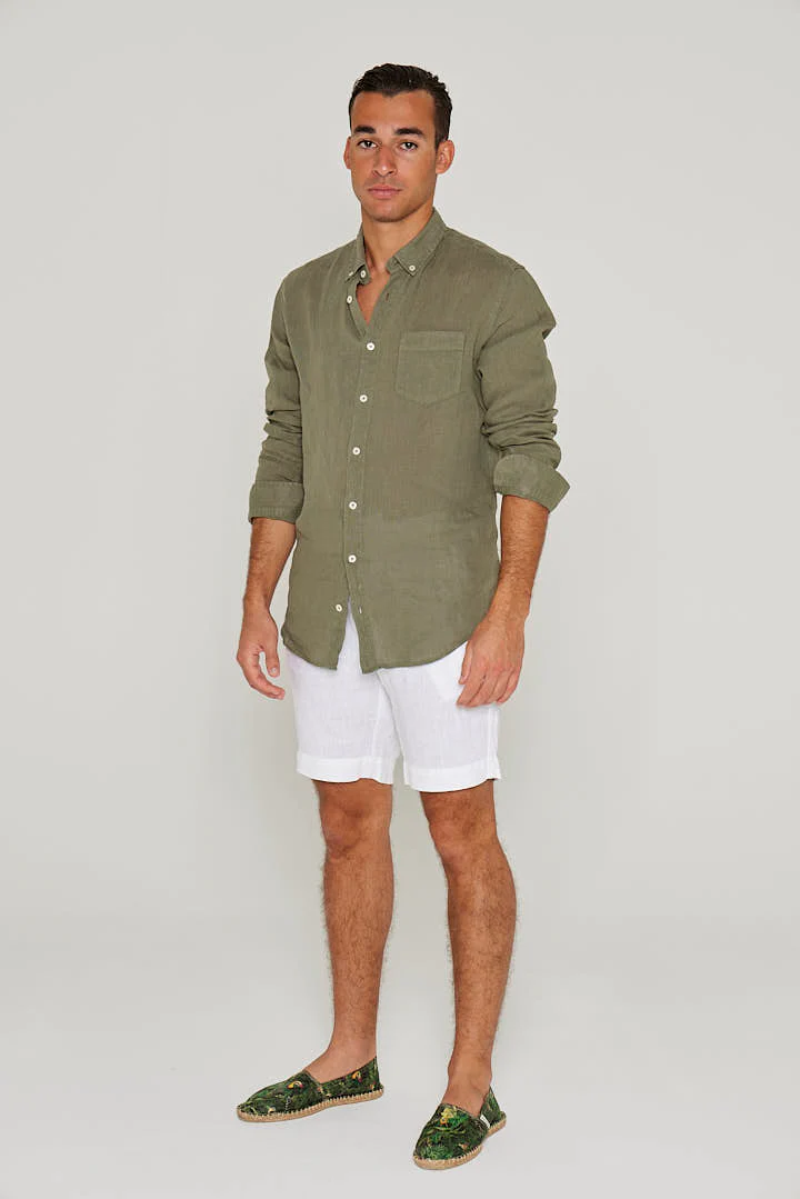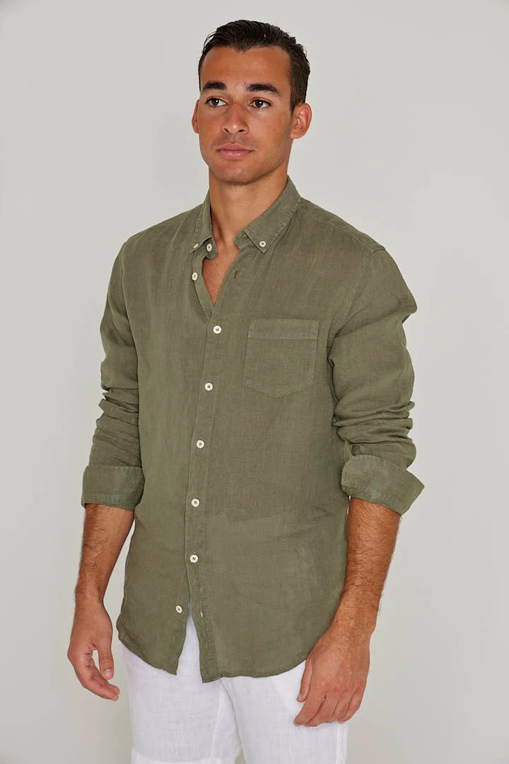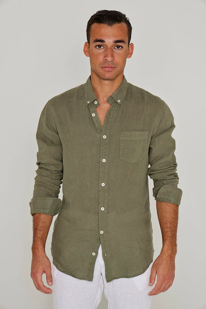 BARCLAY – Chemise Lin Manches longues Coupe droite – Homme – Kaki