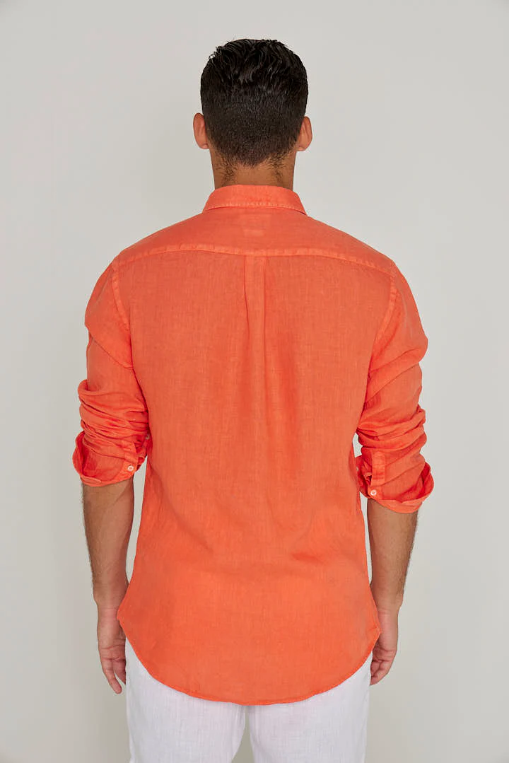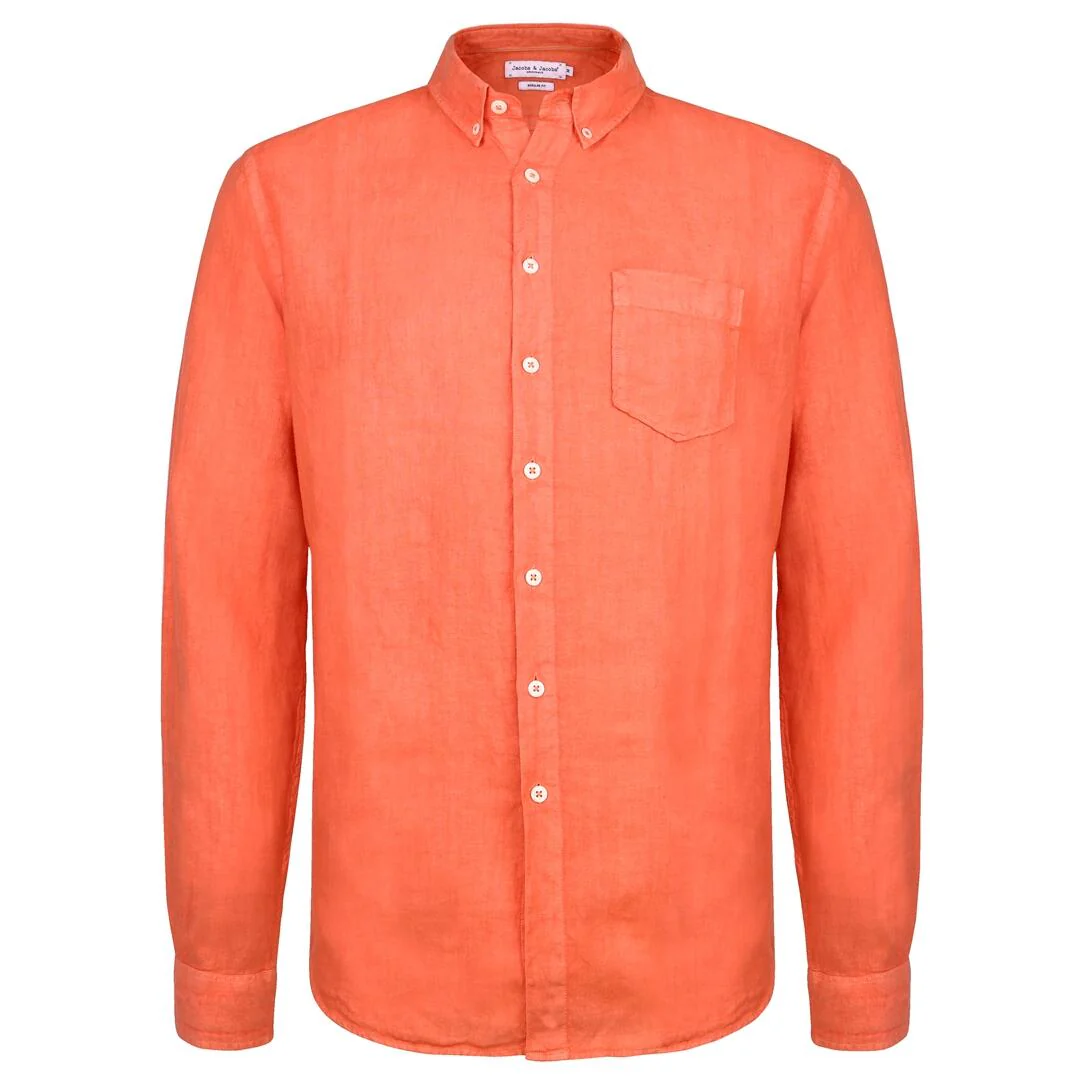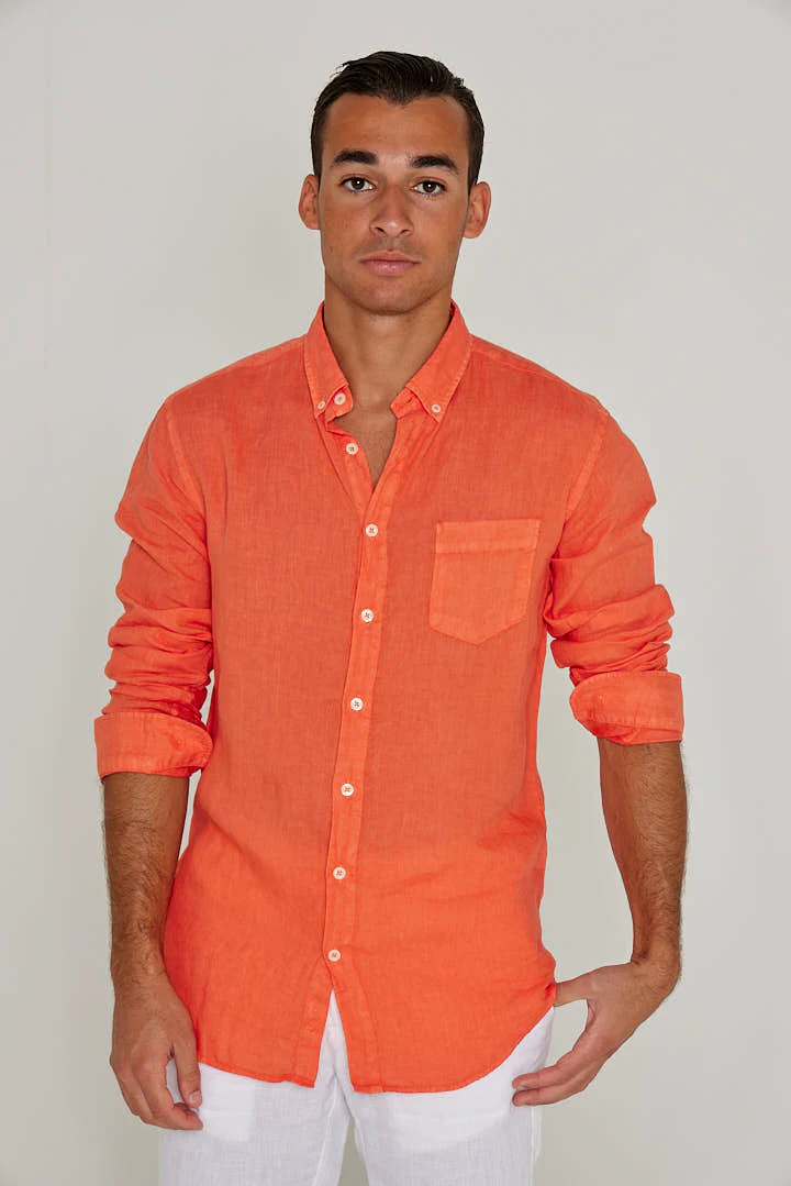 BARCLAY – Chemise Lin Manches longues Coupe droite – Homme – Orange