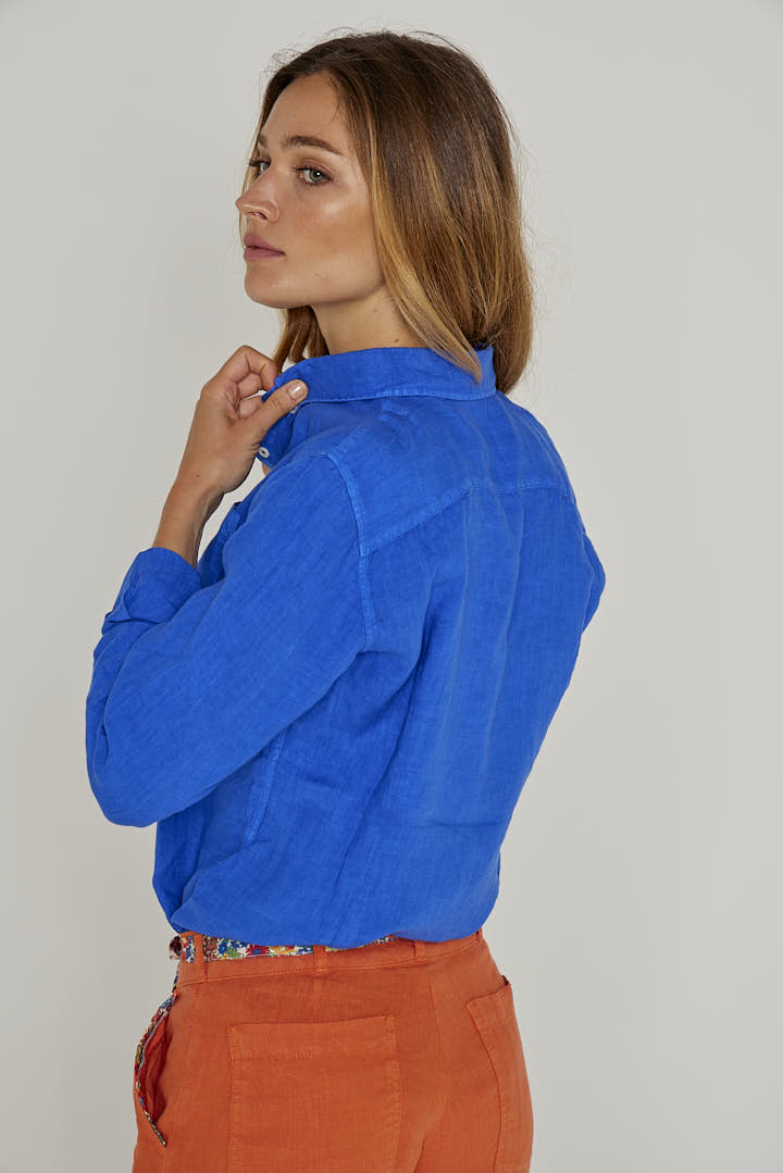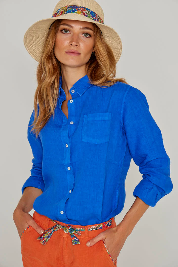 BARCLAYW – Chemise Lin Manches longues Coupe slim – Femme – Bleu royal
