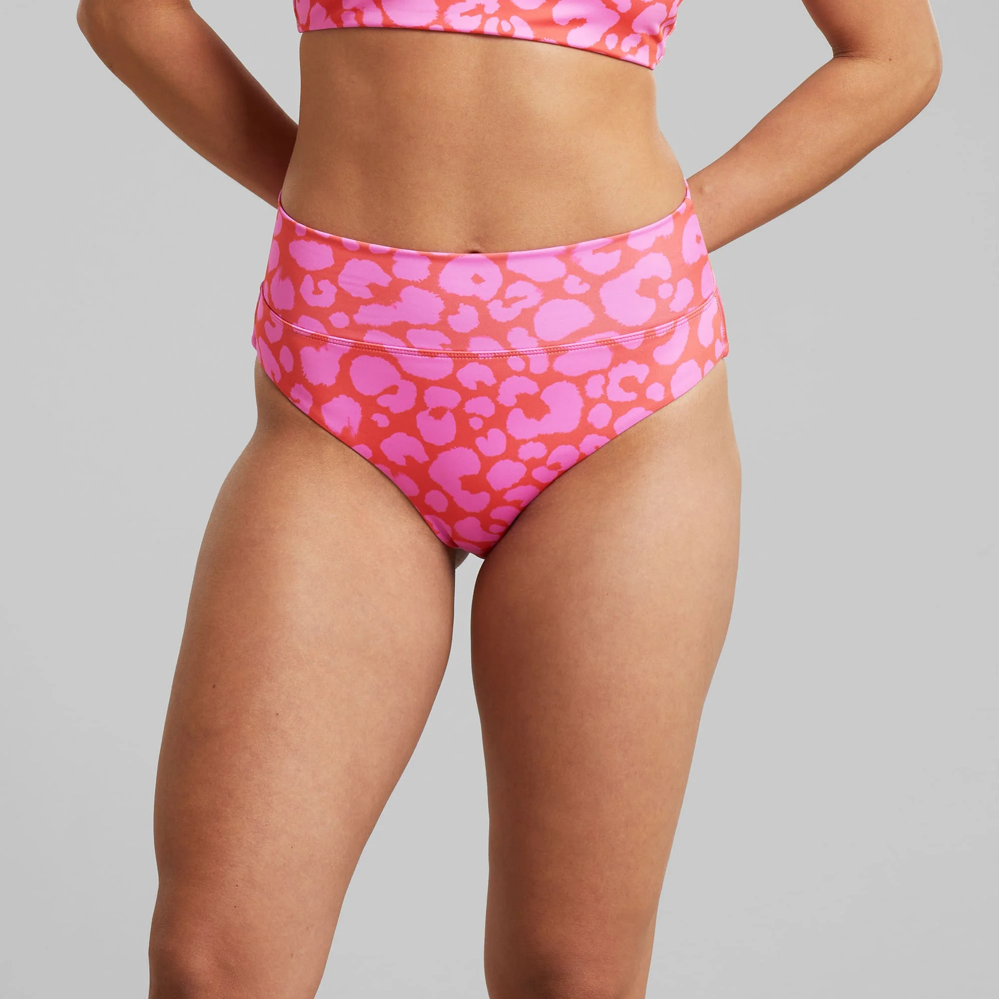 Bas de maillot de bain léopard en polyester recyclé · rouge et rose – bikini pants slite painted leopard red