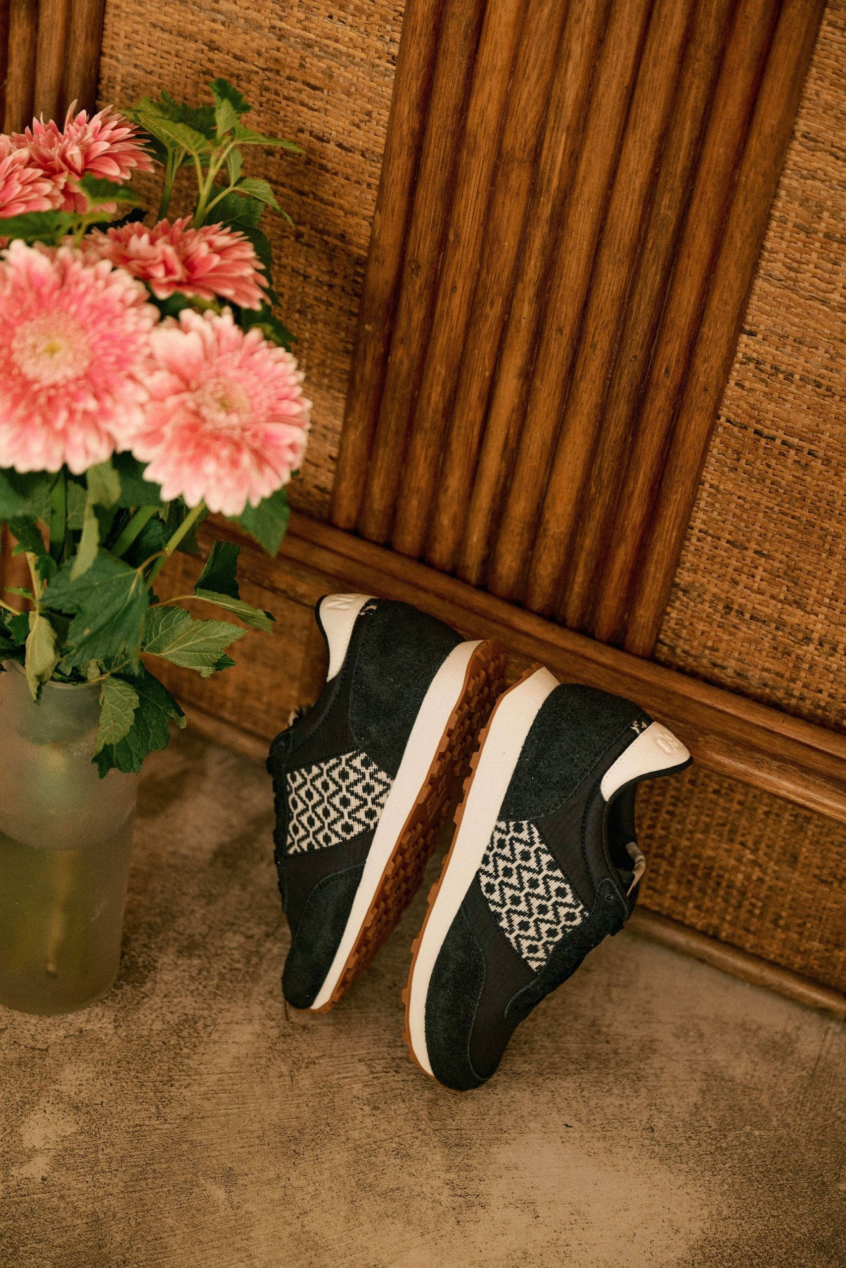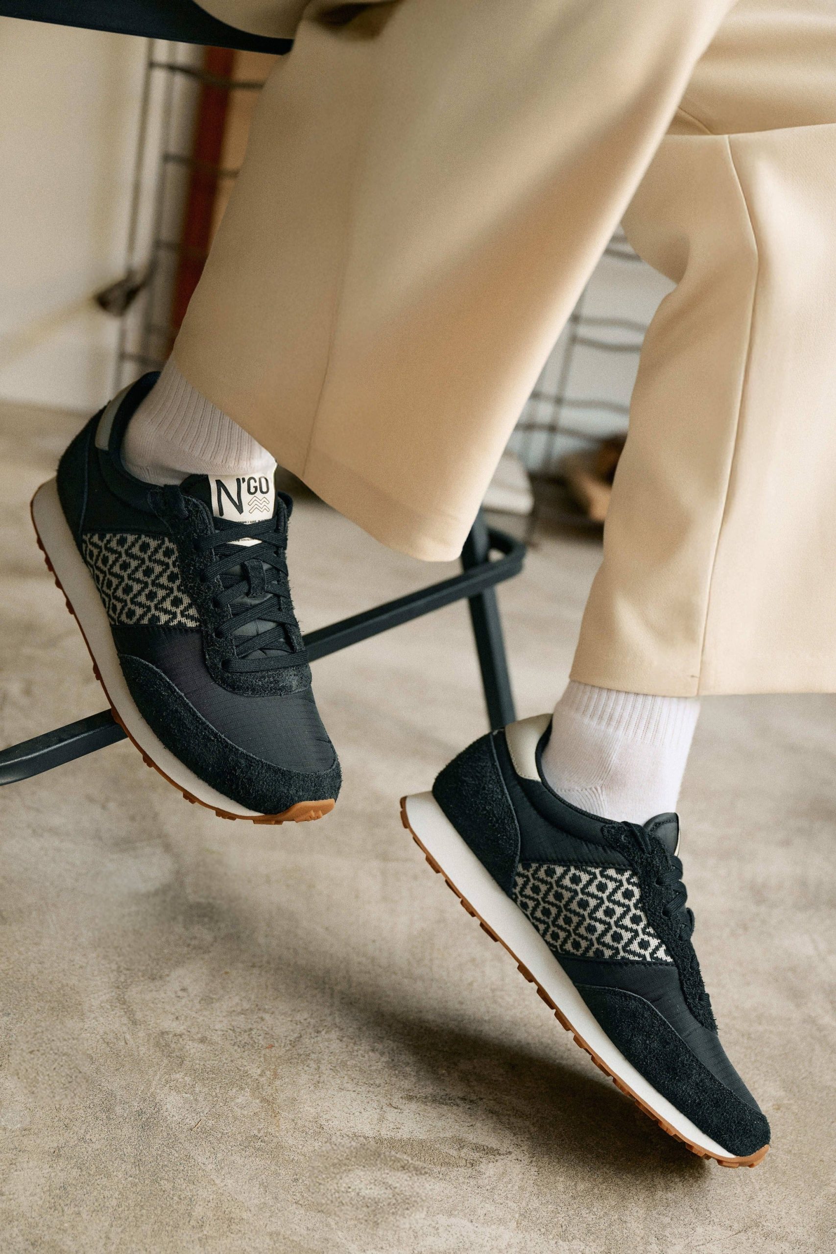 Cette paire de baskets basses unisexe est un mélange de mesh noir et de tissage artisanal au joli coloris noir et blanc. Ultra légère et confortable avec son mesh respirant et sa semelle inclinée, elle est polyvalente et moderne, et peut se marier avec toutes vos tenues !