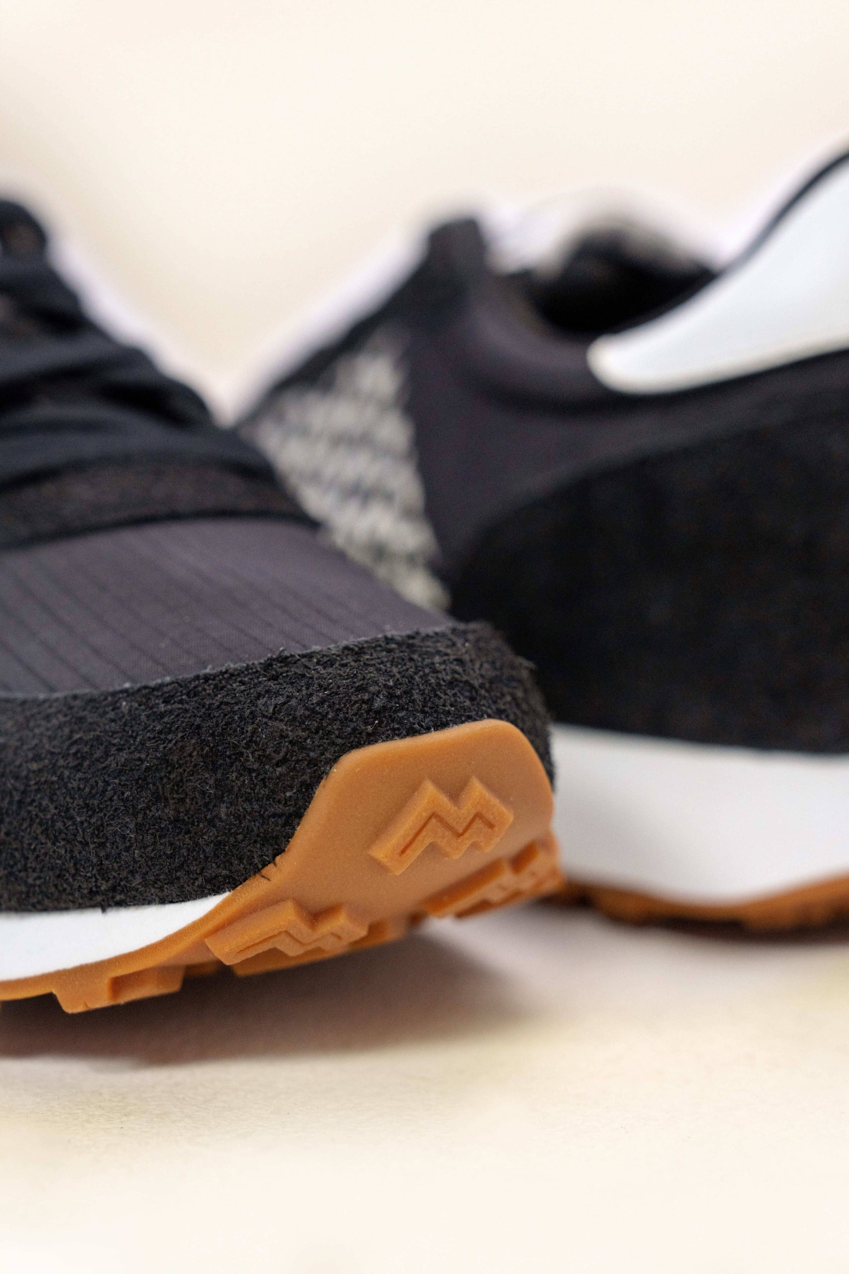 Composition : tige 100% mesh en polyester recyclé, tissage réalisé à la main en coton et polyester, doublure intérieure 100% polyester recyclé, semelle intérieure amovible 20% PET recyclé et 41% EVA bio sourcé (canne à sucre) et 39% EVA conventionnel, semelle extérieure 30% caoutchouc naturel vietnamien et 70% synthétique, lacets 100% polyester recyclé.