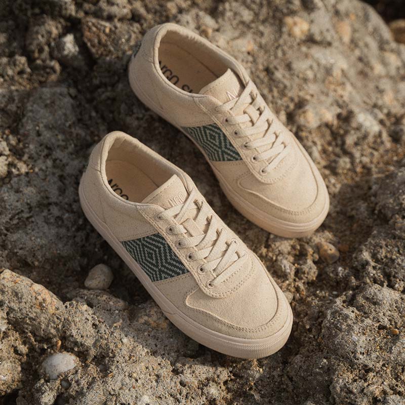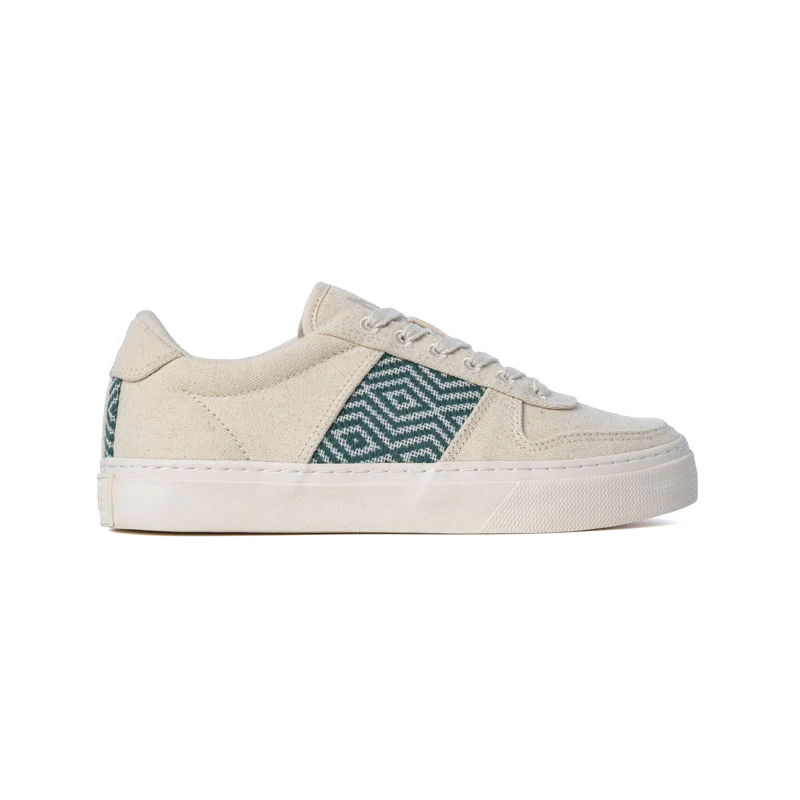 Baskets basses en toile de coton bio Mai Chau Canvas Teal Green · beige et vert