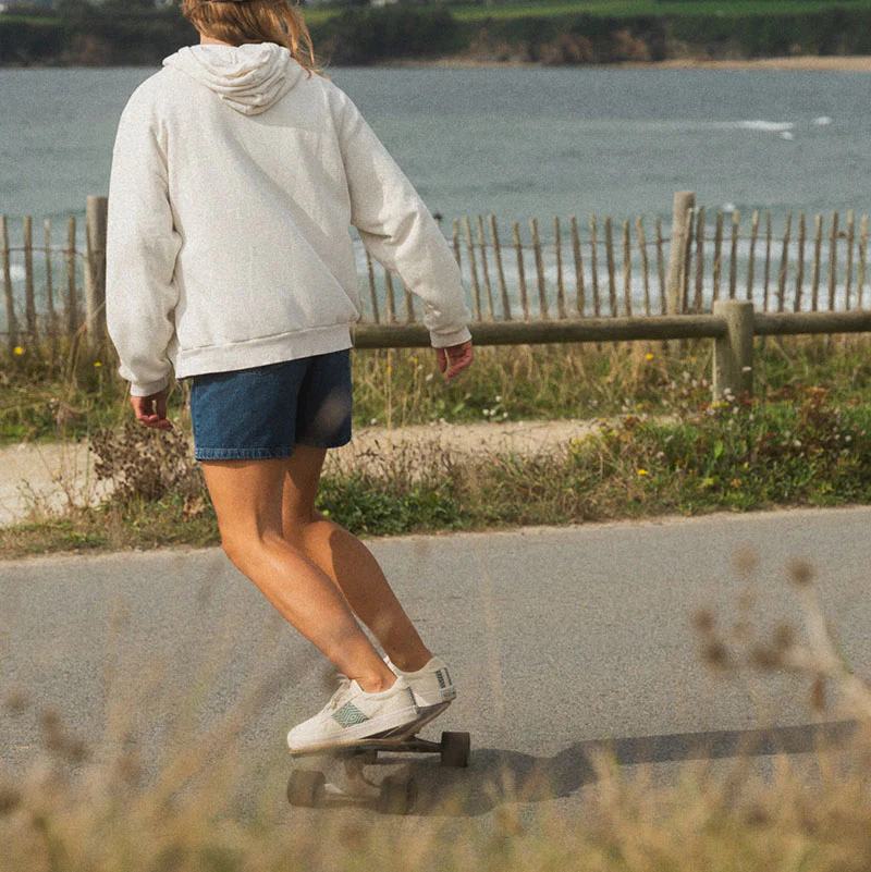 Composition : tige 100% coton biologique, tissage réalisé à la main en coton et polyester, doublure intérieure 100% coton bio, semelle intérieure amovible 20% PET recyclé et 41% EVA bio sourcé (canne à sucre) et 39% EVA conventionnel, semelle extérieure 70% caoutchouc naturel vietnamien et 30% synthétique, lacets 100% coton bio.