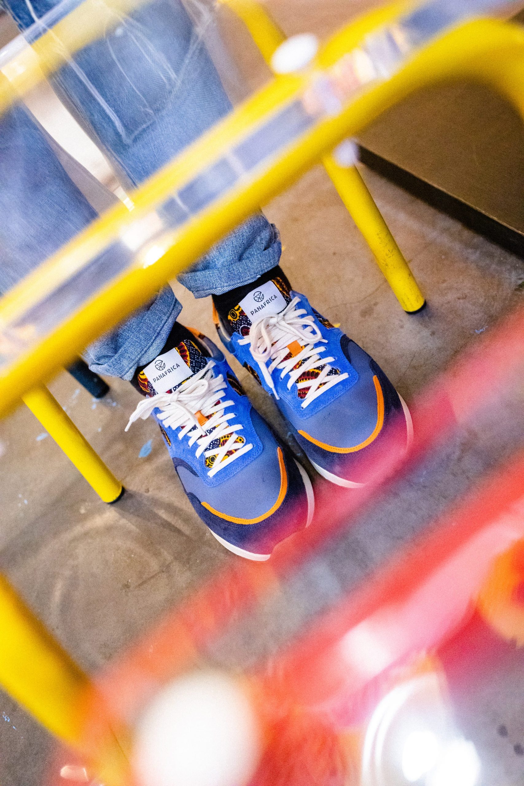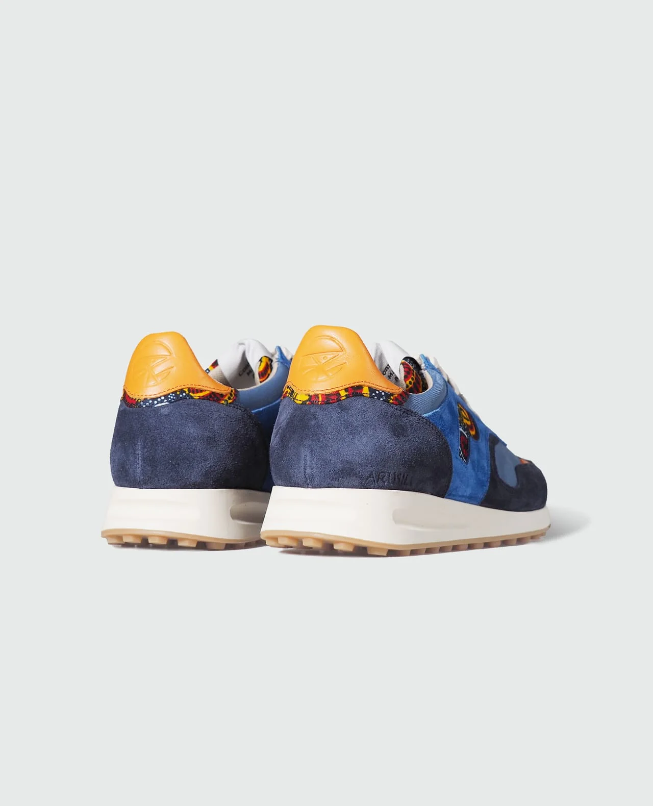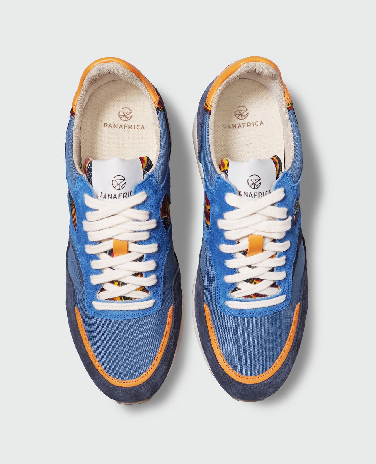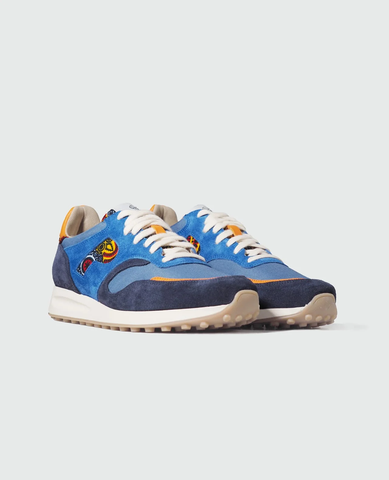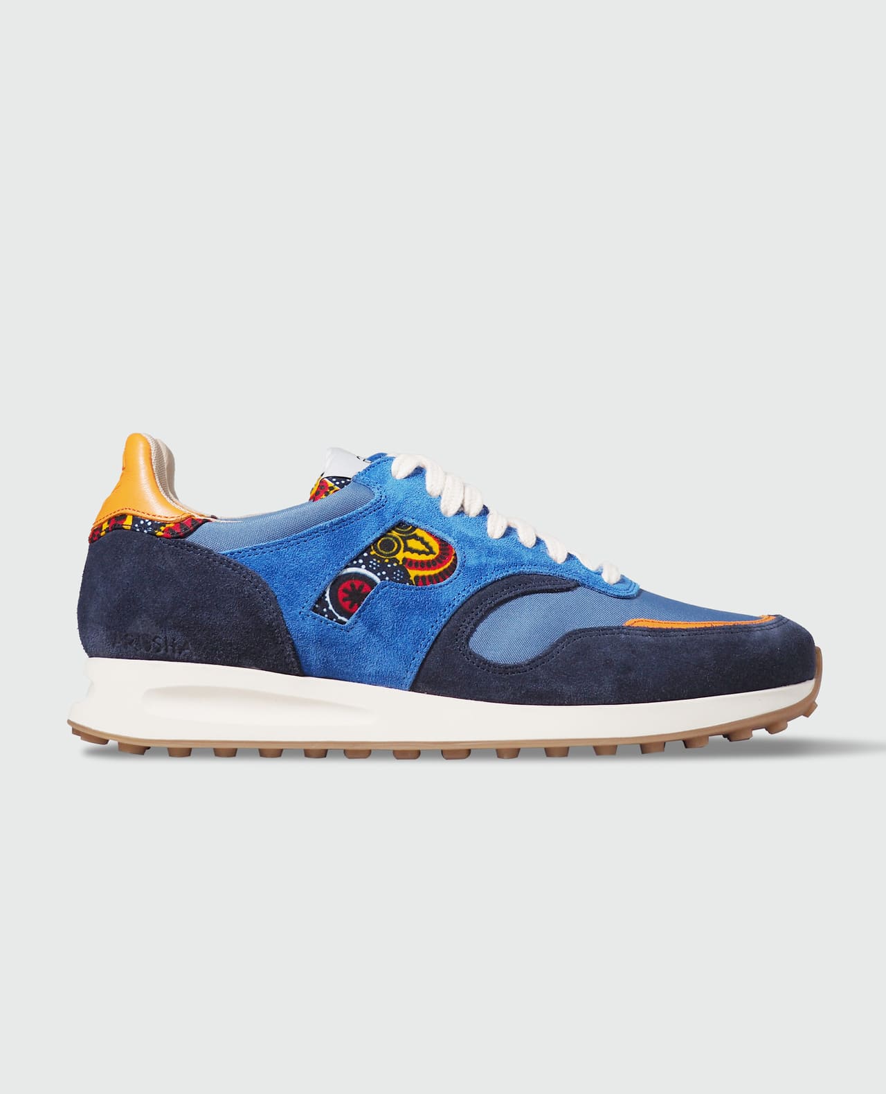 Composition : tige tissu wax 100% coton, cuir suède, doublure 100% polyester recyclé, semelle gomme, empiècements cuir pleine fleur, lacets 100% coton.