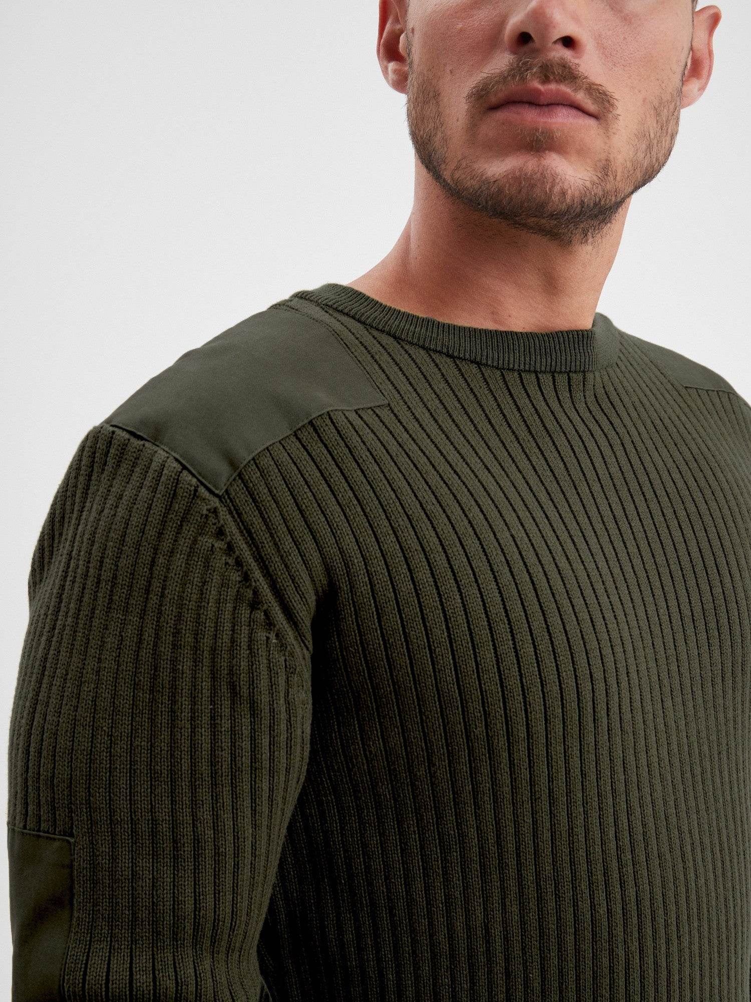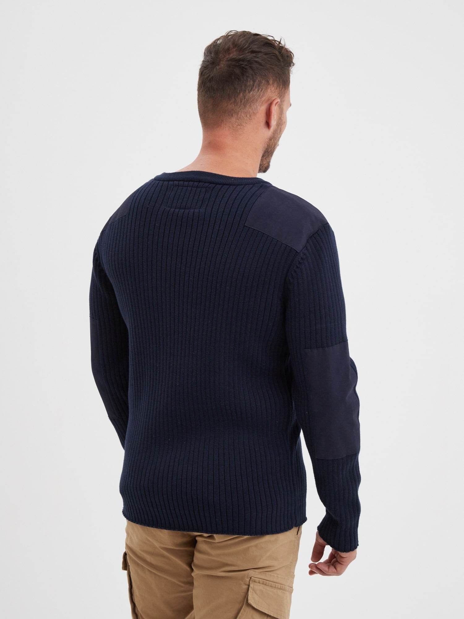 Idéal en toute saison, le modèle Basset est un pull à col rond basique, tricoté avec un coton épais côtelé. Il dispose de plusieurs empiècements aux coudes et épaules, lui apportant une touche mode.