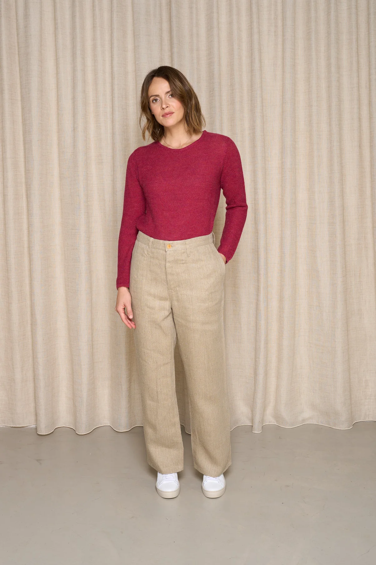 Origine du lin : Produit en Normandie (L’association Lin et Chanvre bio prend en charge la production de la graine jusqu’au fil, grâce à son réseau de partenaires en Normandie)