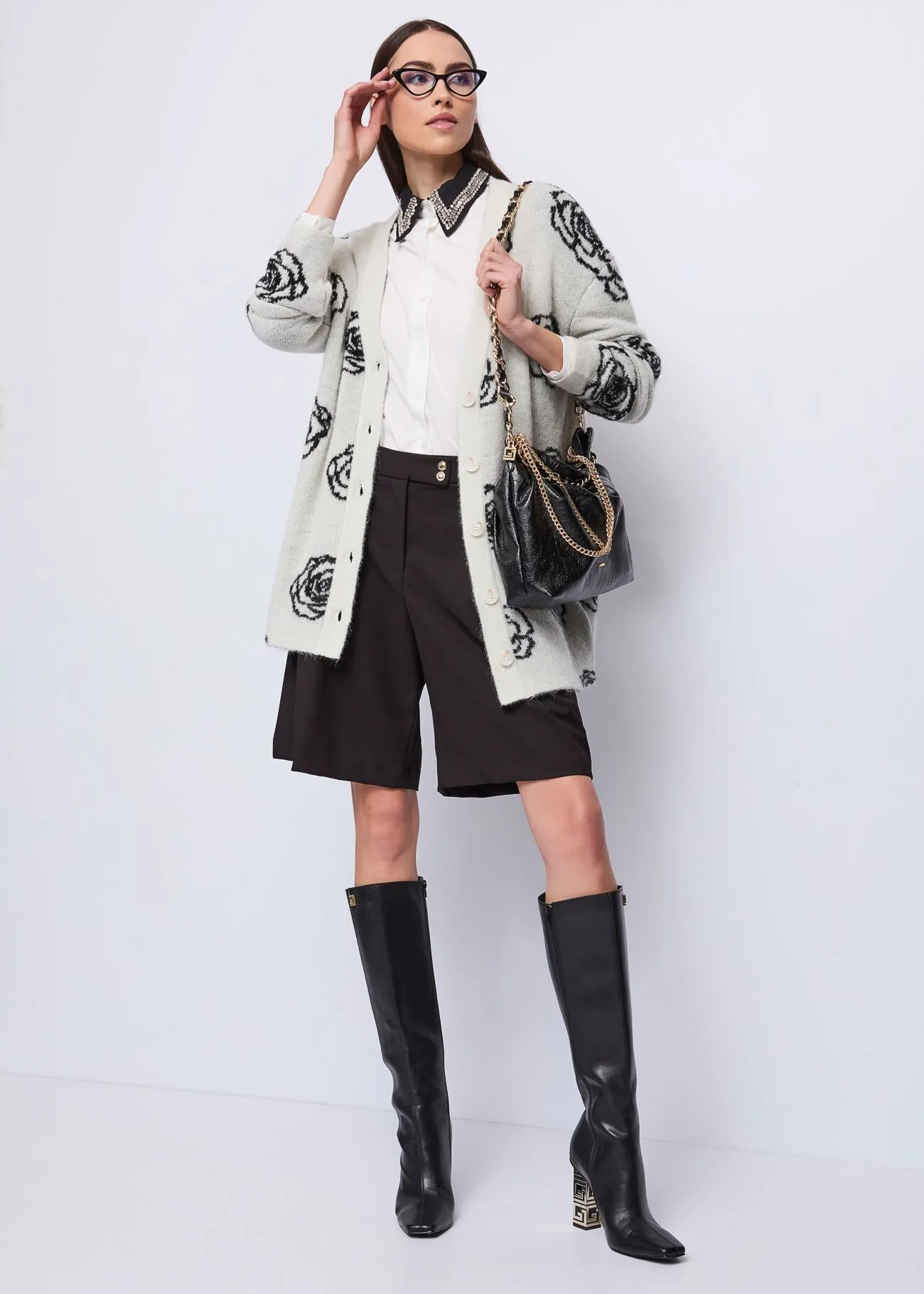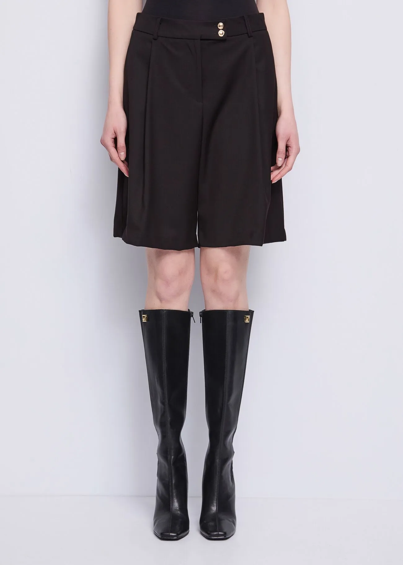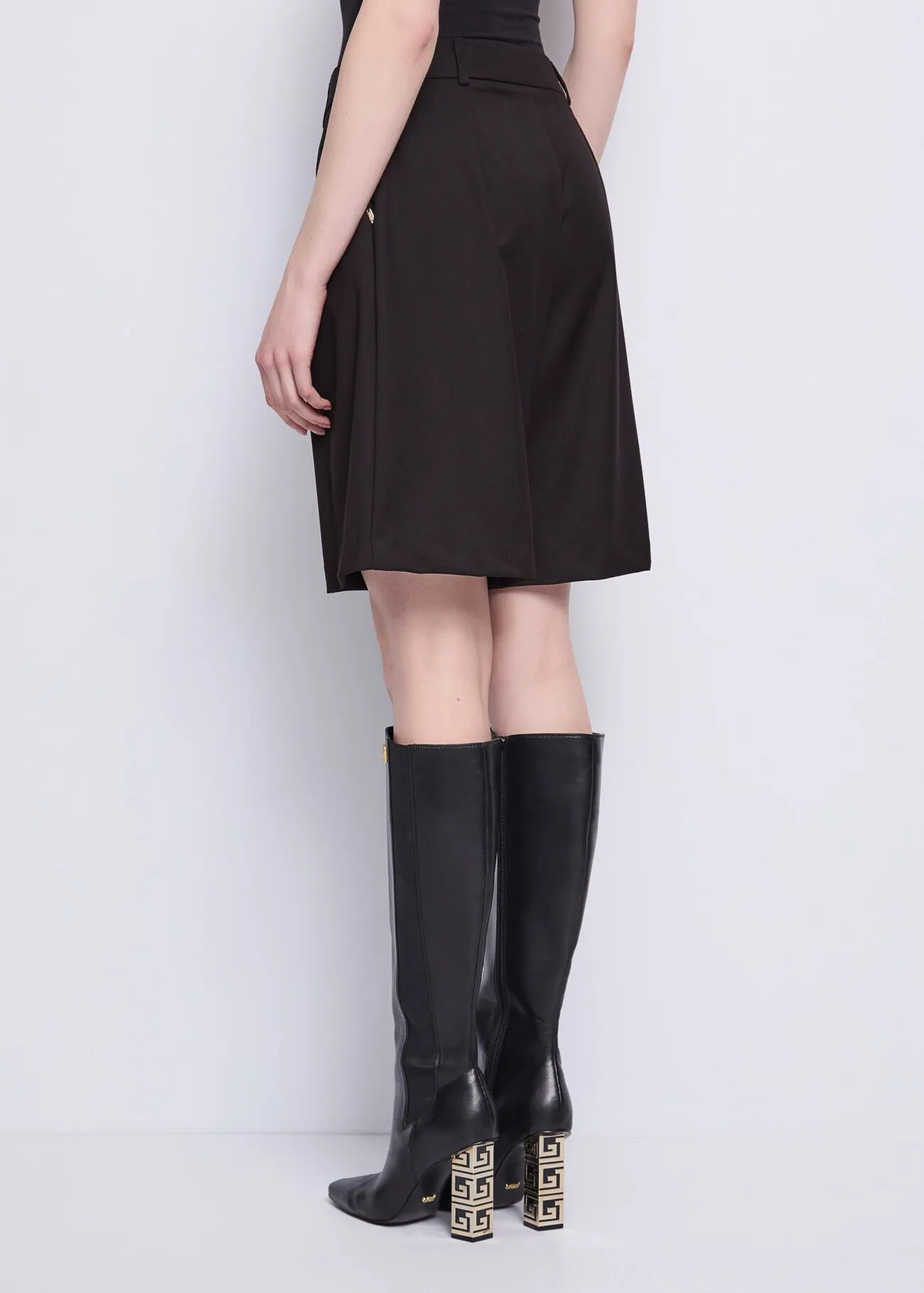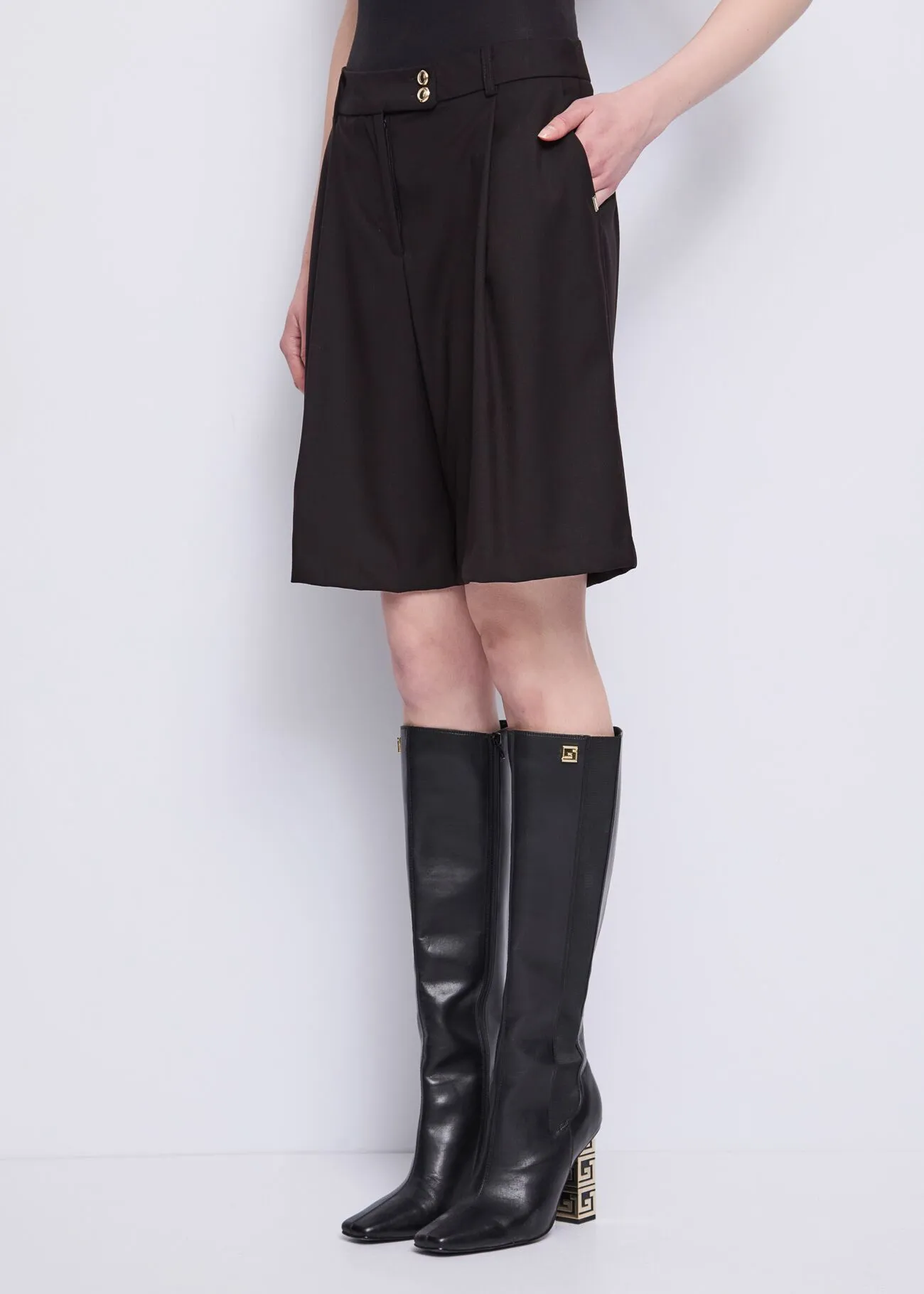 Optez pour ce bermuda en viscose mélangée extensible, doté de plis, de poches latérales et de boutons bijoux. L’alliance parfaite de l’élégance et du confort.