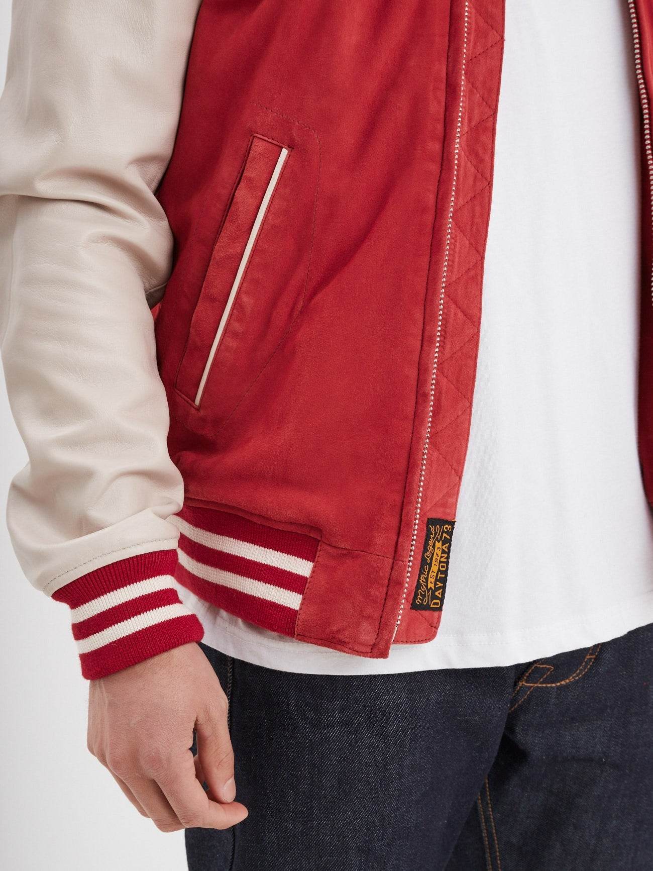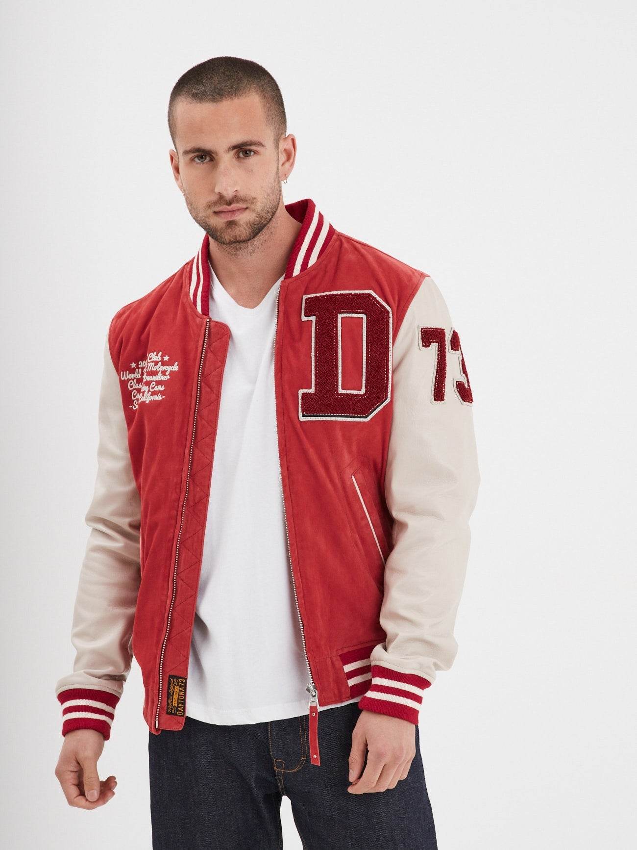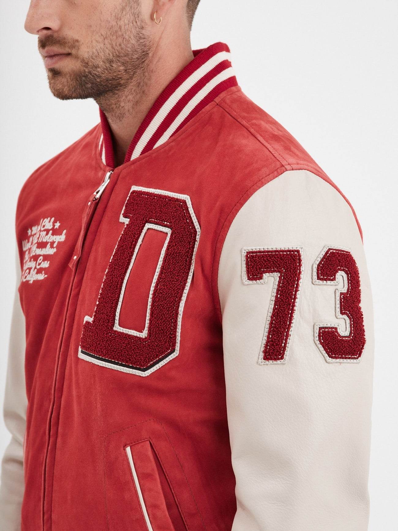 Ce teddy de mi-saison puise son inspiration dans les emblématiques modèles universitaires portés par les étudiants sportifs des années 70-80. Il est composé de deux cuirs. Un cuir de chèvre effet velours mixé à un cuir d’agneau aux bras.