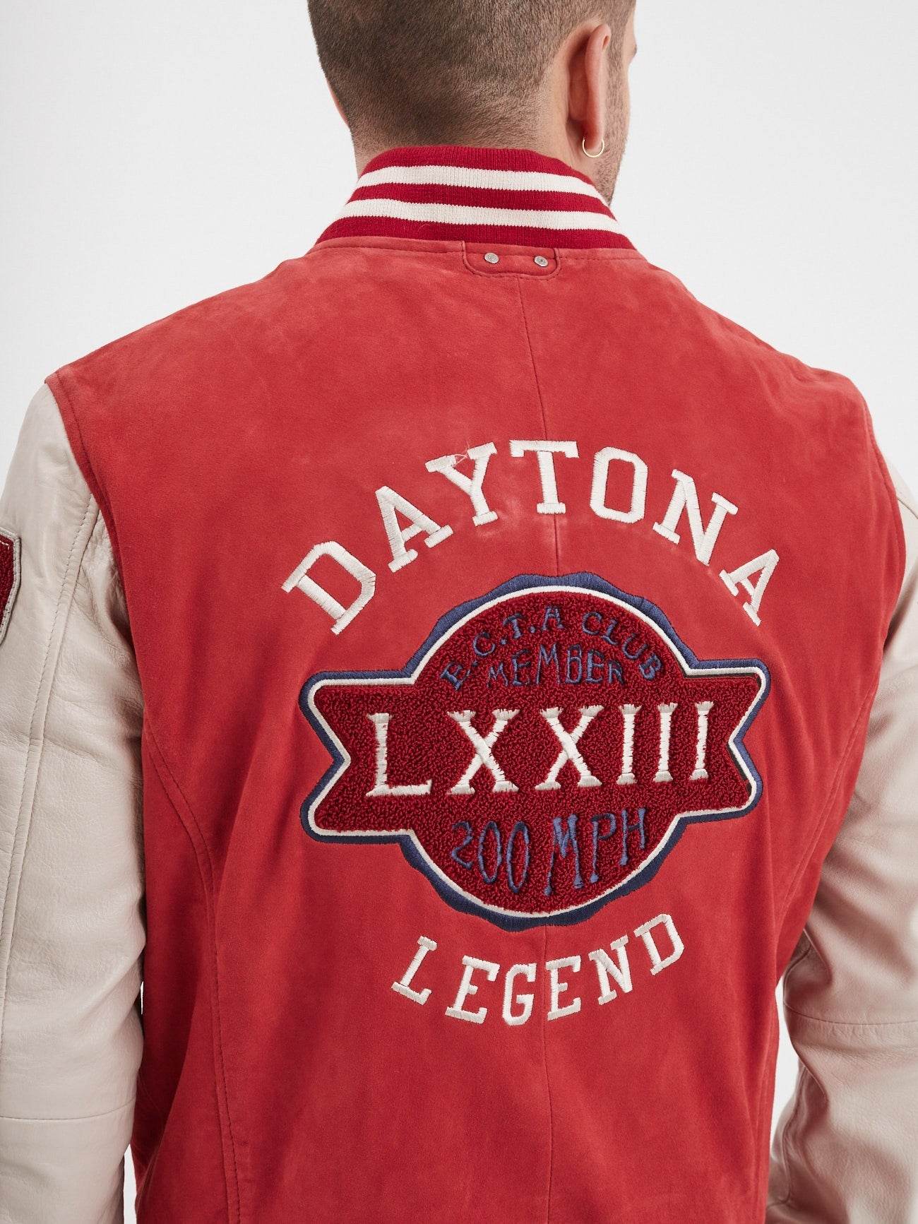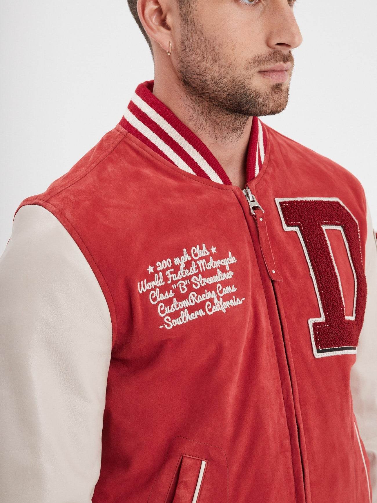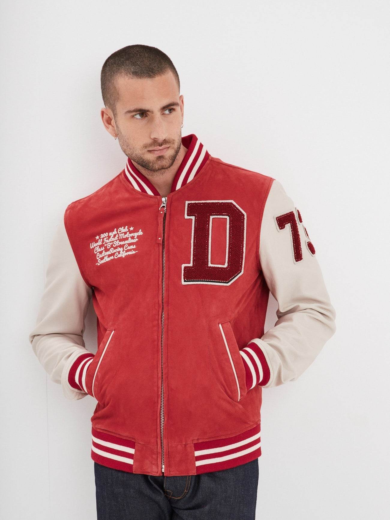 Ce teddy de mi-saison puise son inspiration dans les emblématiques modèles universitaires portés par les étudiants sportifs des années 70-80. Il est composé de deux cuirs. Un cuir de chèvre effet velours mixé à un cuir d’agneau aux bras.