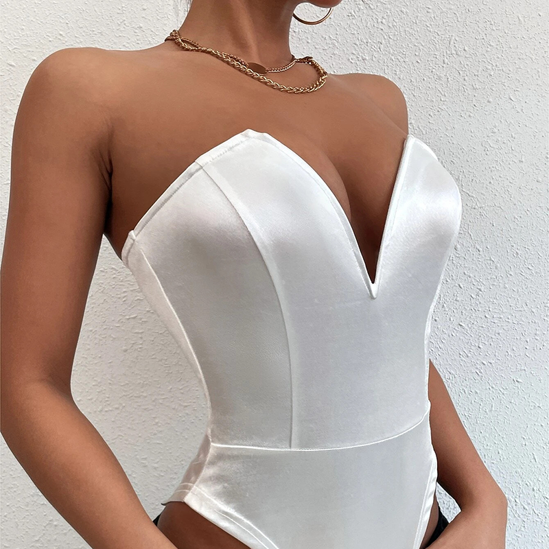 Body couleur blanche Design bustier Décolleté plongeant Adoptez ce body bustier blanc Sublimez votre silhouette en portant ce body bustier blanc avec son décolleté plongeant qui mettra en valeur votre buste. Sa couleur unie et élégante facilitera l’harmonisation avec n’importe quelle tenue. Accessoirisez-le avec un collier délicat pour parfaire votre style.