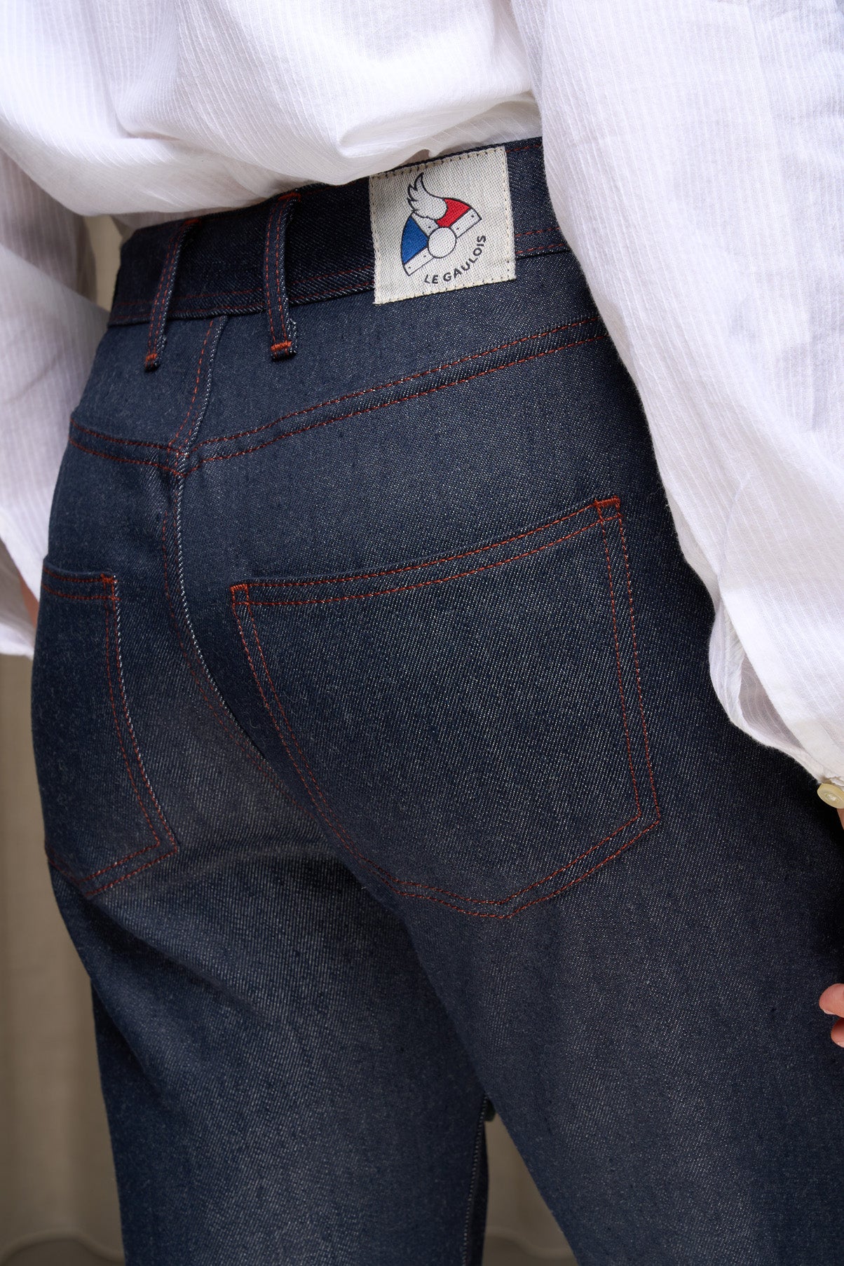 Le tissu est un sergé renforcé, composé de Lin de Normandie et de Laine Mérinos française. La solidité du lin en fil de chaîne et la douceur de la laine en fil de trame confèrent à nos jeans une qualité et un confort exceptionnel.