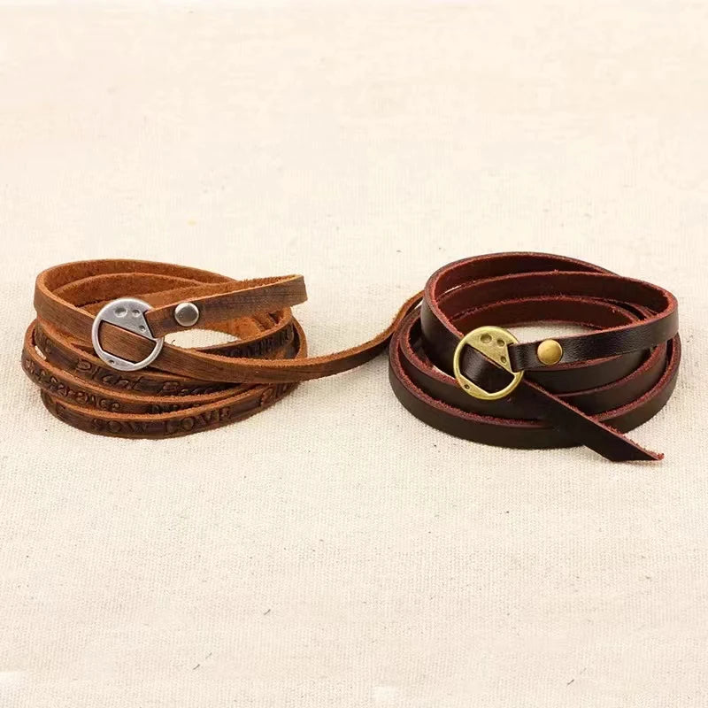 Ce Bracelet en Cuir pour Homme est gravé d’amour et de spiritualité avec une influence hippie revendiquée.
