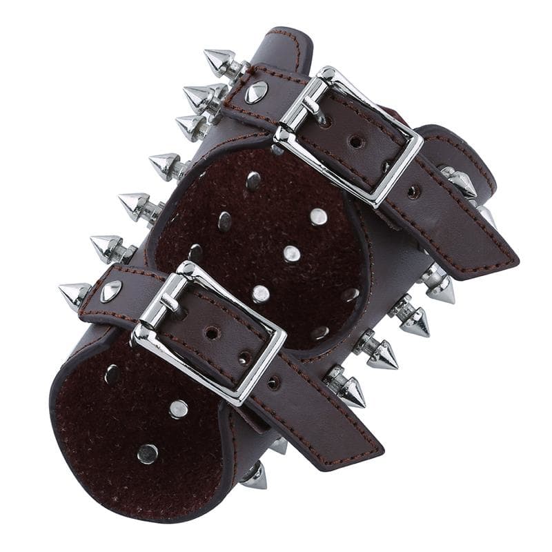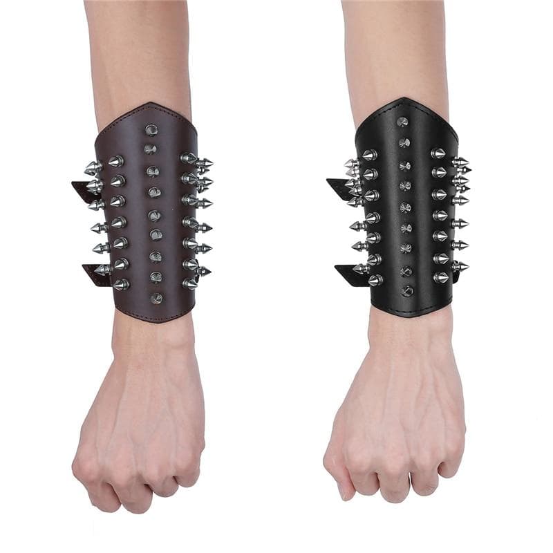 Ce Bracelet de Force avec Pique à l’esprit Punk à presque la longueur d’une manchette.
