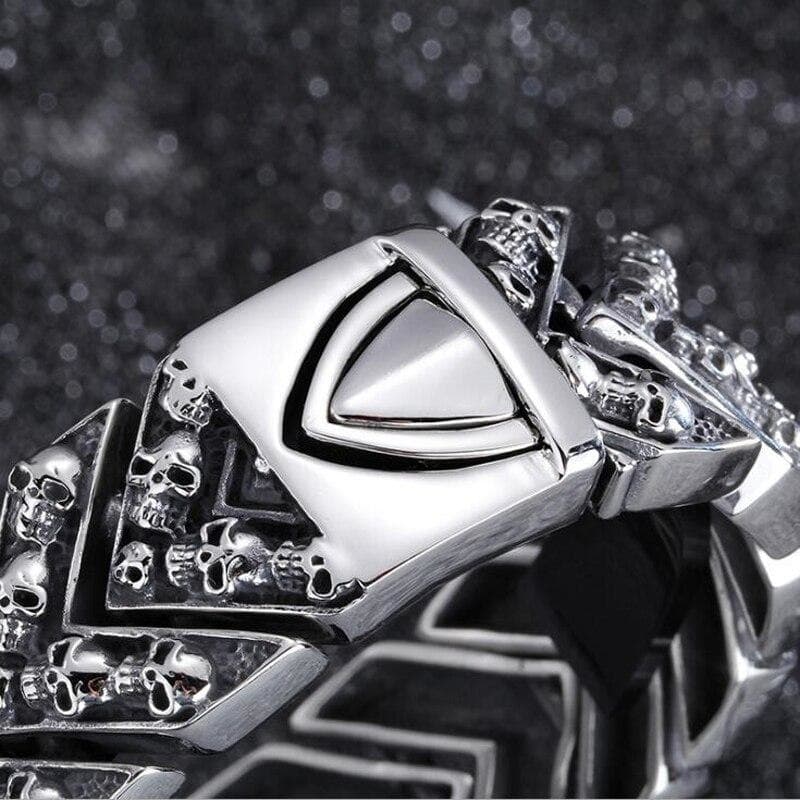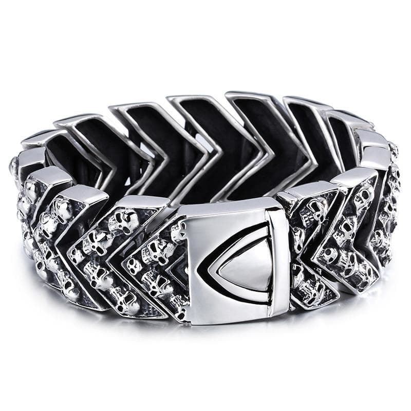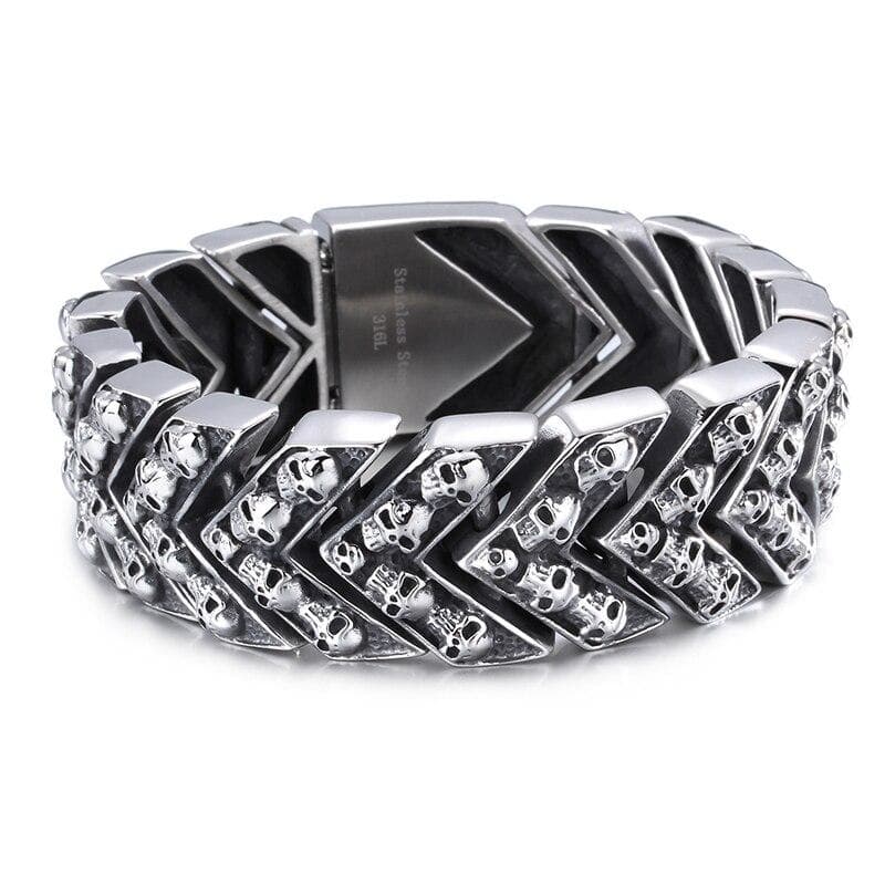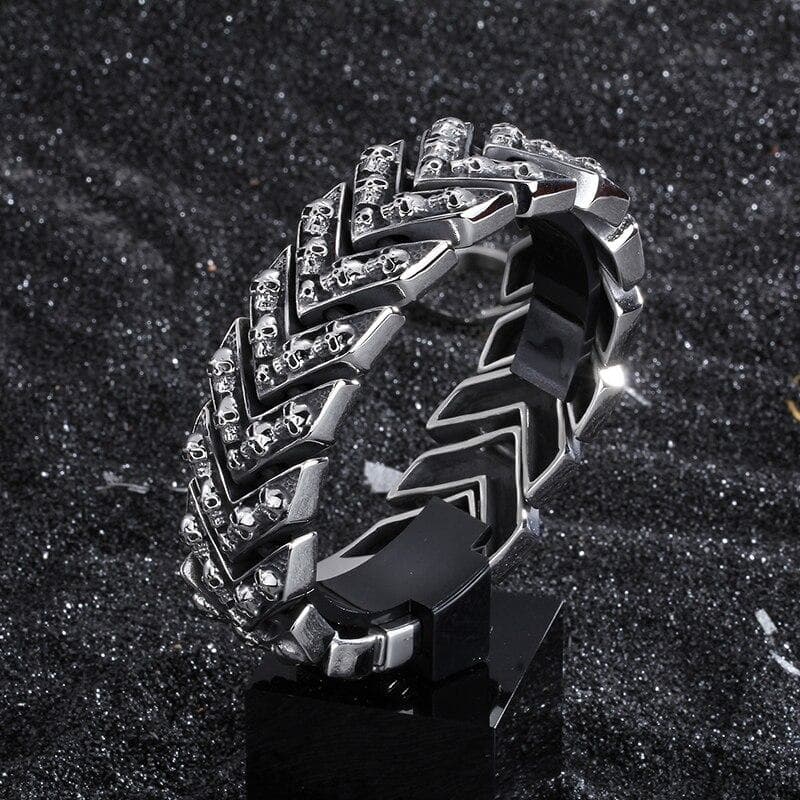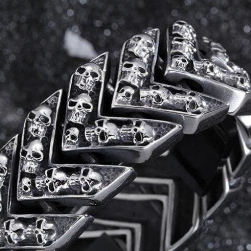 Un Bracelet Gothique lugubre à souhait parsemé de Têtes de Mort.