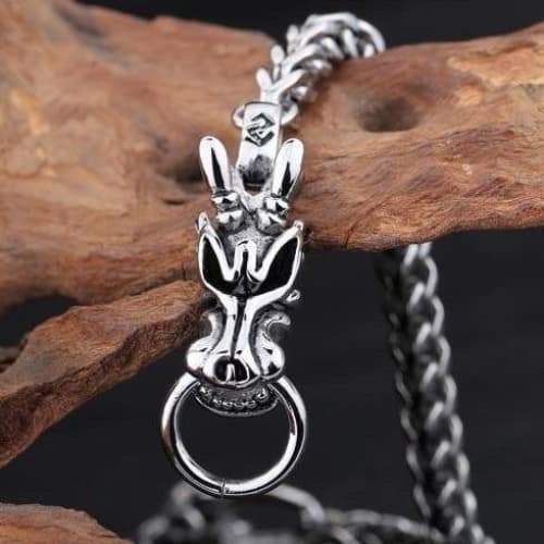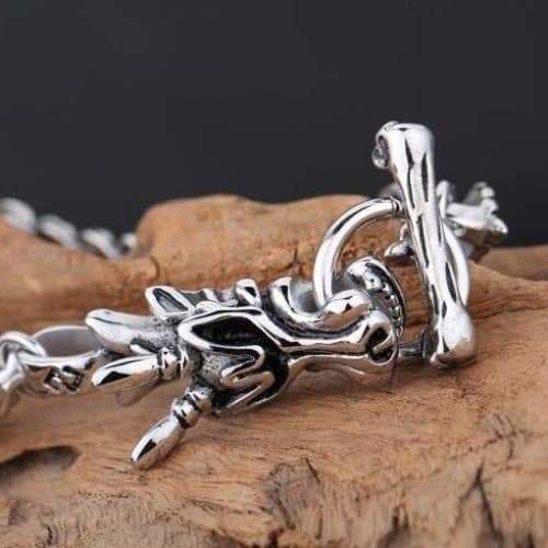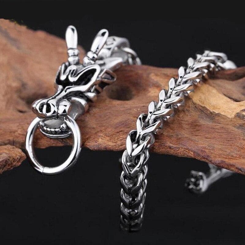 Cette Tête De Dragon vient fermer un Bracelet d’acier robuste et stylé.