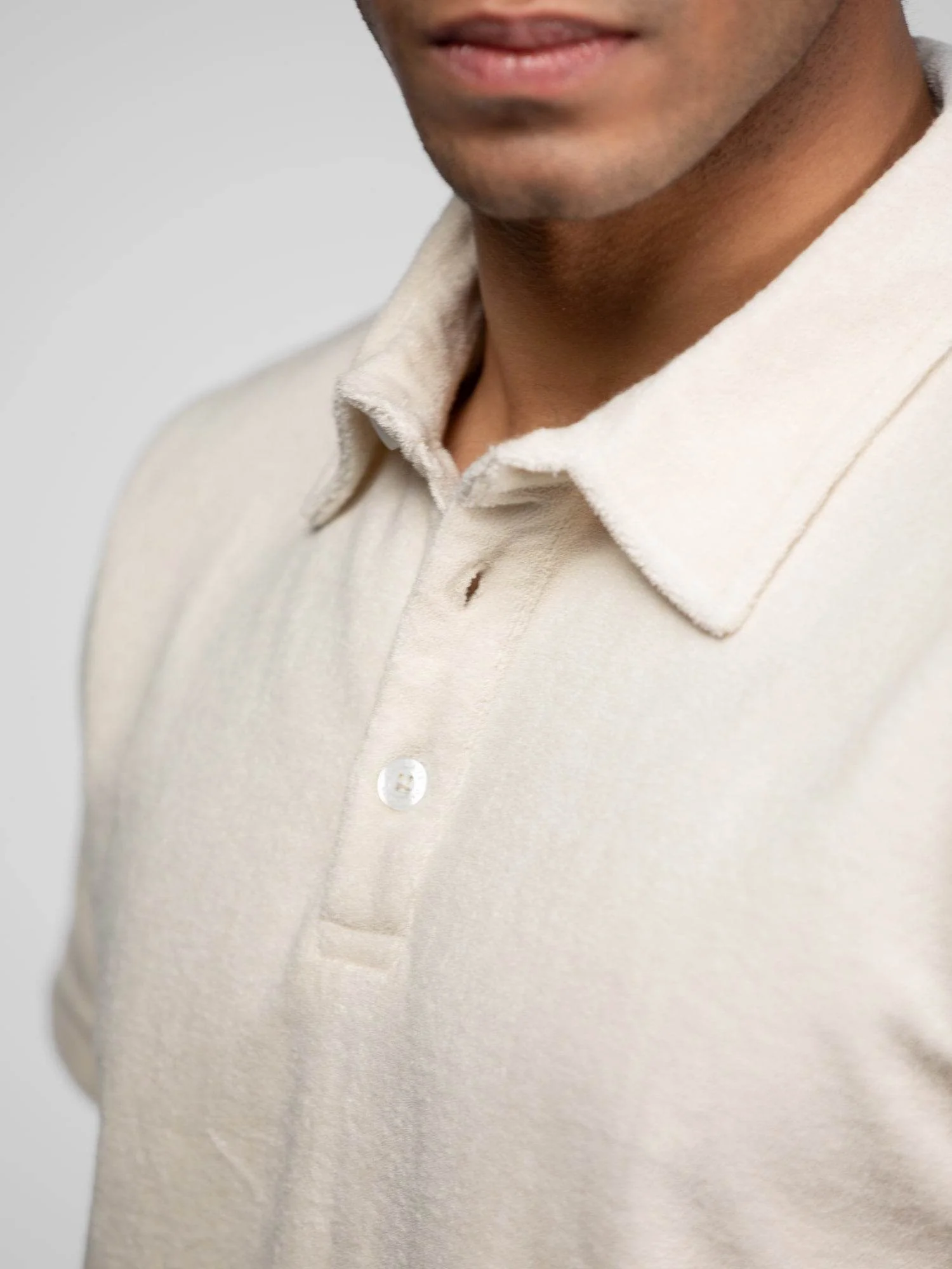 Adoptez un look à la fois raffiné et décontracté avec notre polo en tissu éponge, un essentiel pour un style estival chic et confortable. Confectionné dans une matière douce et absorbante, ce polo est idéal pour les journées ensoleillées, en ville comme en bord de mer.