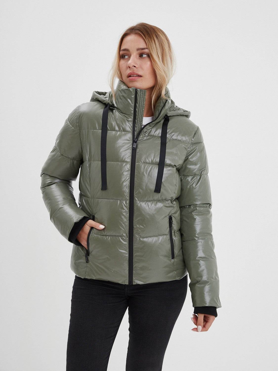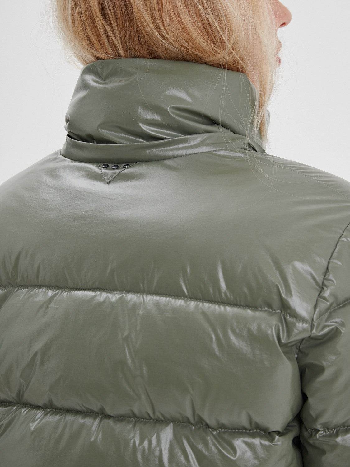 La doudoune Calandra pour femme est une veste matelassée conçue pour offrir chaleur, confort et style. Elle est fabriquée avec du nylon dans une finition vernis brillant qui lui donne cette texture originale.