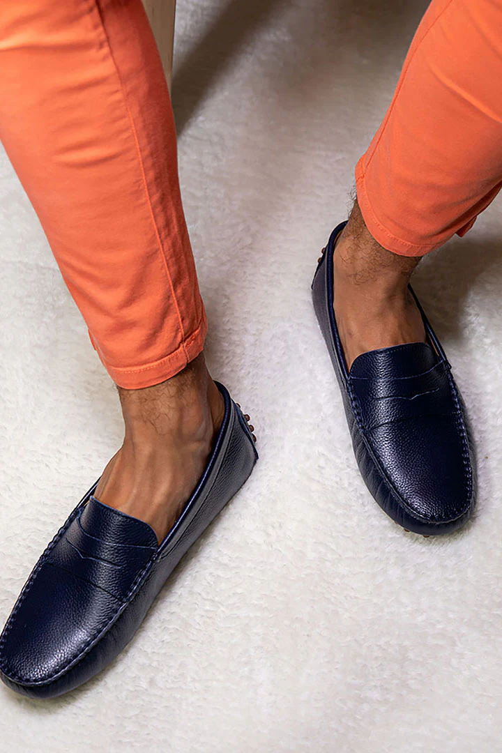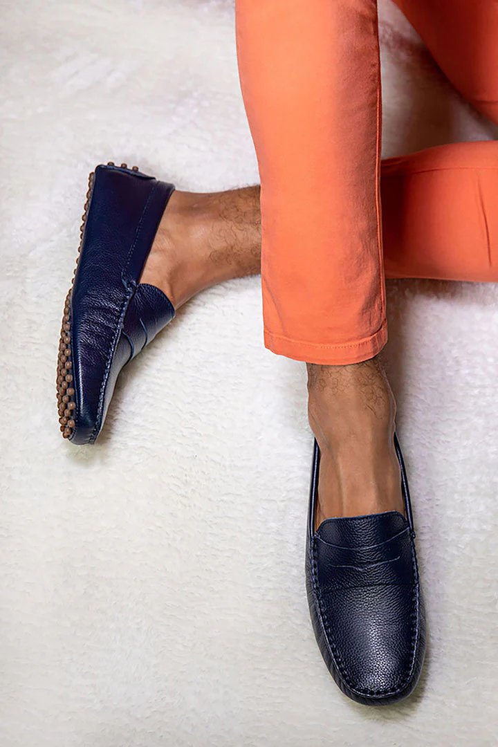 CALVI – Mocassins Bride Cuir – Homme – Bleu marine grainé