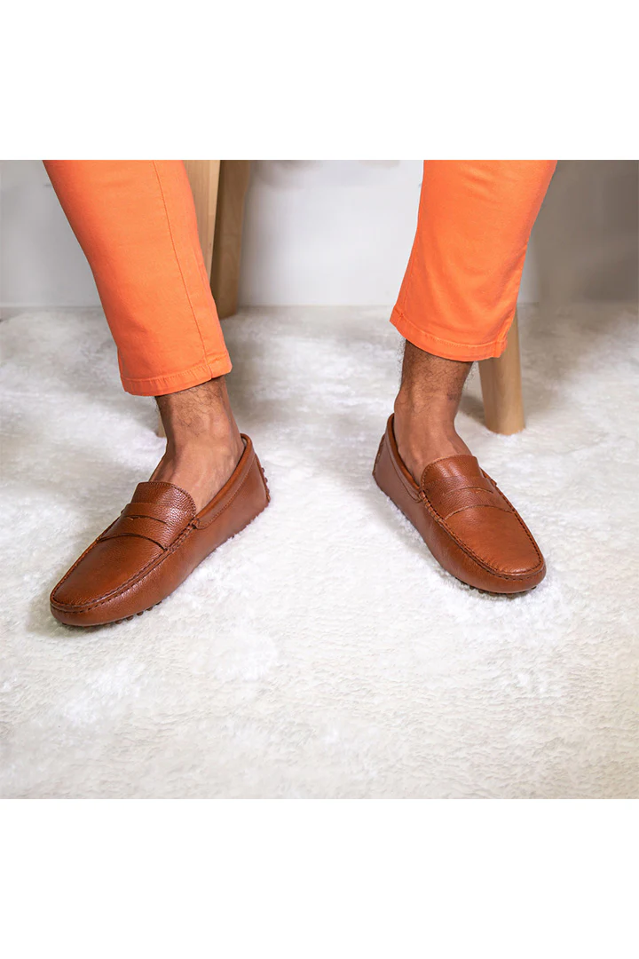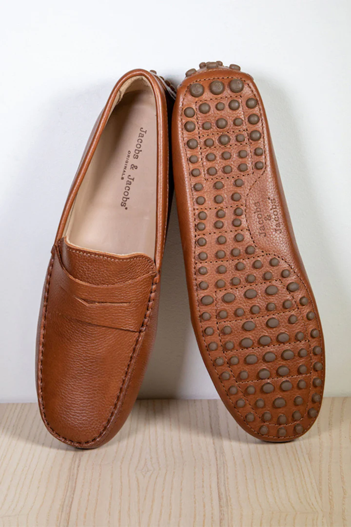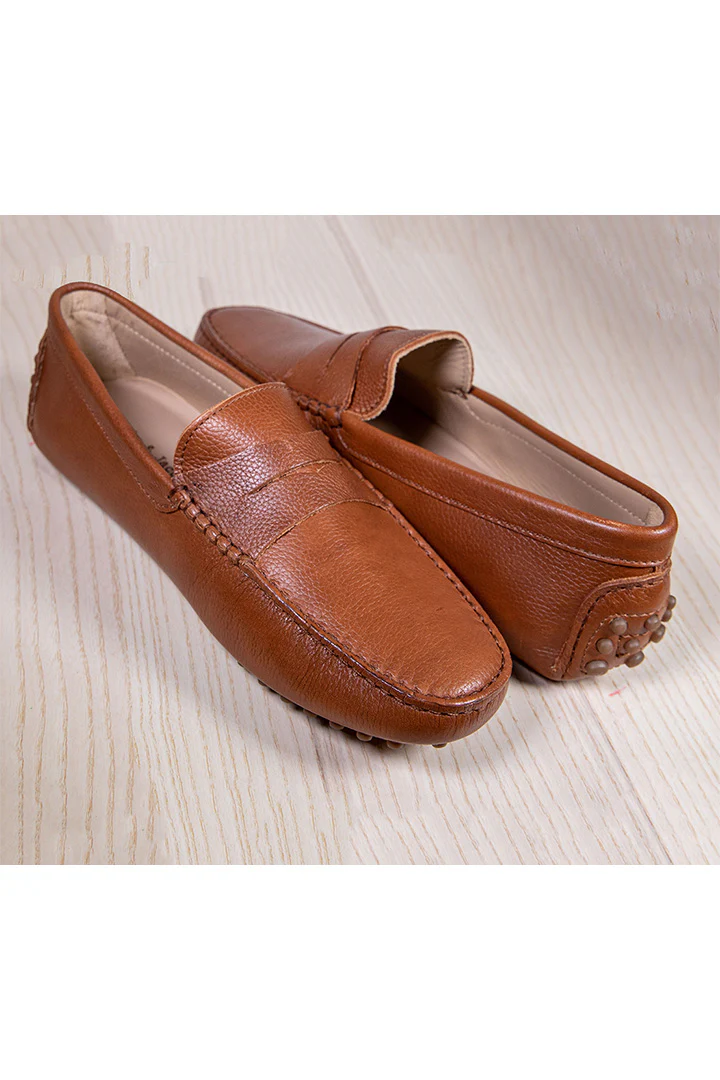 CALVI – Mocassins Bride Cuir – Homme – Cognac grainé