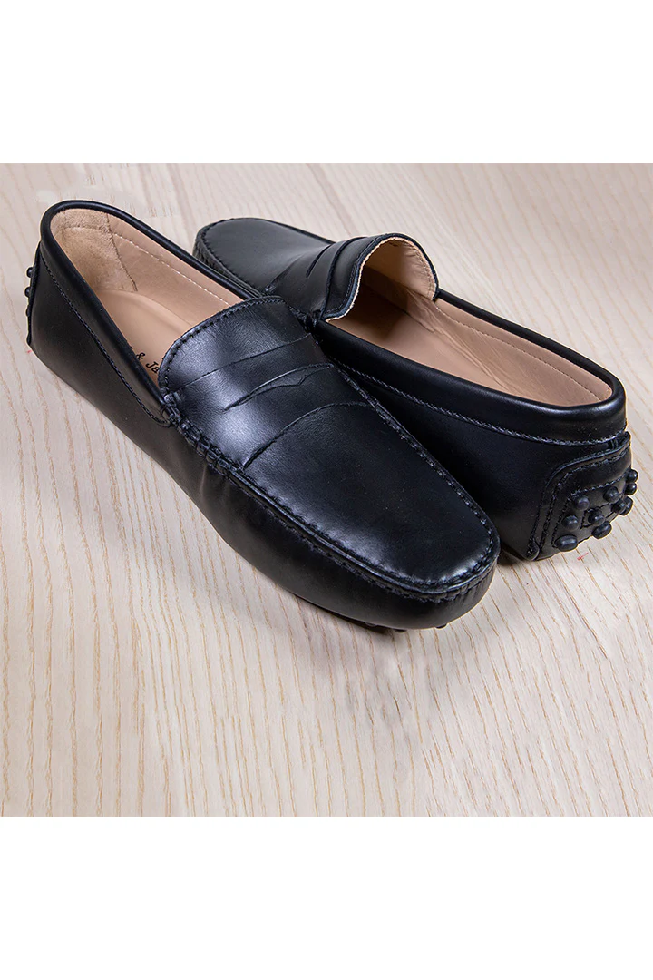 CALVI – Mocassins Bride Cuir – Homme – Noir