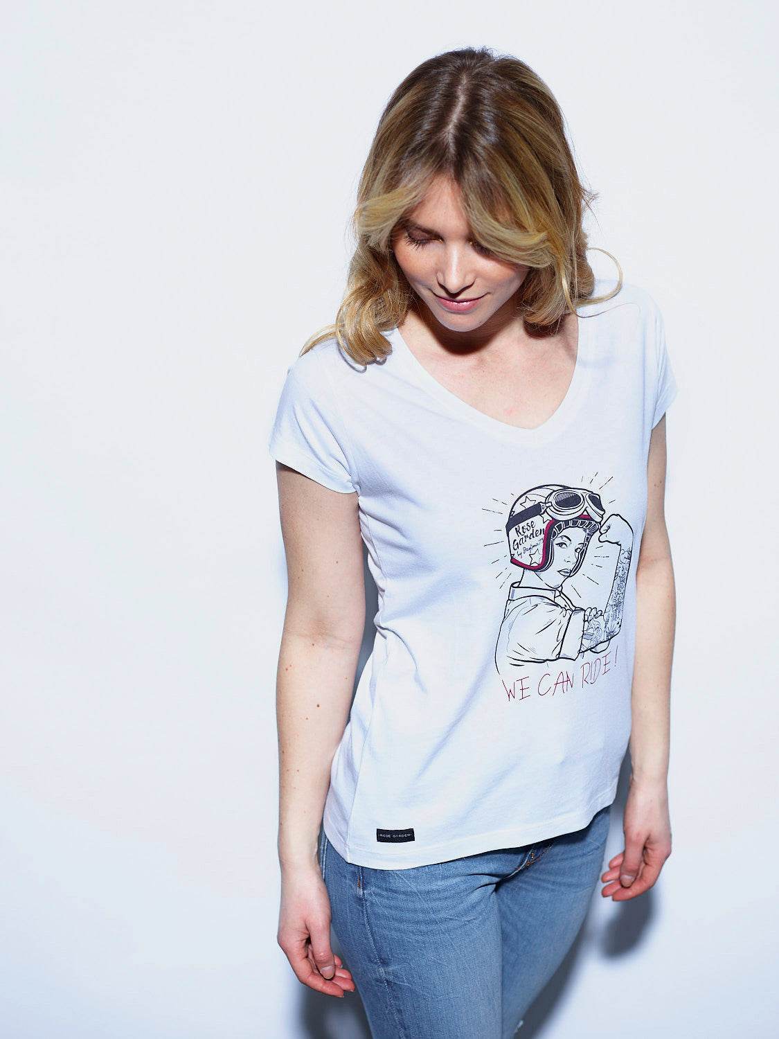 Un T-shirt blanc imprimé à l’effigie du Girl Power. Un imprimé retro-contemporain avec des tonalités de noir et bordeaux, il s’associe parfaitement sur une tenue basic.