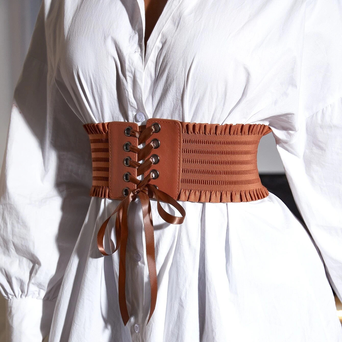 Cette ceinture bustier camel va sublimer votre look avec une touche de féminité. Elle propose un laçage à rubans à l’avant pour un ajustement adapté à votre morphologie et une fermeture à pression à l’arrière facilitant son port. En outre, son design classique est agrémenté d’un fini en cuir synthétique qui apporte une distinction à votre style. Associez-la à une chemise pour afficher une silhouette des plus chics.