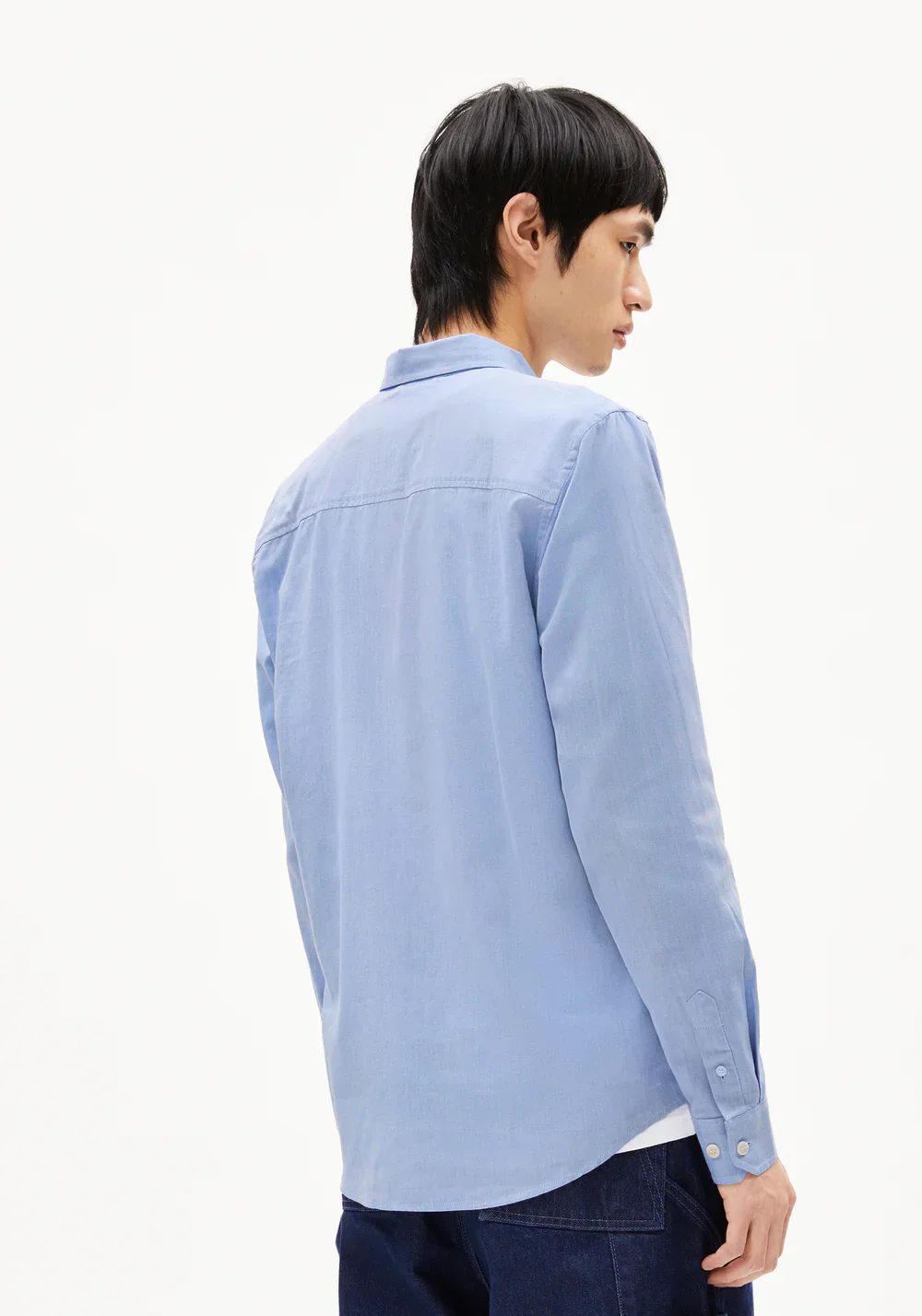 Cette chemise homme en coton bio à la forme classique est un indispensable du vestiaire. Son coloris bleu est à la fois original et facile à assortir !