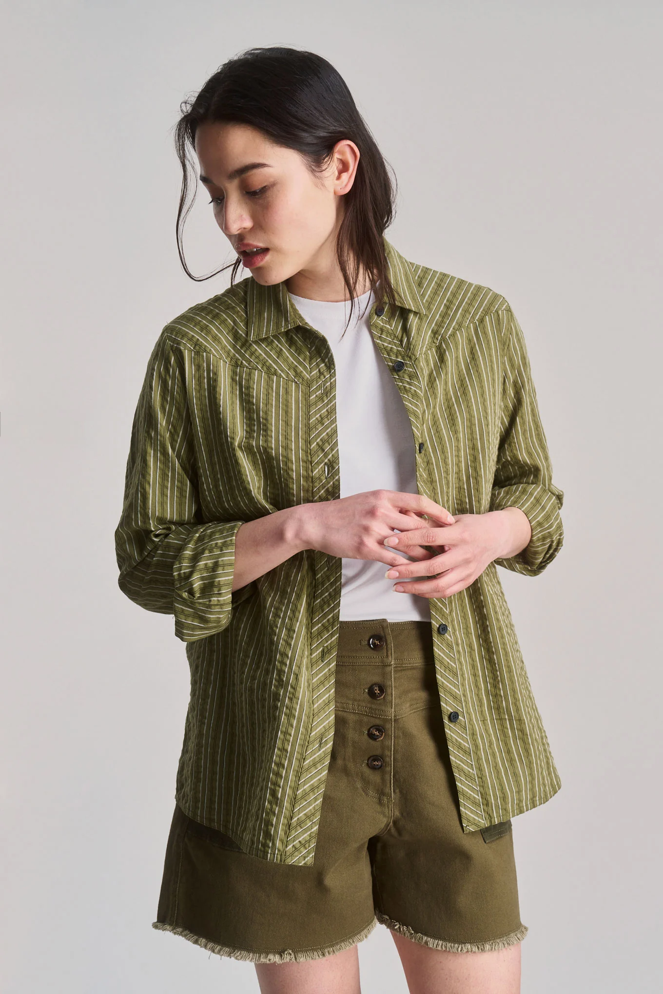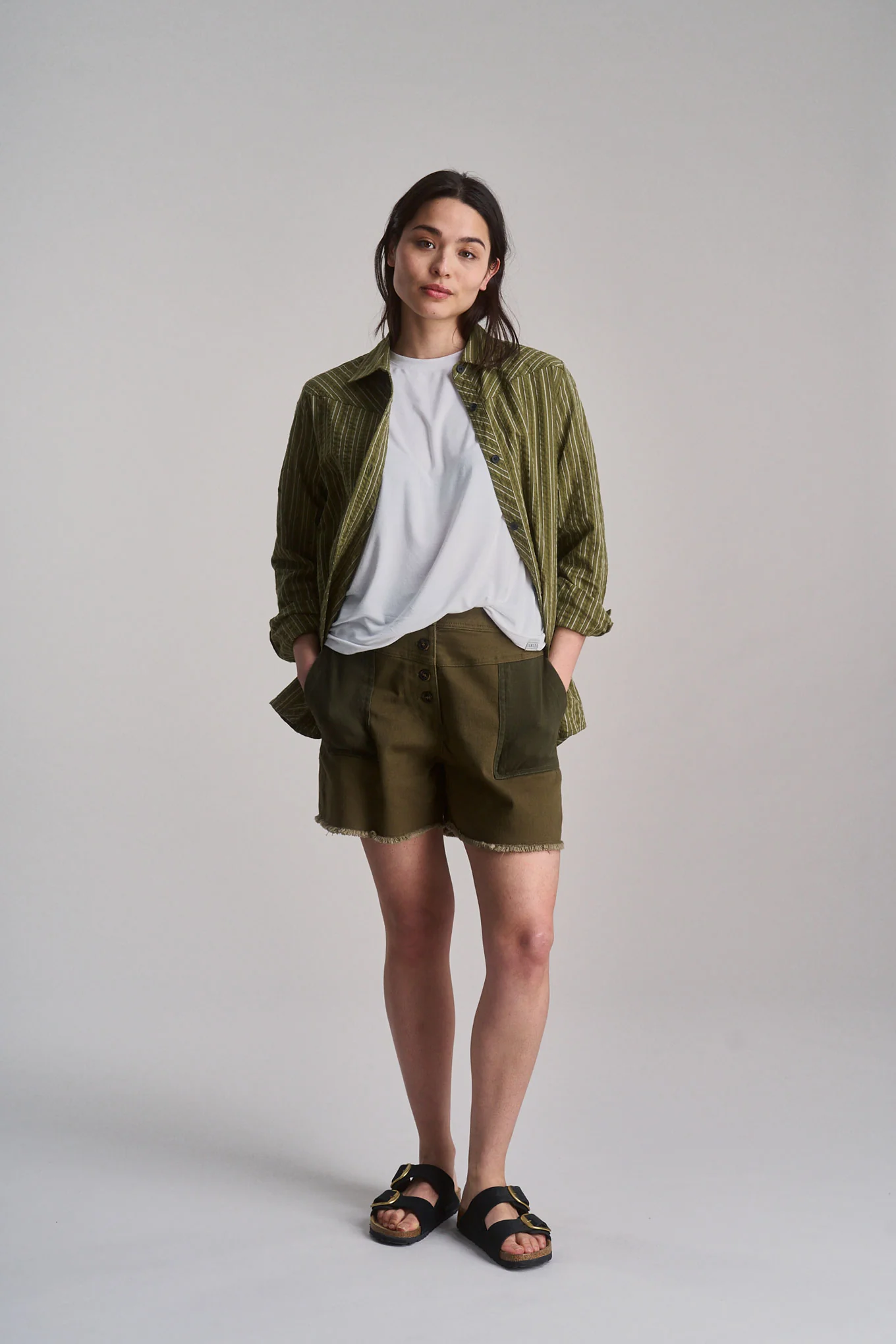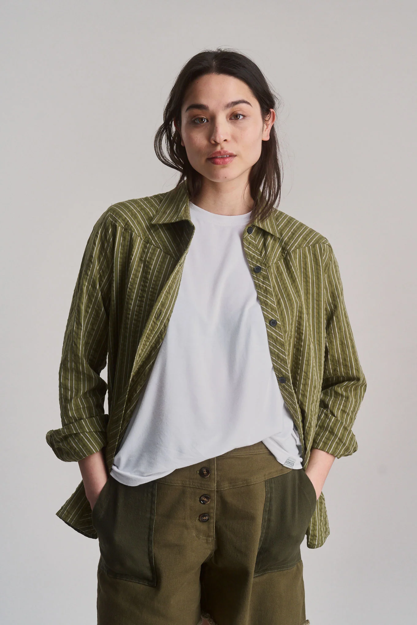 Chemise en coton bio rio green stripe · vert rayé