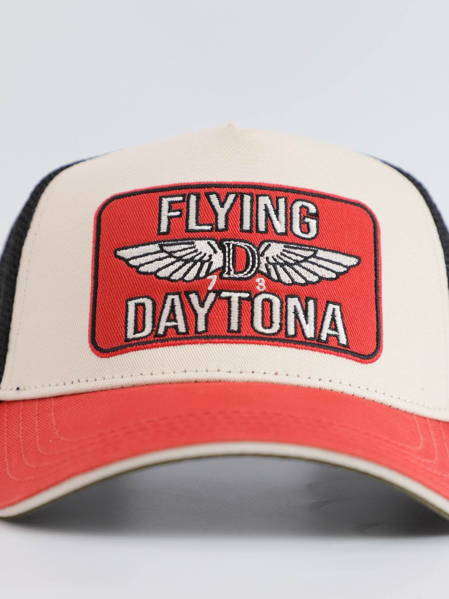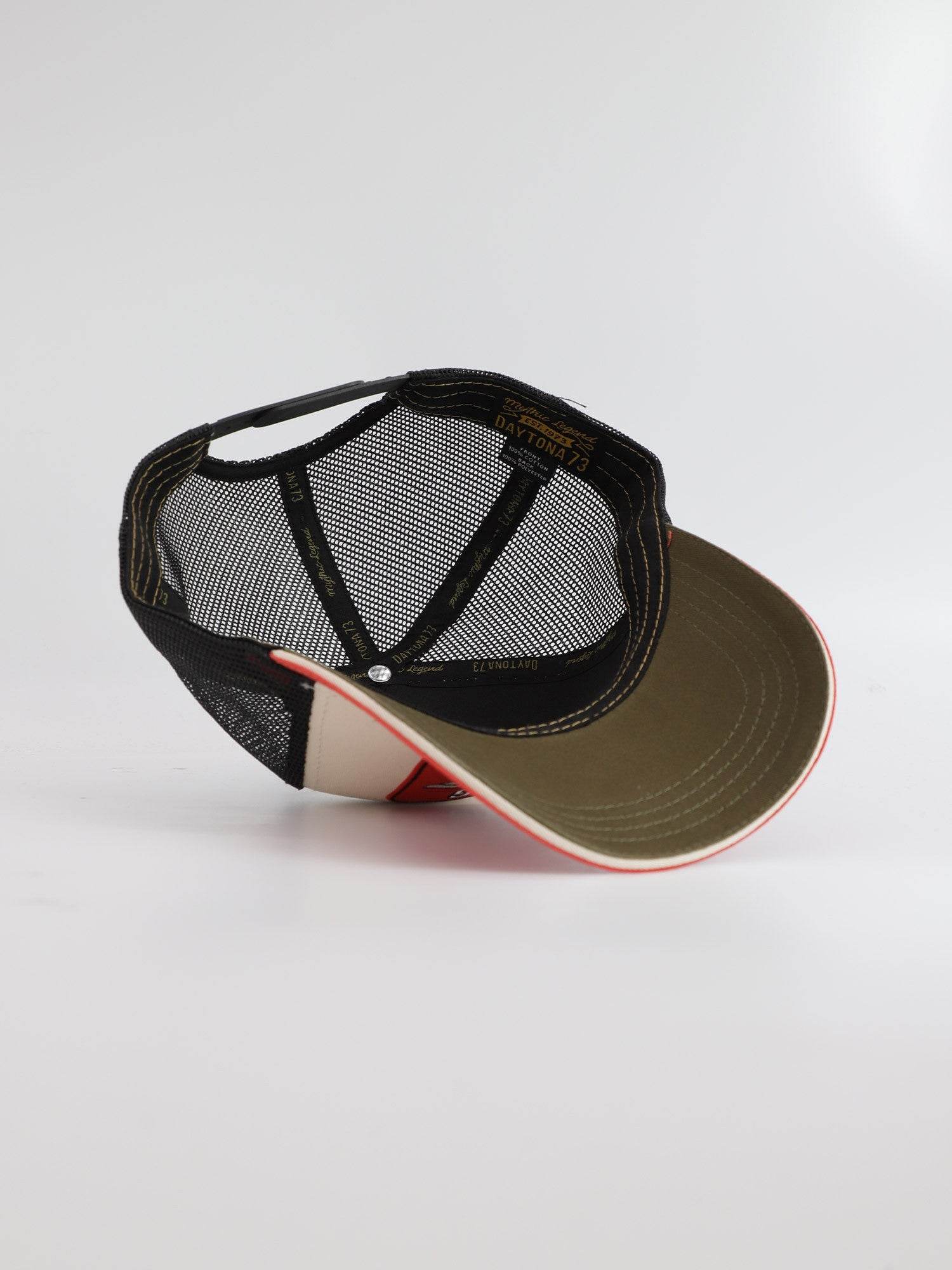 Casquette coupe trucker avec filet en polyester et son visuel en broderie.