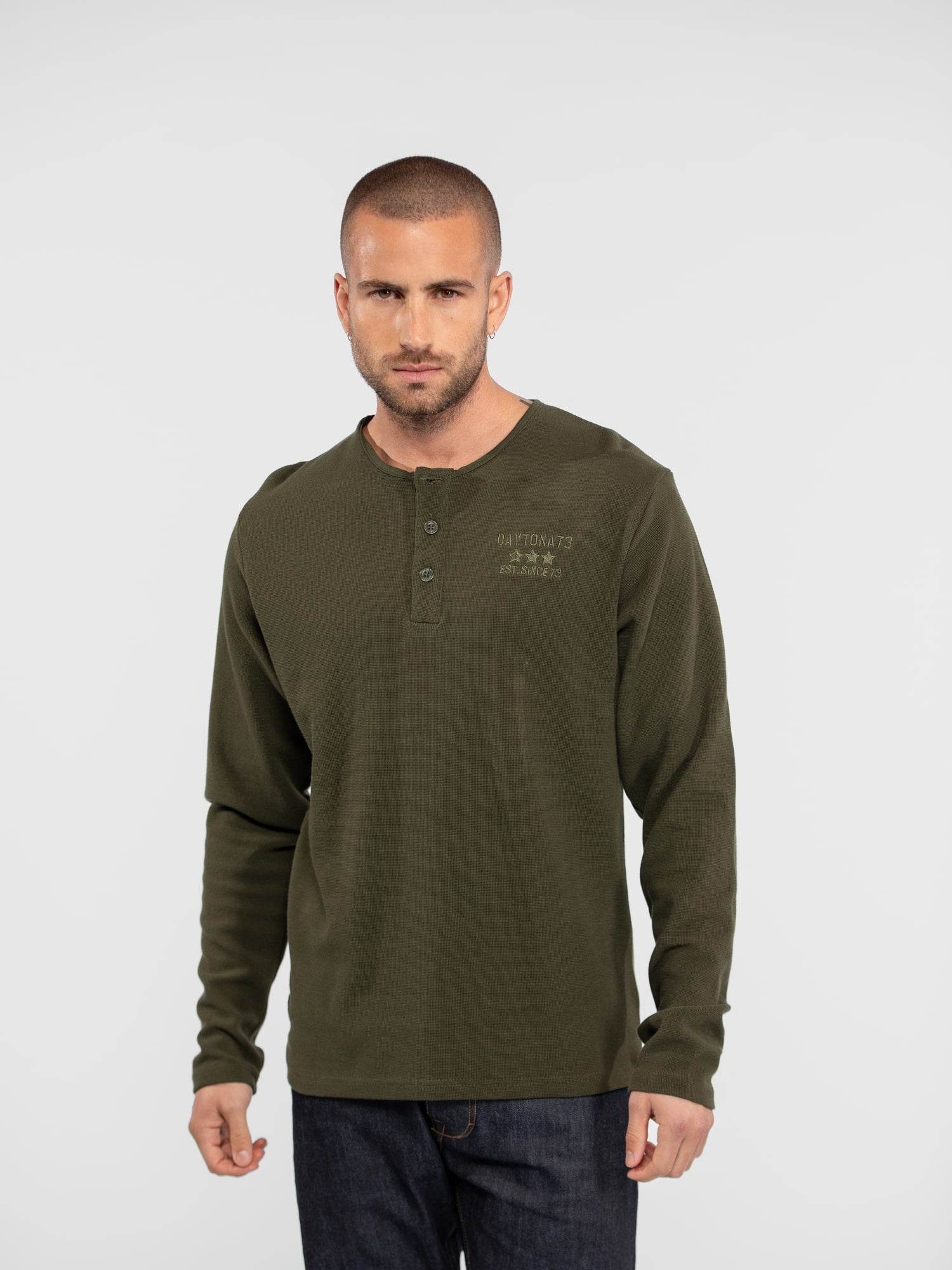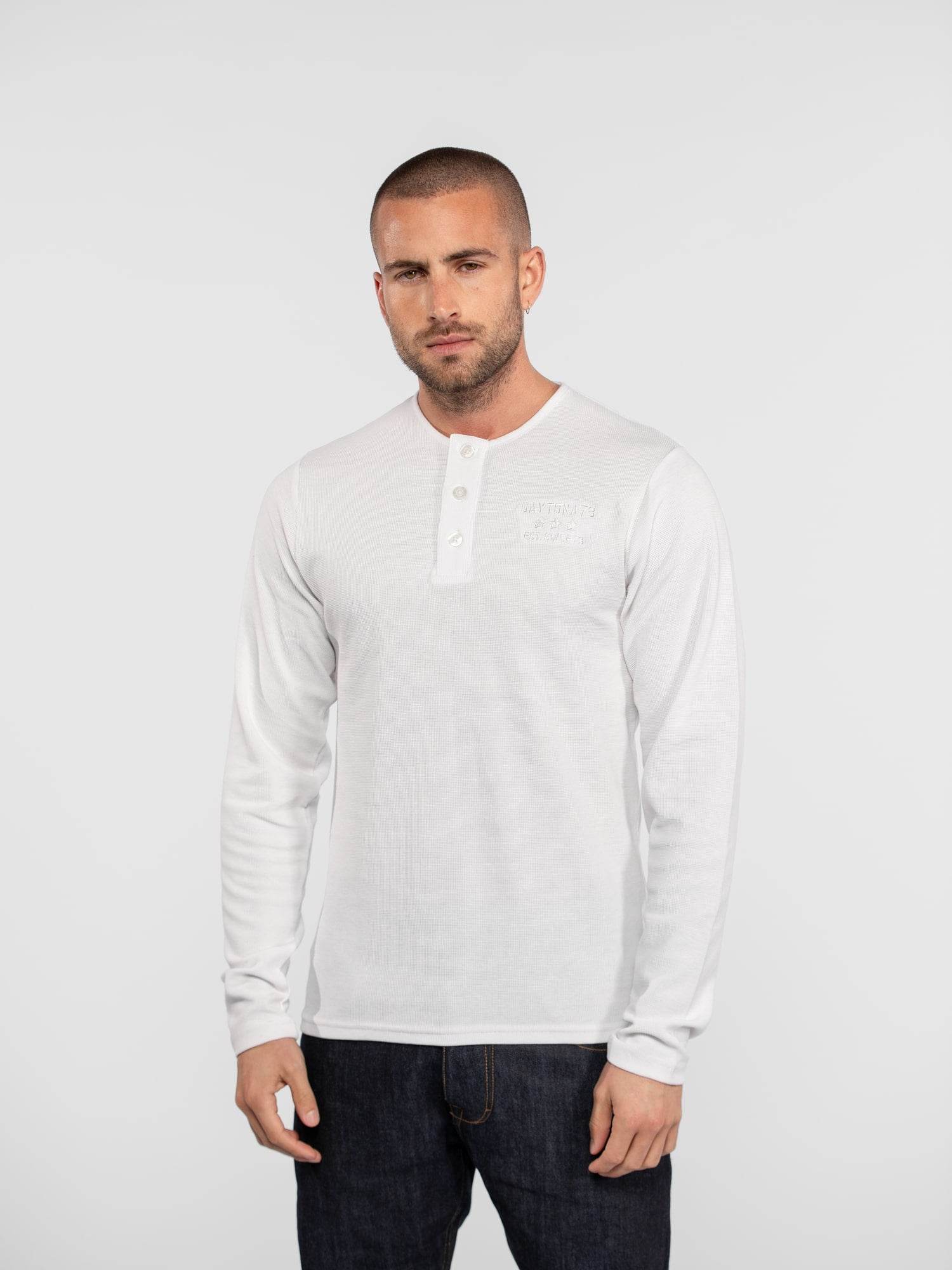 Découvrez notre t-shirt en coton à tissage effet gaufré, idéal pour un style à la fois élégant et décontracté. Ses manches longues et son col tunisien apportent une touche d’originalité tout en offrant un confort exceptionnel. Parfait pour les journées fraîches, ce t-shirt se marie aisément avec un jean ou un pantalon chino pour un look moderne et sophistiqué.