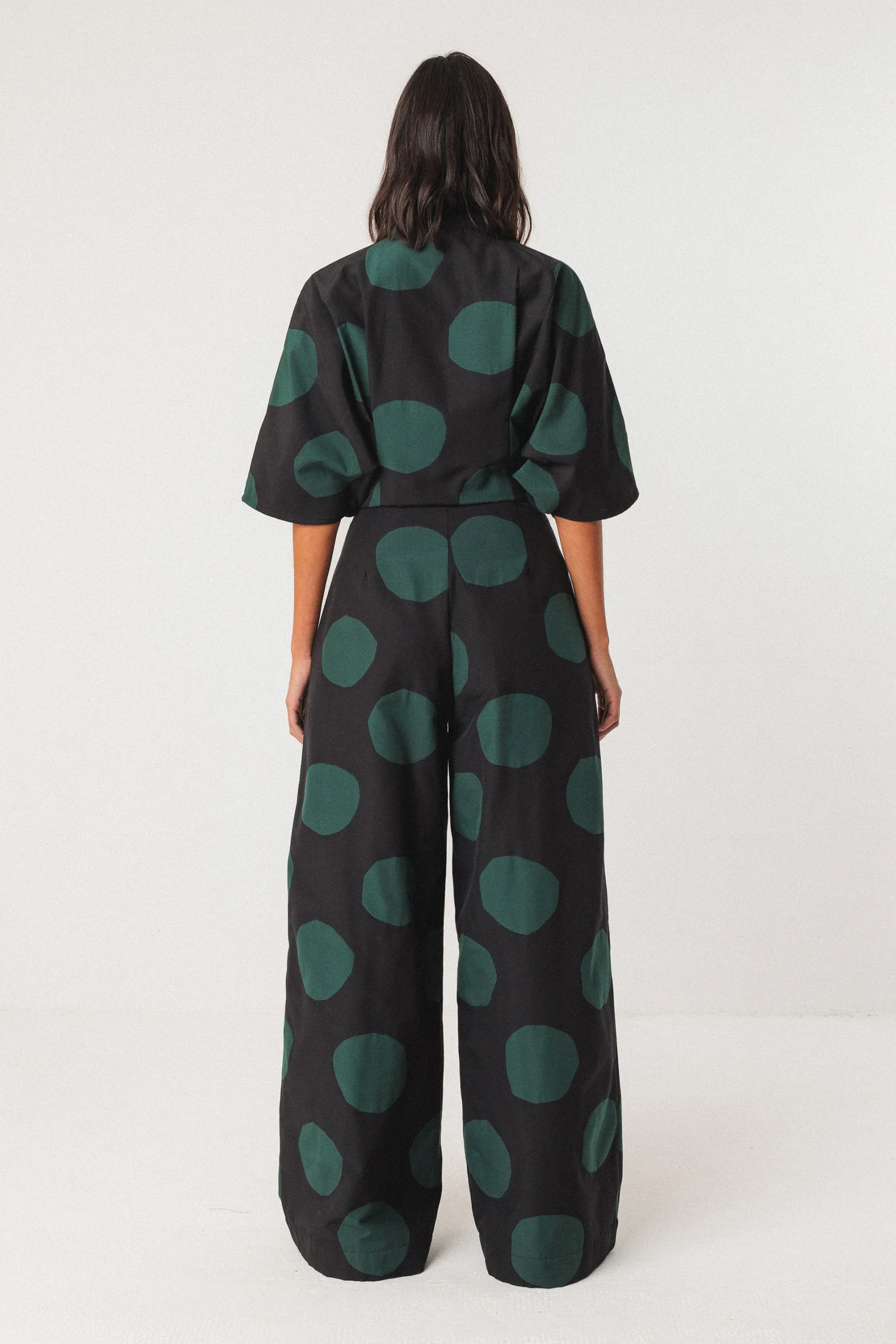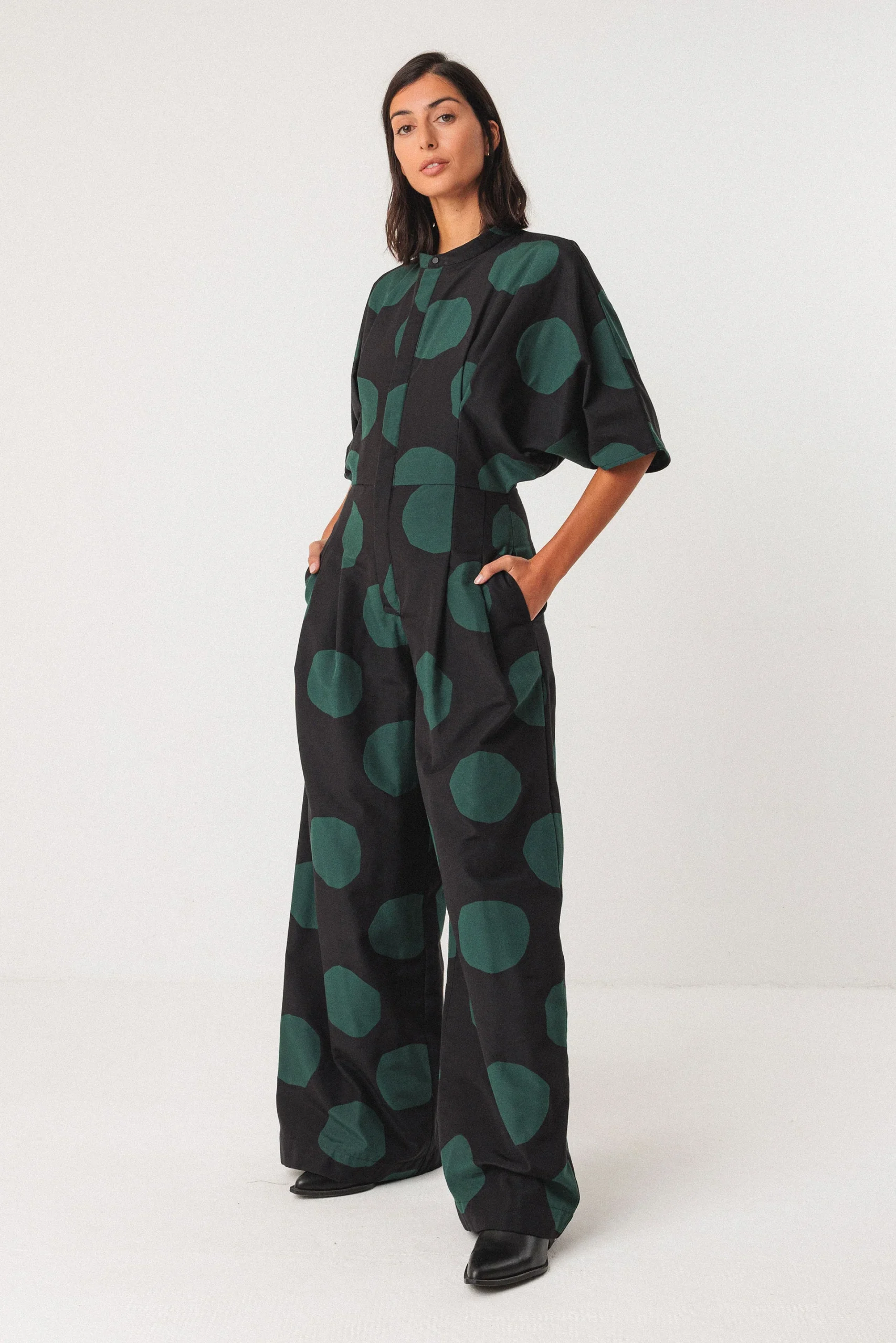 Combinaison en coton bio siloe lorea dots · noir et vert foncé