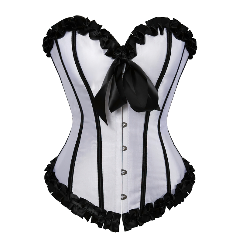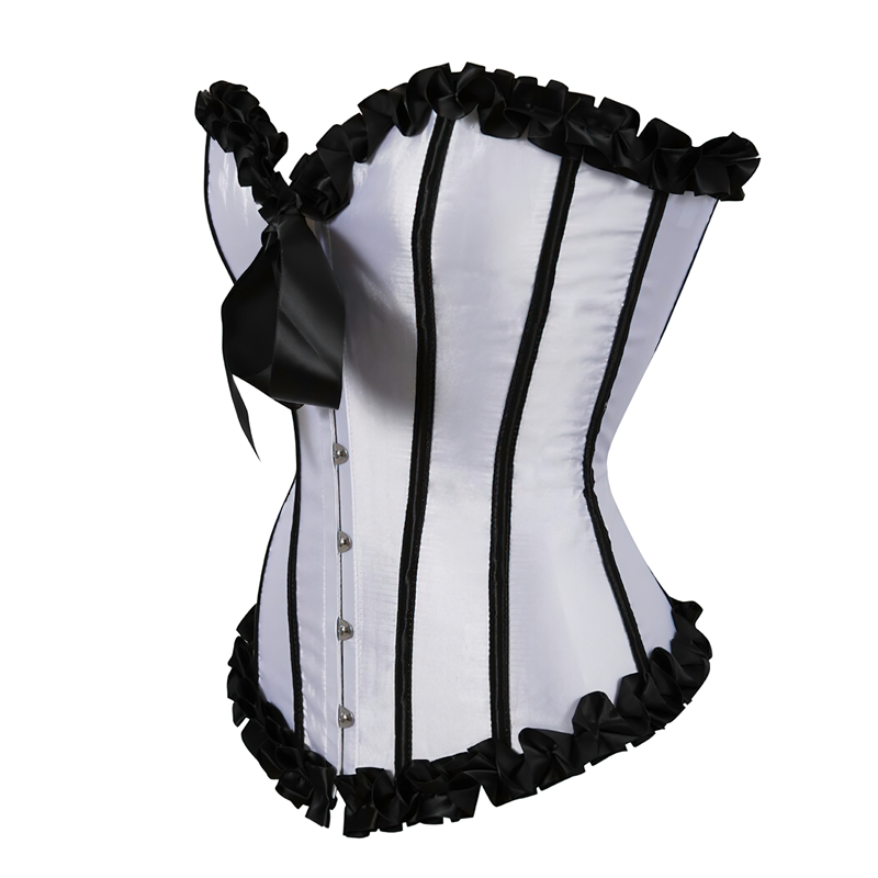 Sublimez votre allure et mettez en valeur vos courbes féminines avec ce corset noir et blanc. Orné d’un nœud à l’avant et de rayures verticales, il est aussi équipé d’une fermeture en métal et d’un laçage à l’arrière pour ajuster le serrage selon vos préférences.