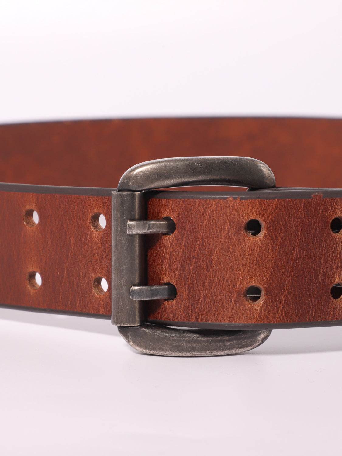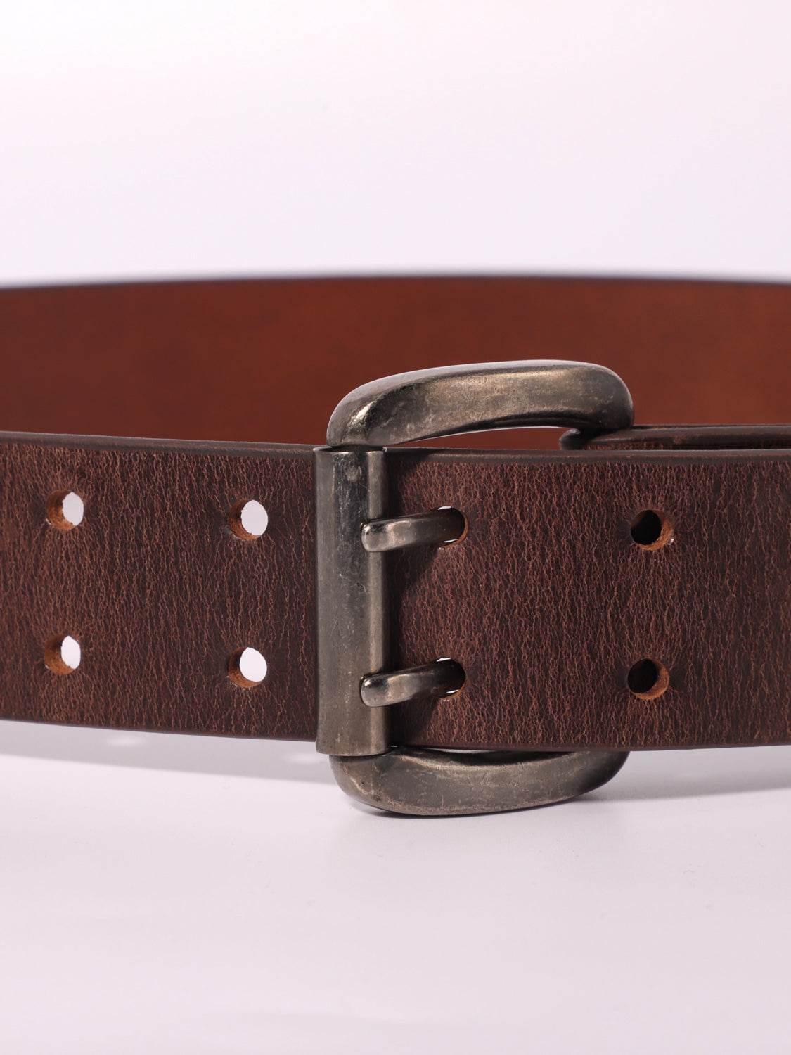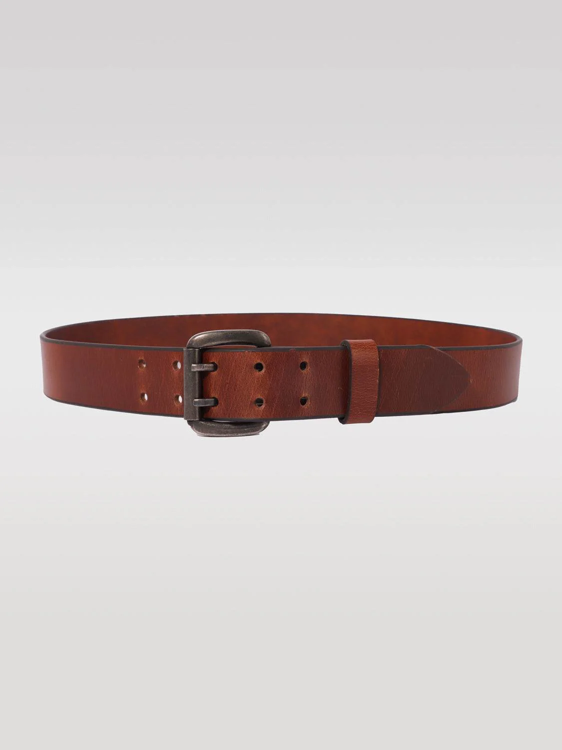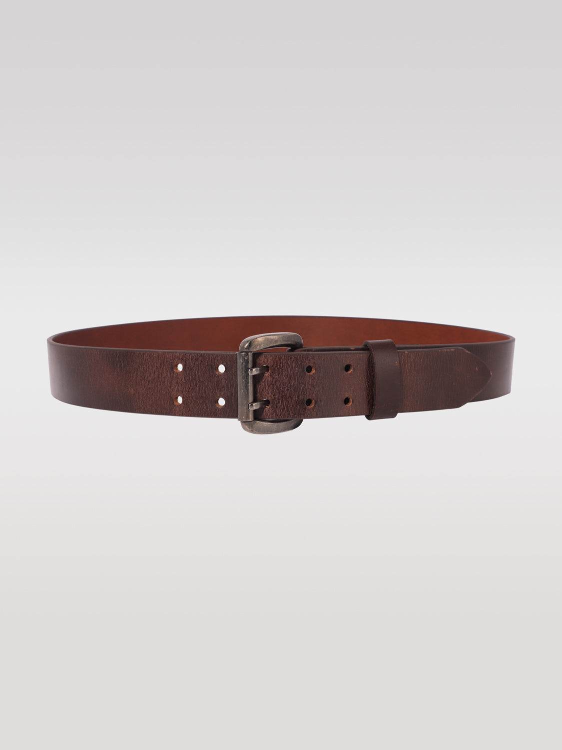 Affirmez votre style avec cette ceinture en cuir de buffle au look vintage et au caractère bien trempé. Son cuir épais à la finition patinée et sa boucle à double ardillon lui donnent un charme authentique, idéal pour un look casual affirmé ou un esprit workwear.