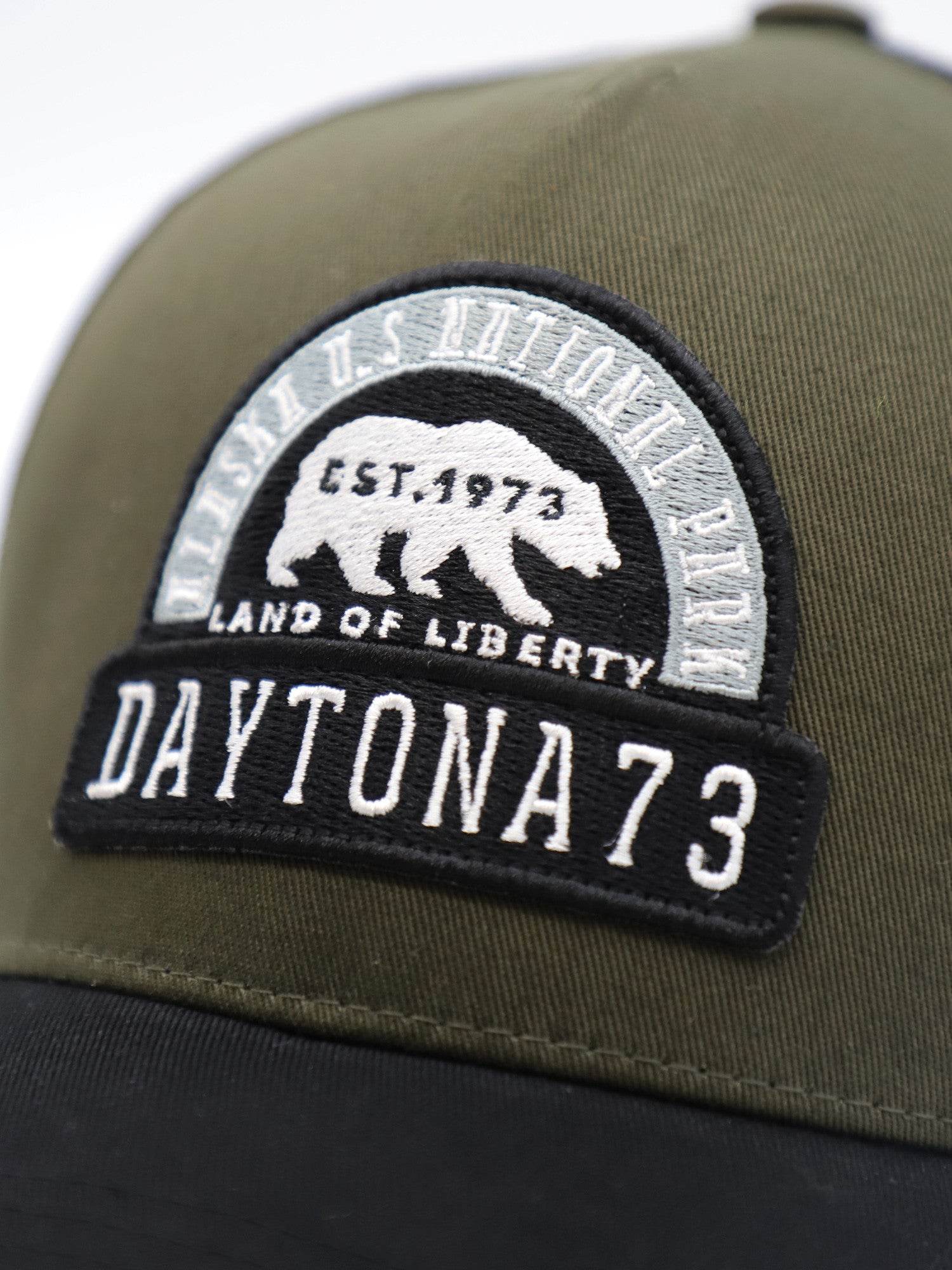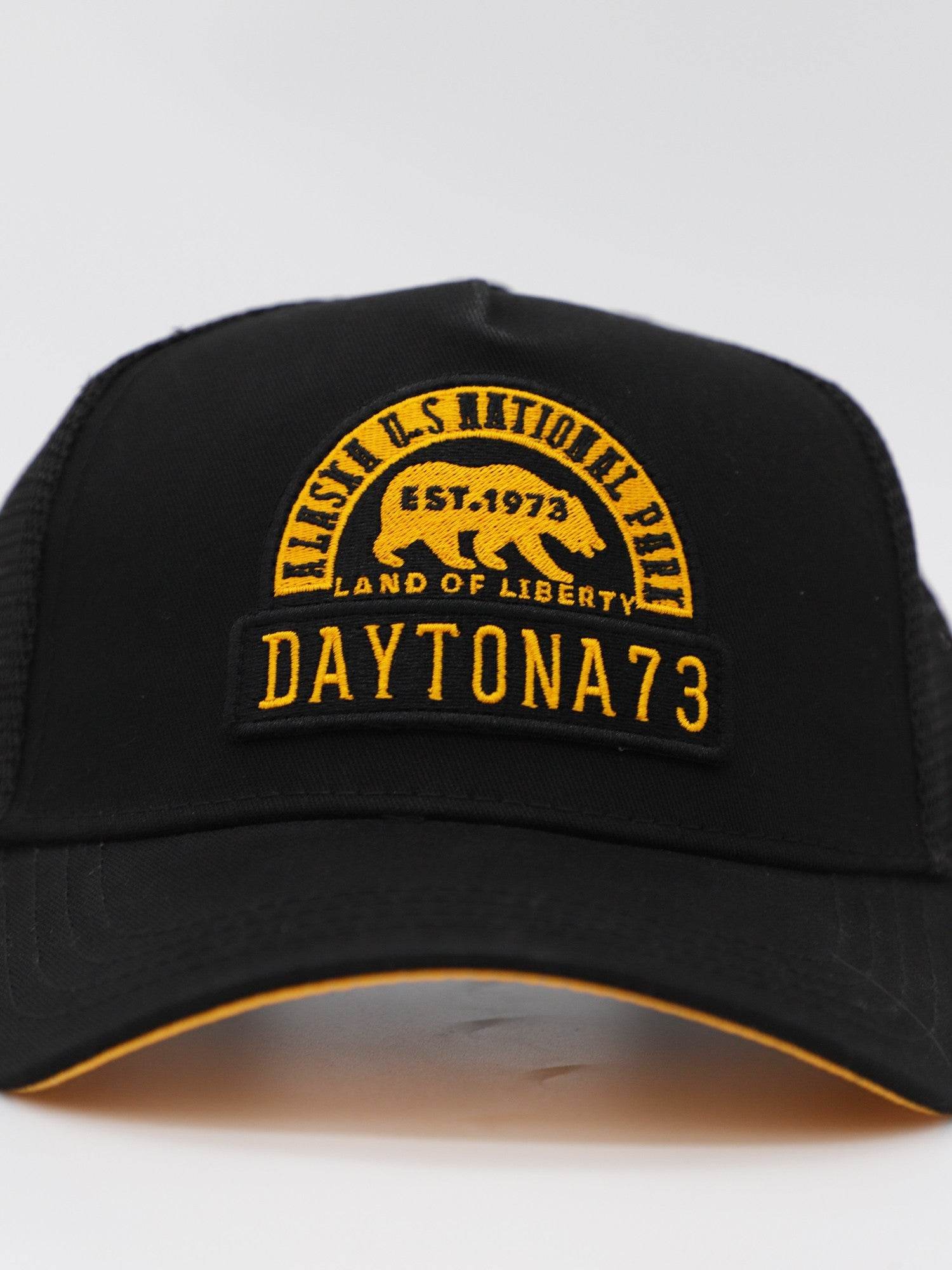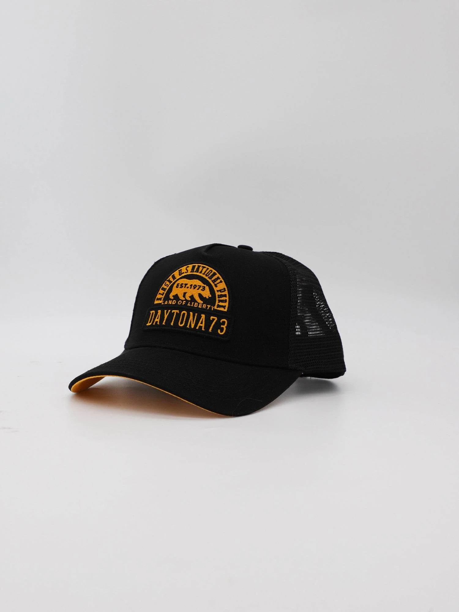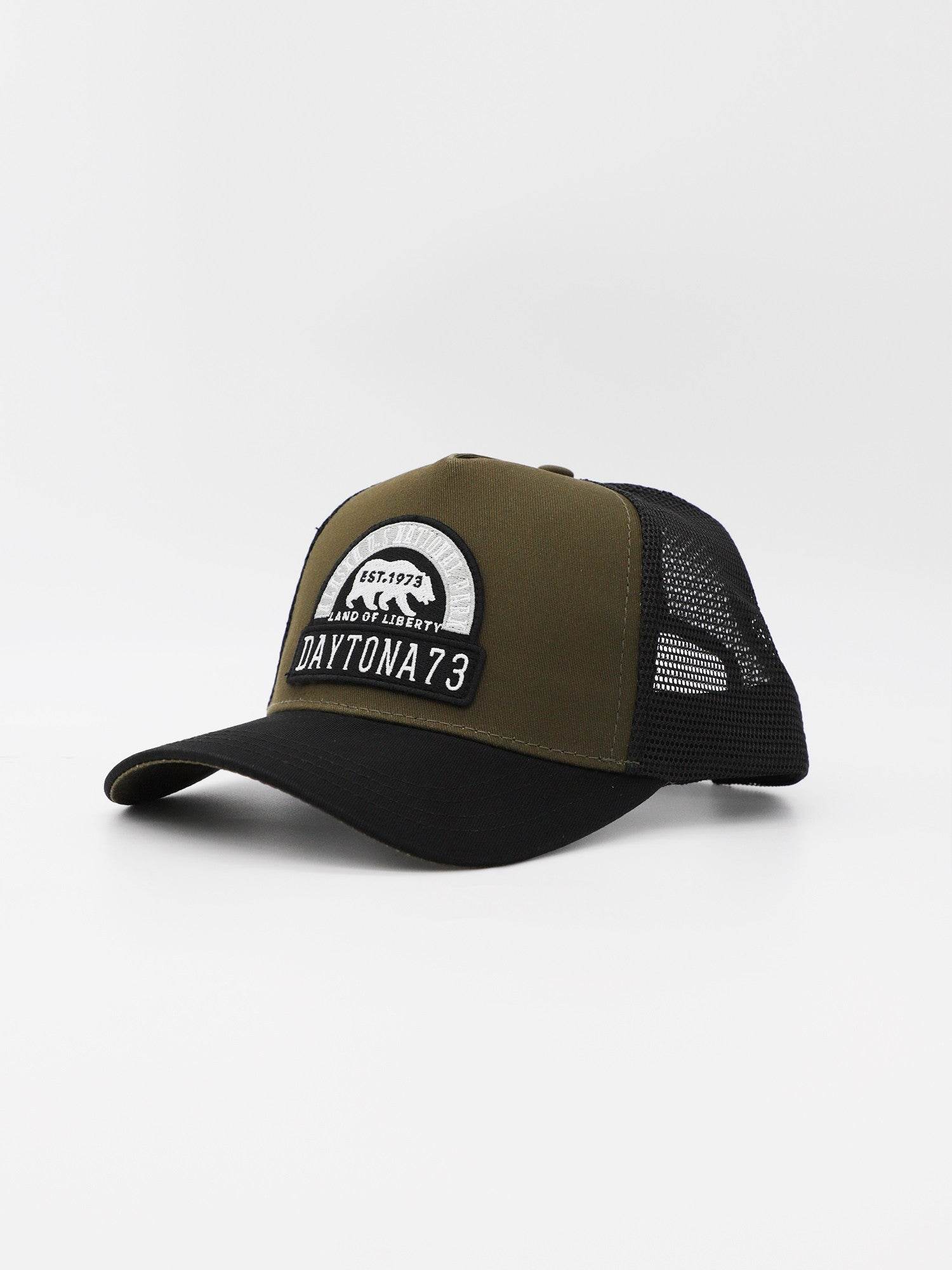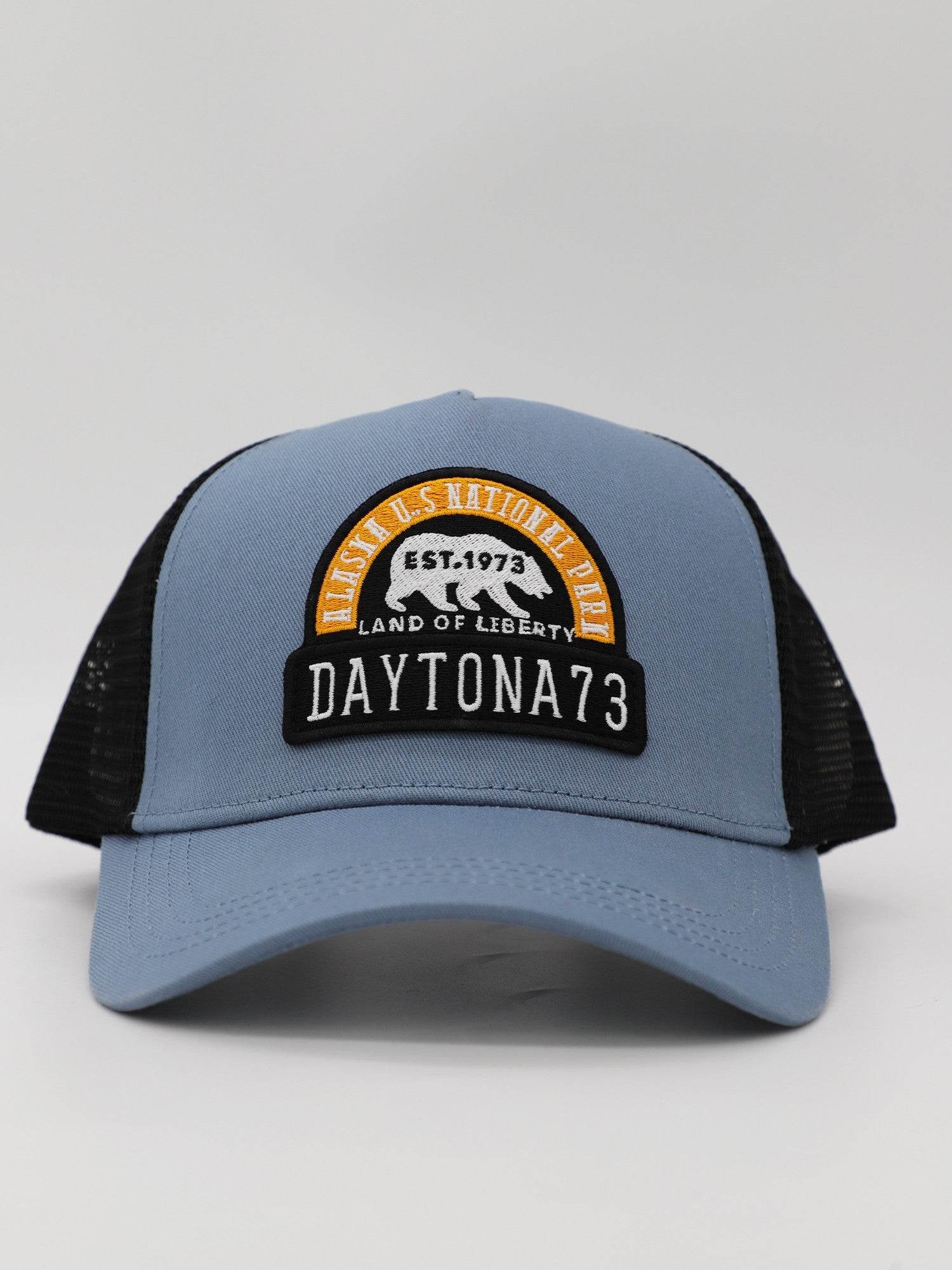 Casquette style trucker avec filet en polyester intégré et un patch « Land of liberty » brodé de la marque Daytona 73.
