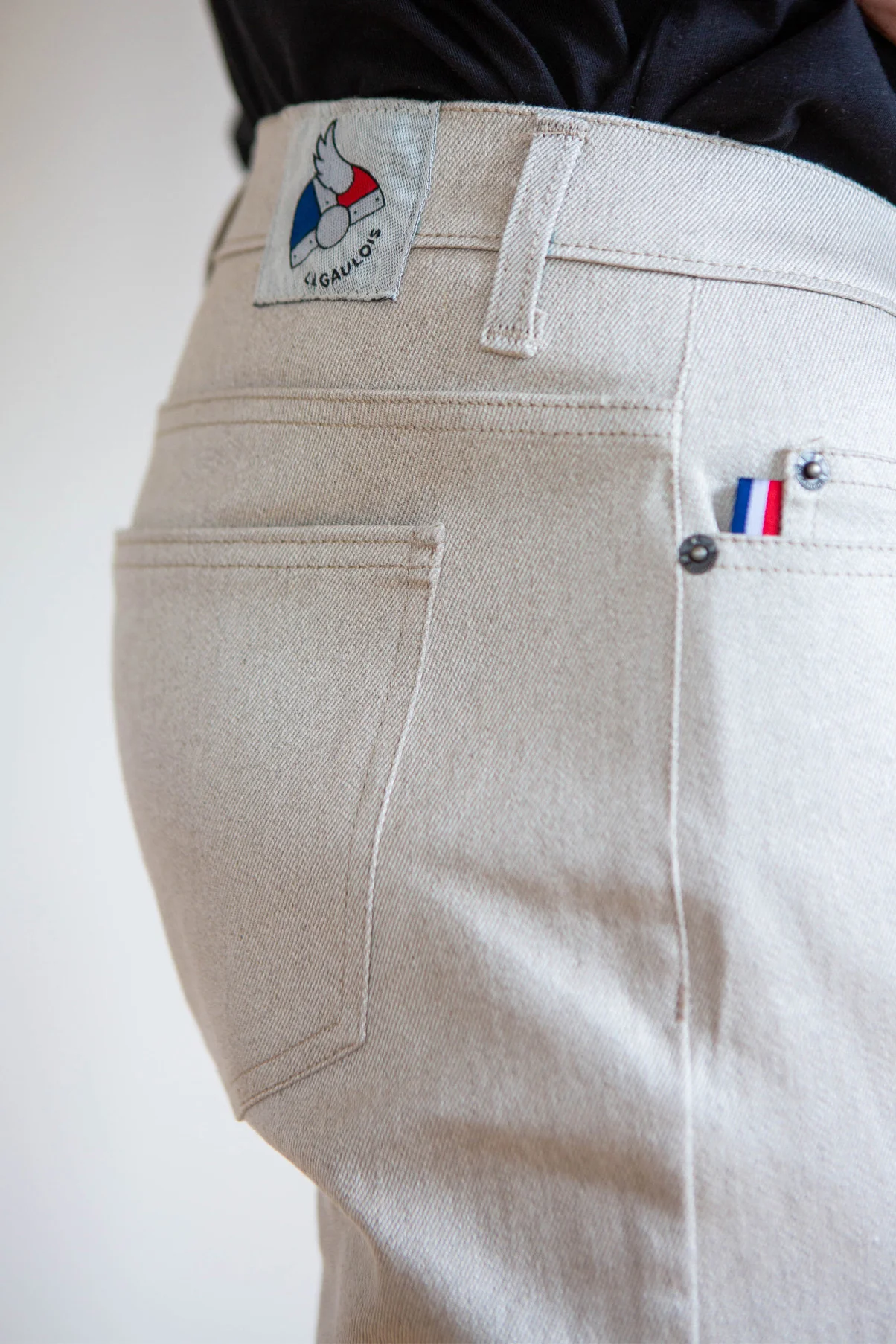 Fabriqué en France avec un tissu en lin et élasthanne recyclé, à la fois solide et extensible.