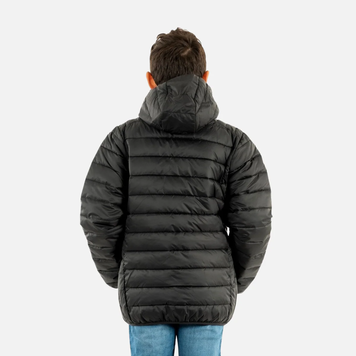 La doudoune rembourrée Ellesse Regalio pour enfants est dotée d’une fermeture à glissière complète avec protège-menton et d’un coupe-vent interne pour une couverture maximale par temps froid et d’une capuche attachée lorsqu’il pleut.