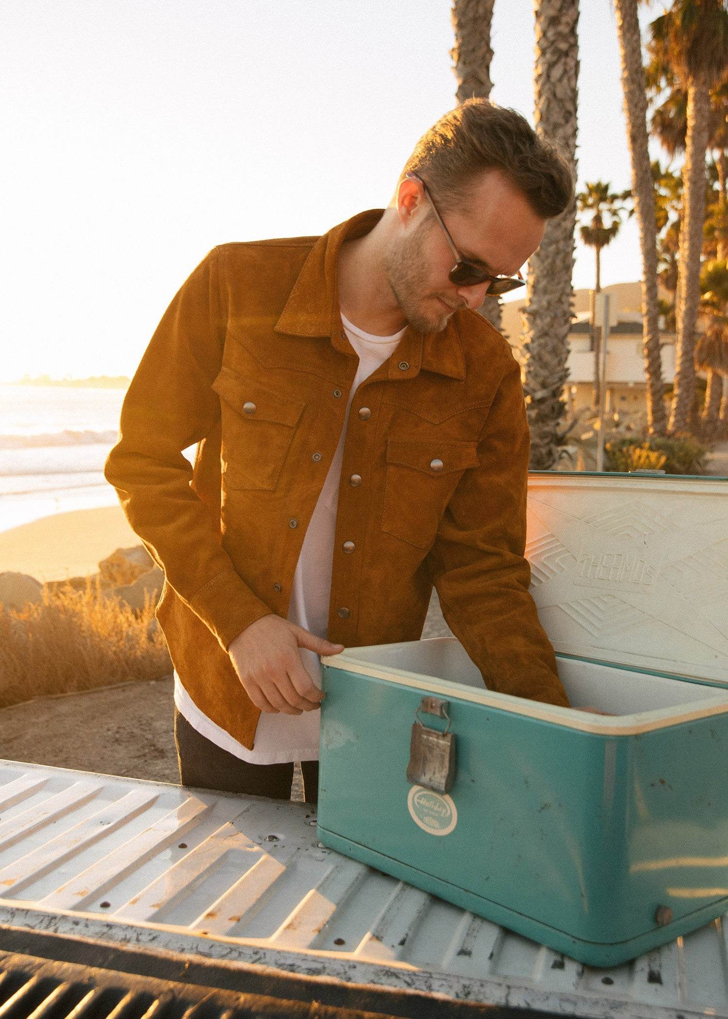 Cette surchemise en cuir de buffle style western allie solidité et style. Elle présente des détails comme des poches plaquées, un col à pointes et des coutures visibles, offrant un look à la fois classique et audacieux.