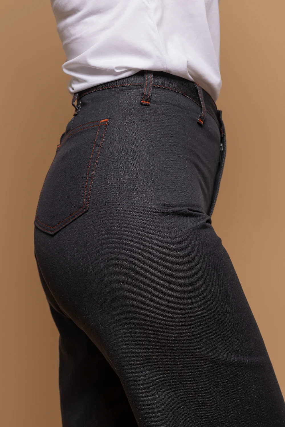 Le FLAVIA est un jeans femme, confortable et thermorégulateur. Fabriqué en France avec un tissu 62% coton bio 38% lin, non extensible.