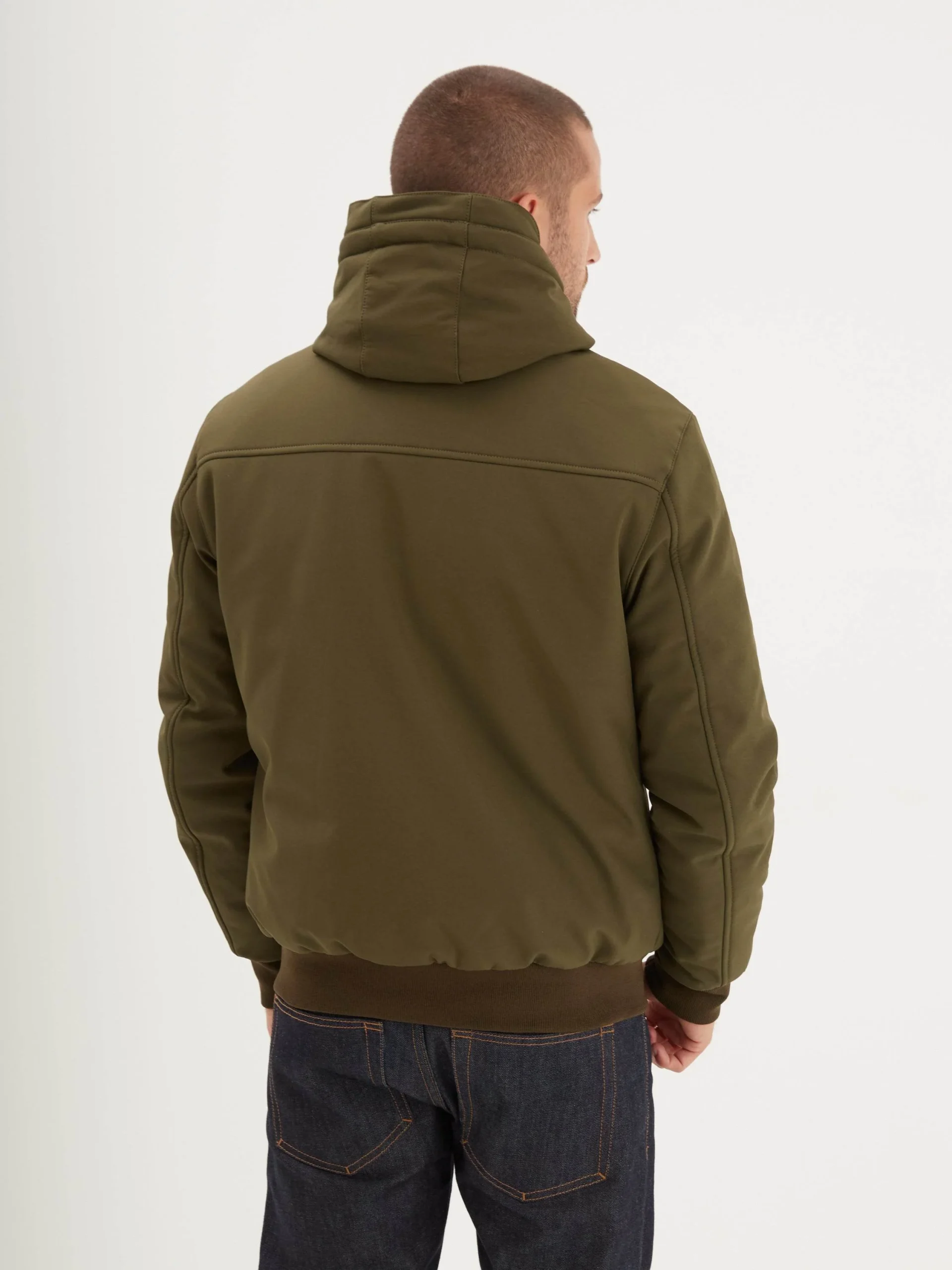 Nous avons utilisé un tissu Softshell. Un textile à la fois souple et respirant, avec un revêtement déperlant qui lui permet de résister aux pluies fines.